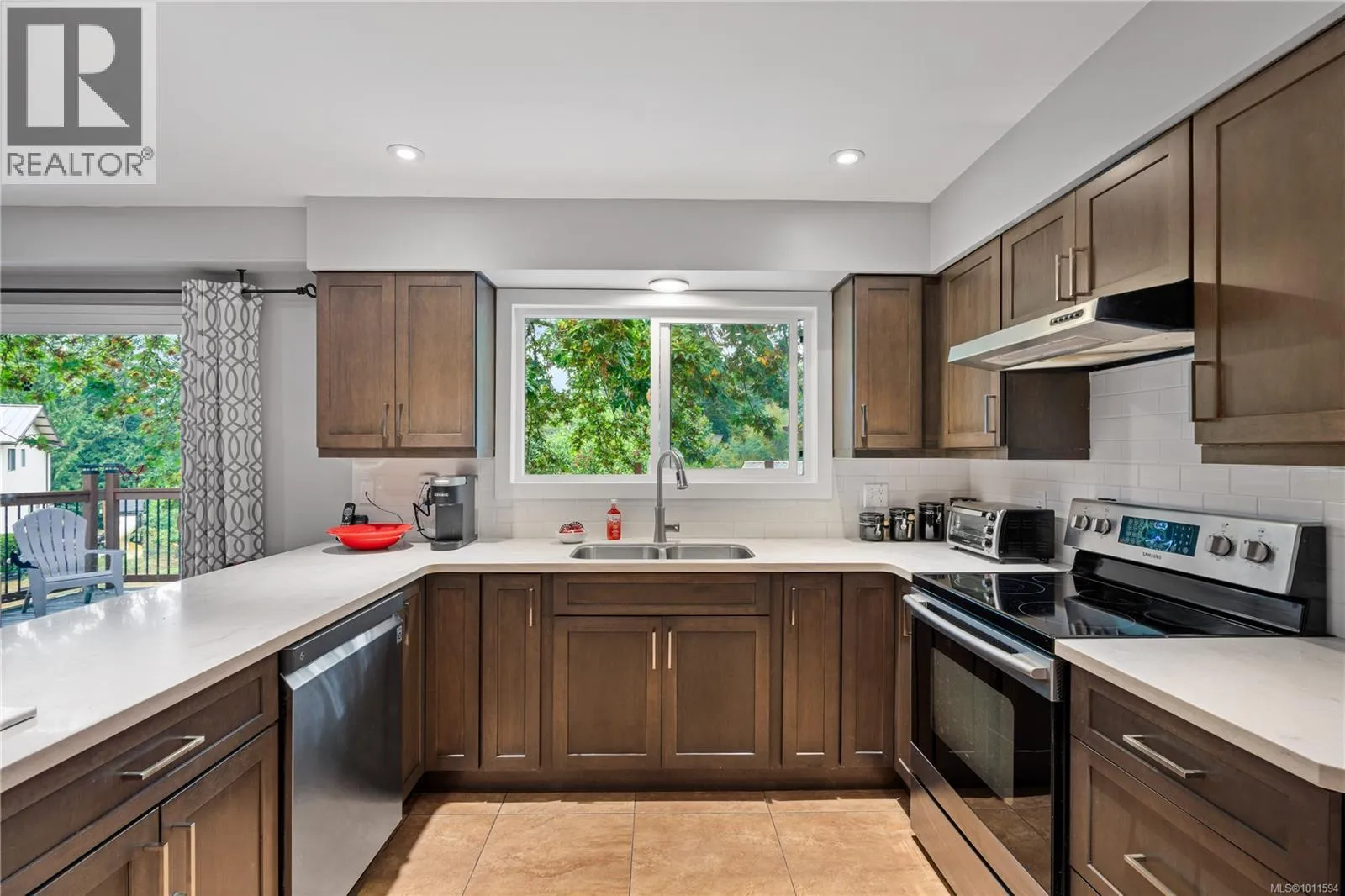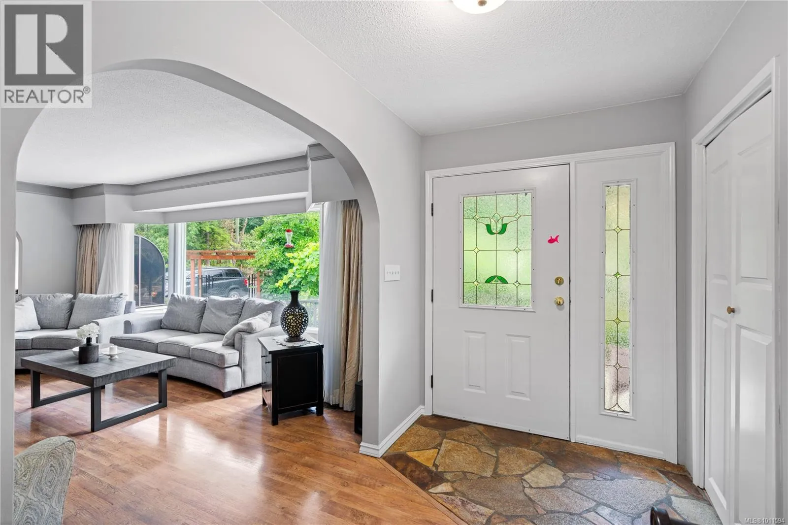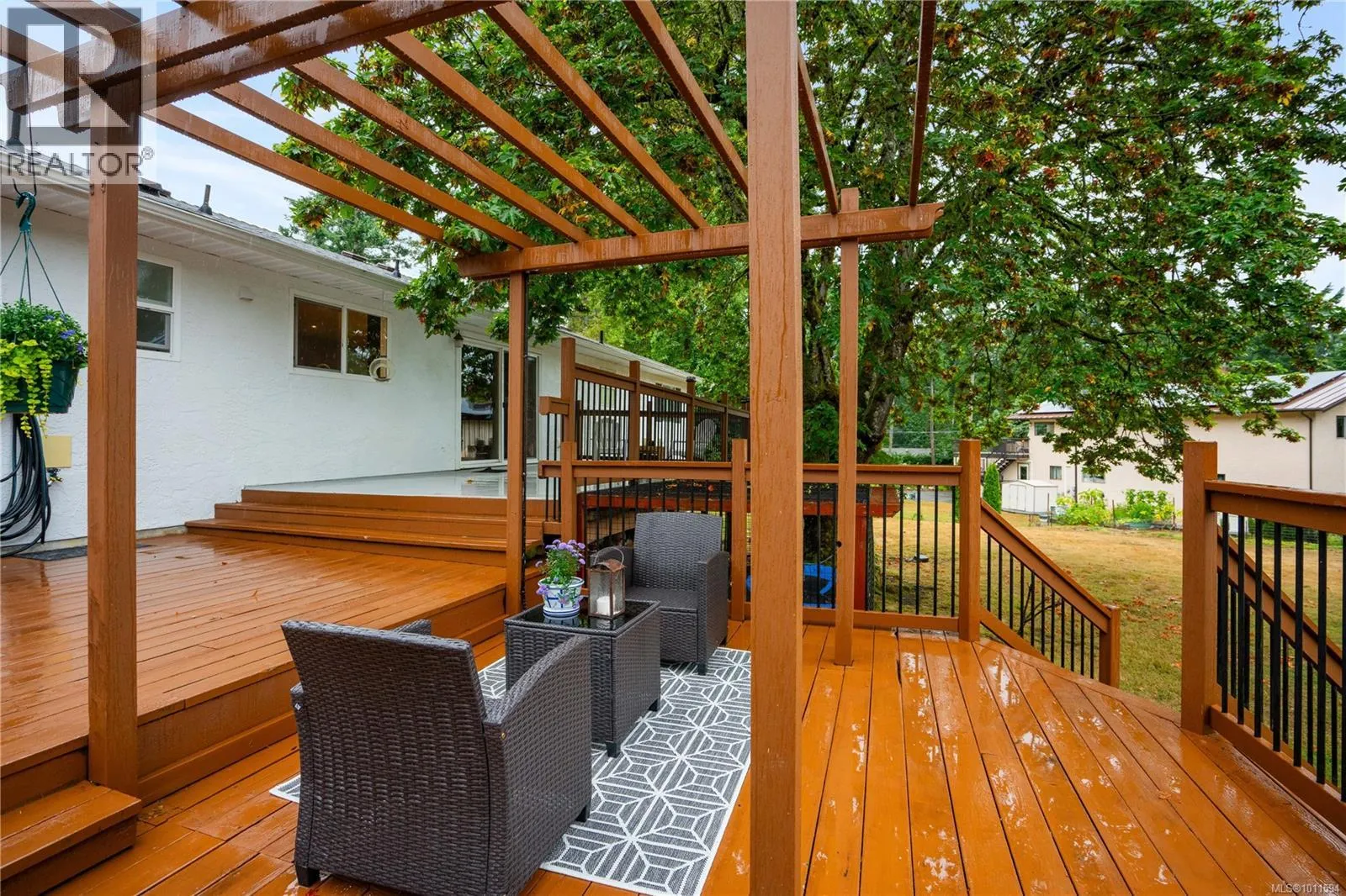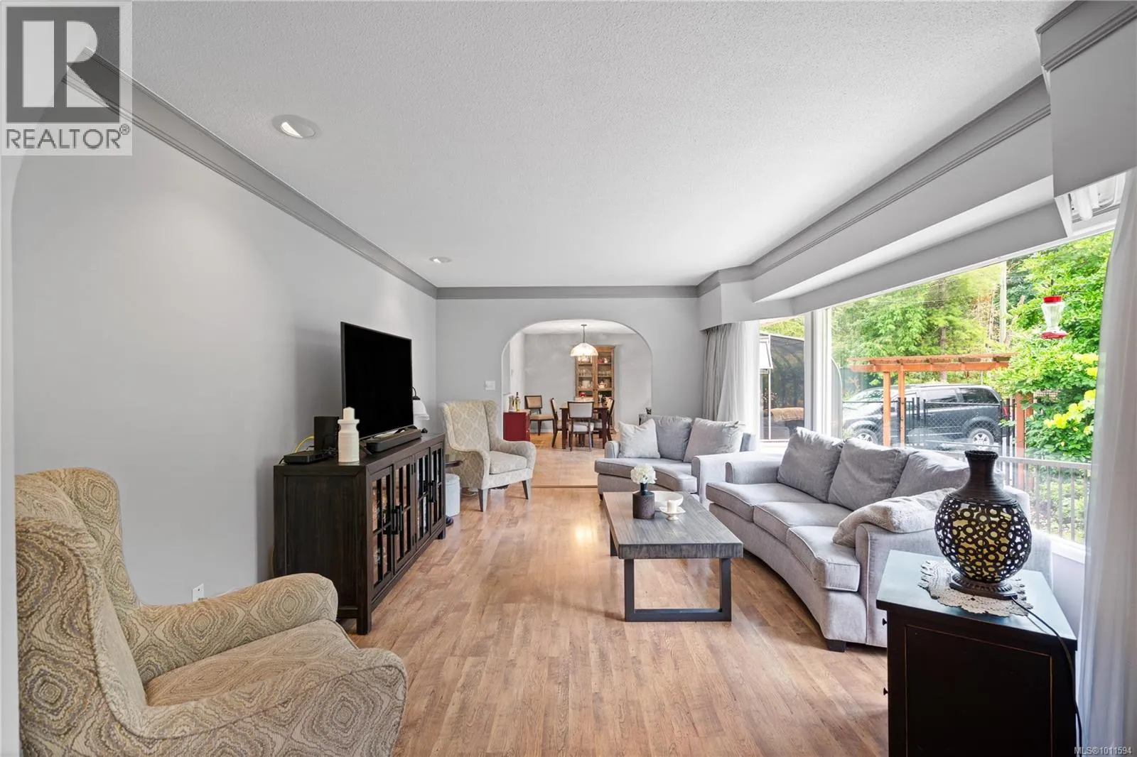 Welcome to this flexible 5-bedroom, 4-bath home offering exceptional functionality and comfort on just under an acre of beautifully landscaped, fully fenced grounds! The main level features a spacious, thoughtful layout with a welcoming entryway, generous living and dining areas, a bright sunroom, and three bedrooms, including a primary suite with an ensuite bath. Accessibility is a priority here, with a wheel-in shower, extra-wide doorways, and radiant in-floor heating throughout all tiled areas, including the kitchen and dining room. Step outside onto a large deck, perfect for entertaining or unwinding - with electrical wiring underneath, previously used for a hot tub. The lower level provides incredible versatility, boasting two additional bedrooms, a full bath, and a large living space with suite potential; ideal for extended family, guests, or additional income. Fresh carpeting and paint throughout give the home a clean, updated feel. Additional highlights include a single attached garage, a detached RV carport with a small workshop, two cozy fireplace inserts (on both levels), a heat pump for year-round comfort, and a 200-amp panel with sub-panels. Accessibility upgrades and a wheelchair ramp make this home especially suited for multigenerational living. Outside, enjoy mature fig and walnut trees, a charming gazebo, and private, well-maintained grounds. Located just a short walk from Coles Bay Regional Park and Ardmore Golf Course, with numerous nearby trails - this is truly a must-see property in an exceptional setting! (id:27476)