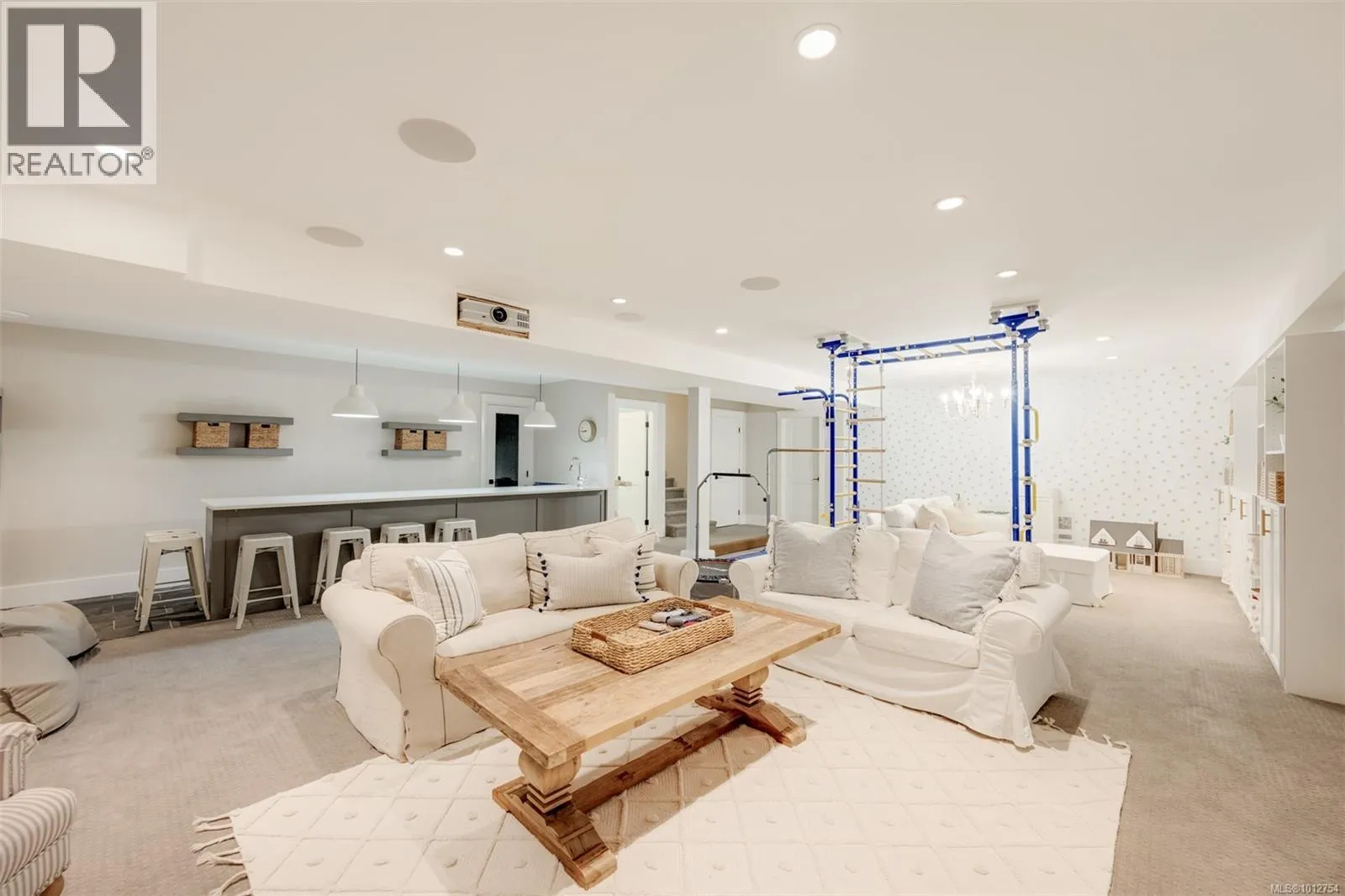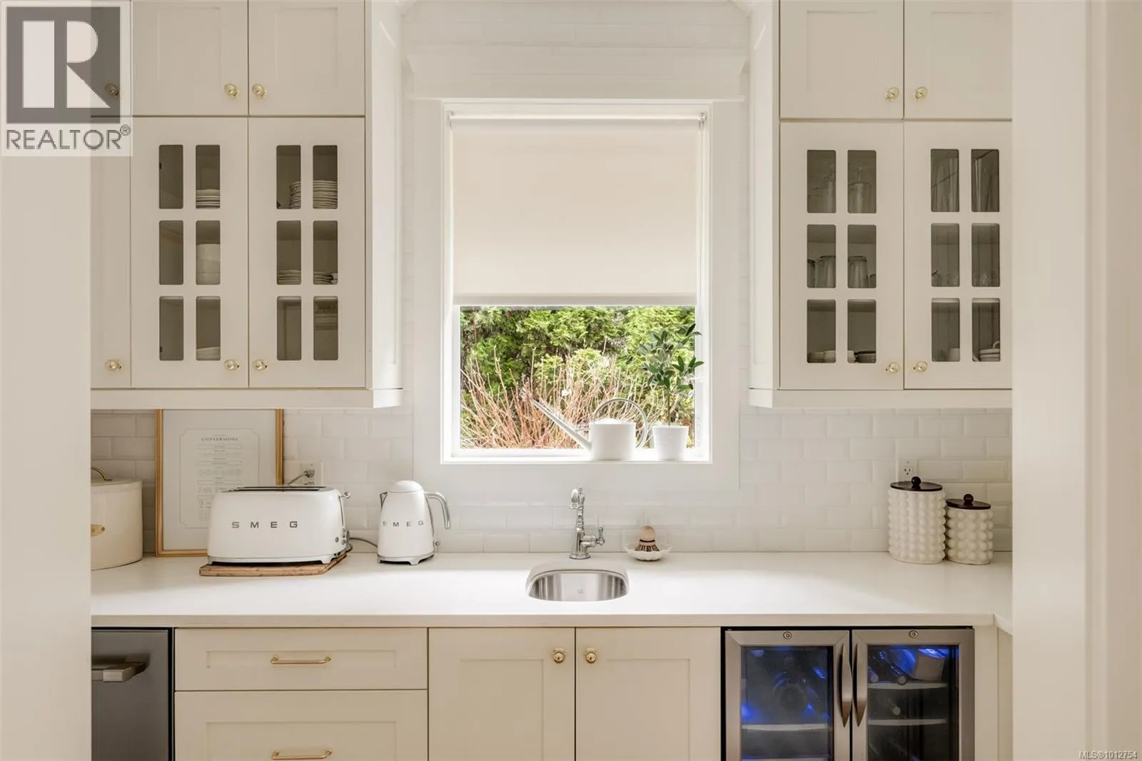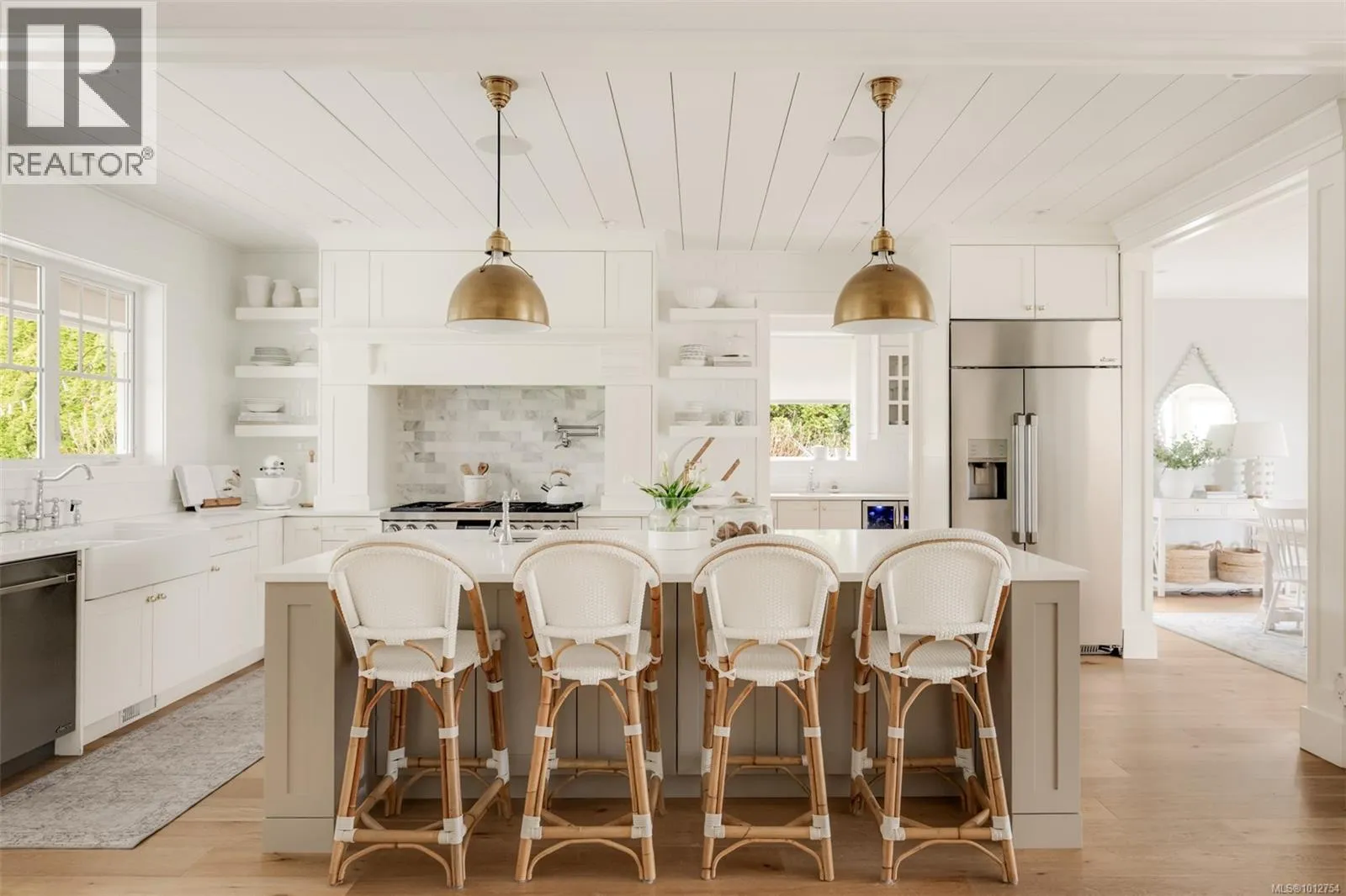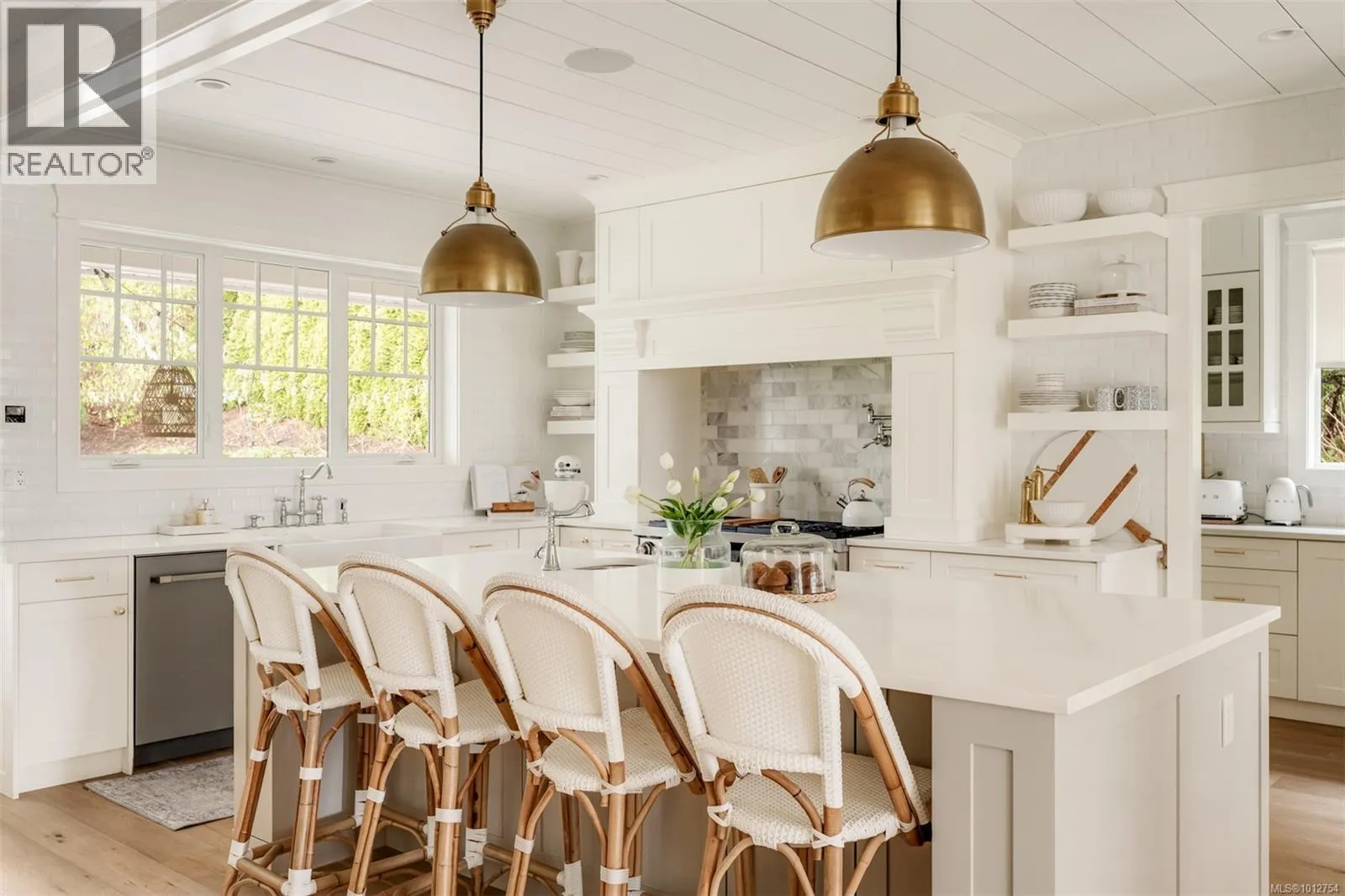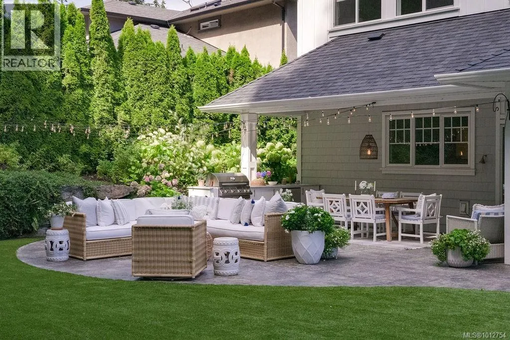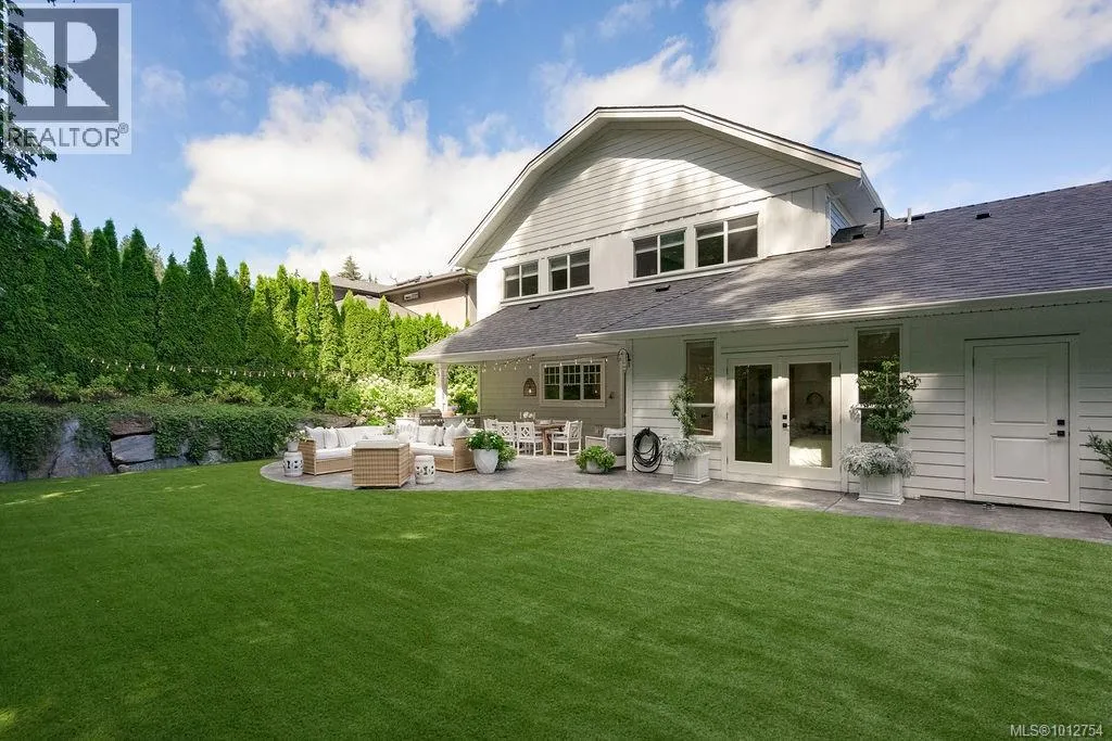 Nestled on a quiet cul-de-sac, this stunning coastal family home is surrounded by an abundance of green space. Steps away from a network of hiking trails and breathtaking viewpoints. Thoughtfully designed and styled by the owners of Nest and Nook Housewares and Design, every detail has been carefully thought out. This home features 4 spacious bedrooms and 5 bathrooms. On the top floor you will find the Primary bedroom with a stunning 4 piece en-suite, spacious walk in closet, and beautiful views of the sunrise, Sidney Spit, and Mount Baker. The other upper two bedrooms each have their own full bathrooms, and to complete the top floor the fully appointed upstairs laundry area makes family life easier. The functional floor plan allows for a growing family with an additional private bedroom and its own bathroom, perfect for in-laws, guests, or a nanny. On the main floor, the magazine worthy chef's kitchen is equipped with a Dacor double oven, 2 dishwashers, a large butler pantry, and leads out to a large covered back patio with outdoor kitchen. This is the perfect home for hosting large gatherings or intimate family dinners. The dining and great room are also spacious with large windows, taking in the view of the ocean and mountains. The basement area is fully finished with a play area, theatre area, bar area, and workout room. The garden area is beautifully landscaped with mature plants and full of sunshine. The backyard is practically maintenance free with mostly synthetic lawn and partial playground that can easily be converted to a full synlawn. The back yard provides a great play area as well as an entertainment area and is fully fenced for Fido. This spectacular home backs onto lush green space offering additional privacy and a playground for both children and adults. All this in a dream location, near Dean Park, Coles Bay Park, beaches, and near schools and rec centre. Certainly one of the finest homes offered in this area. (id:27476)