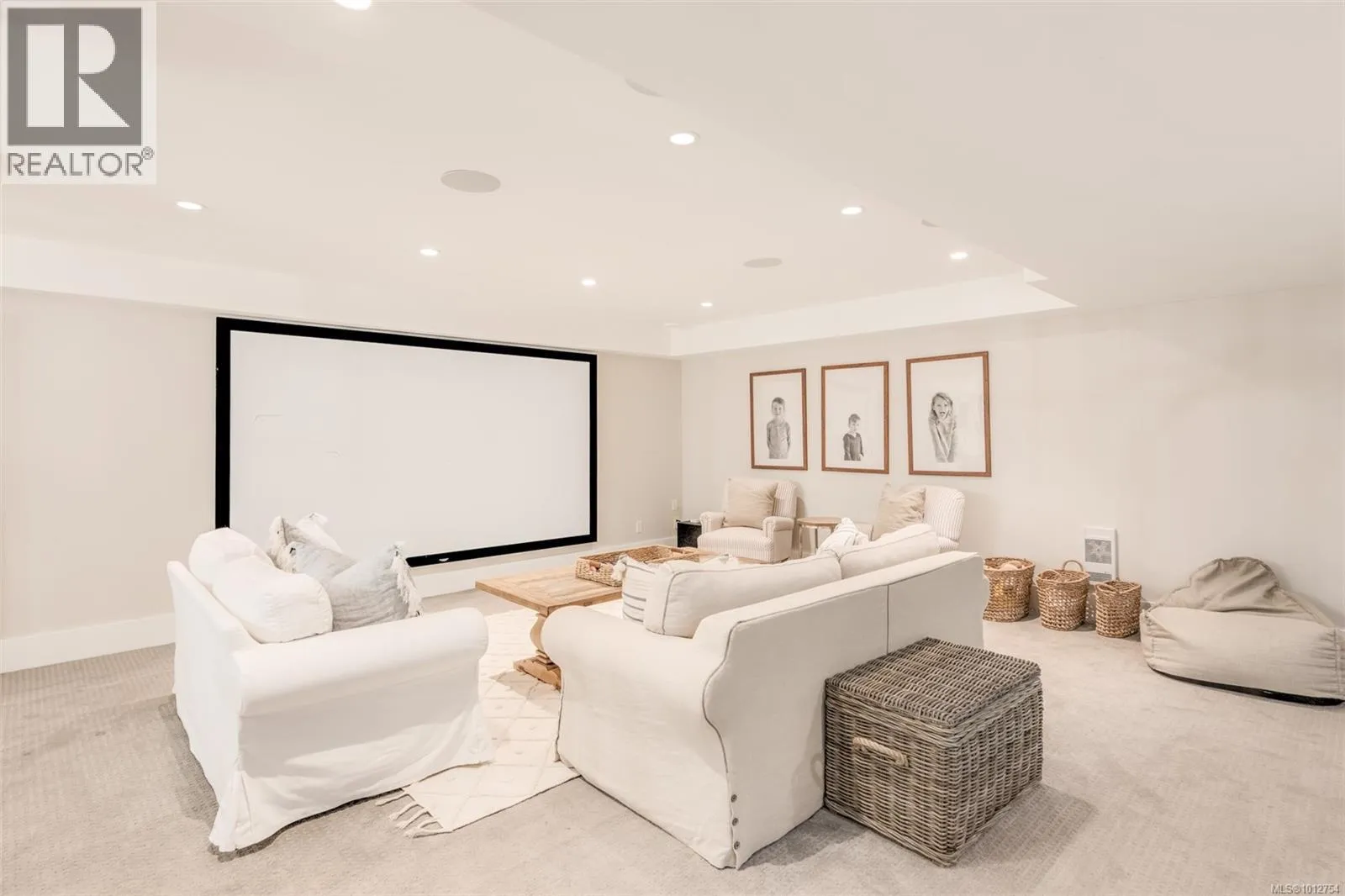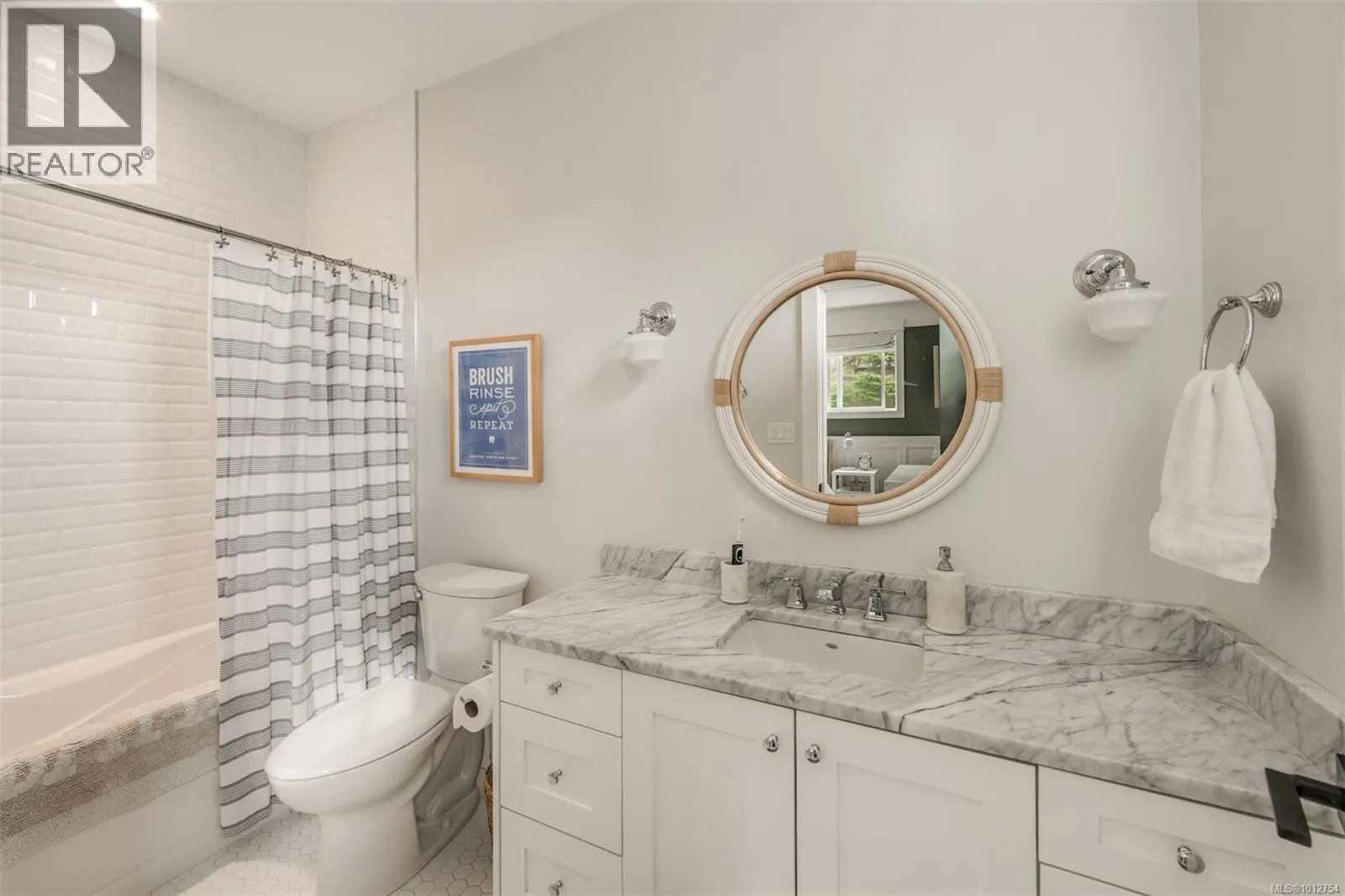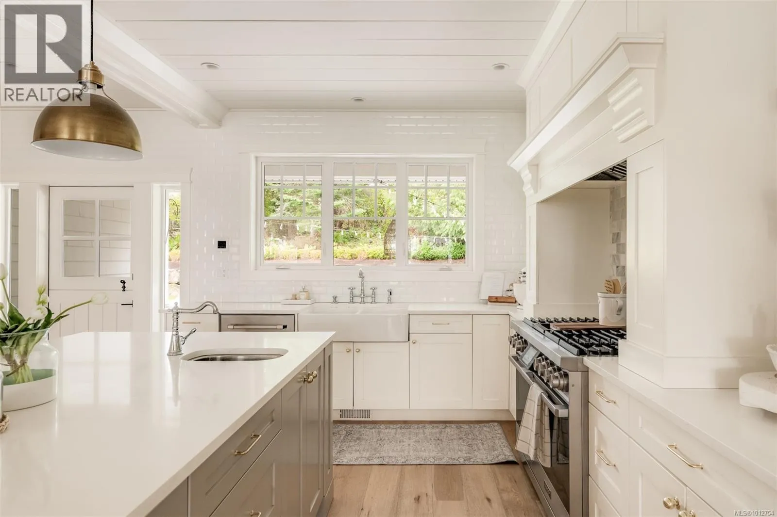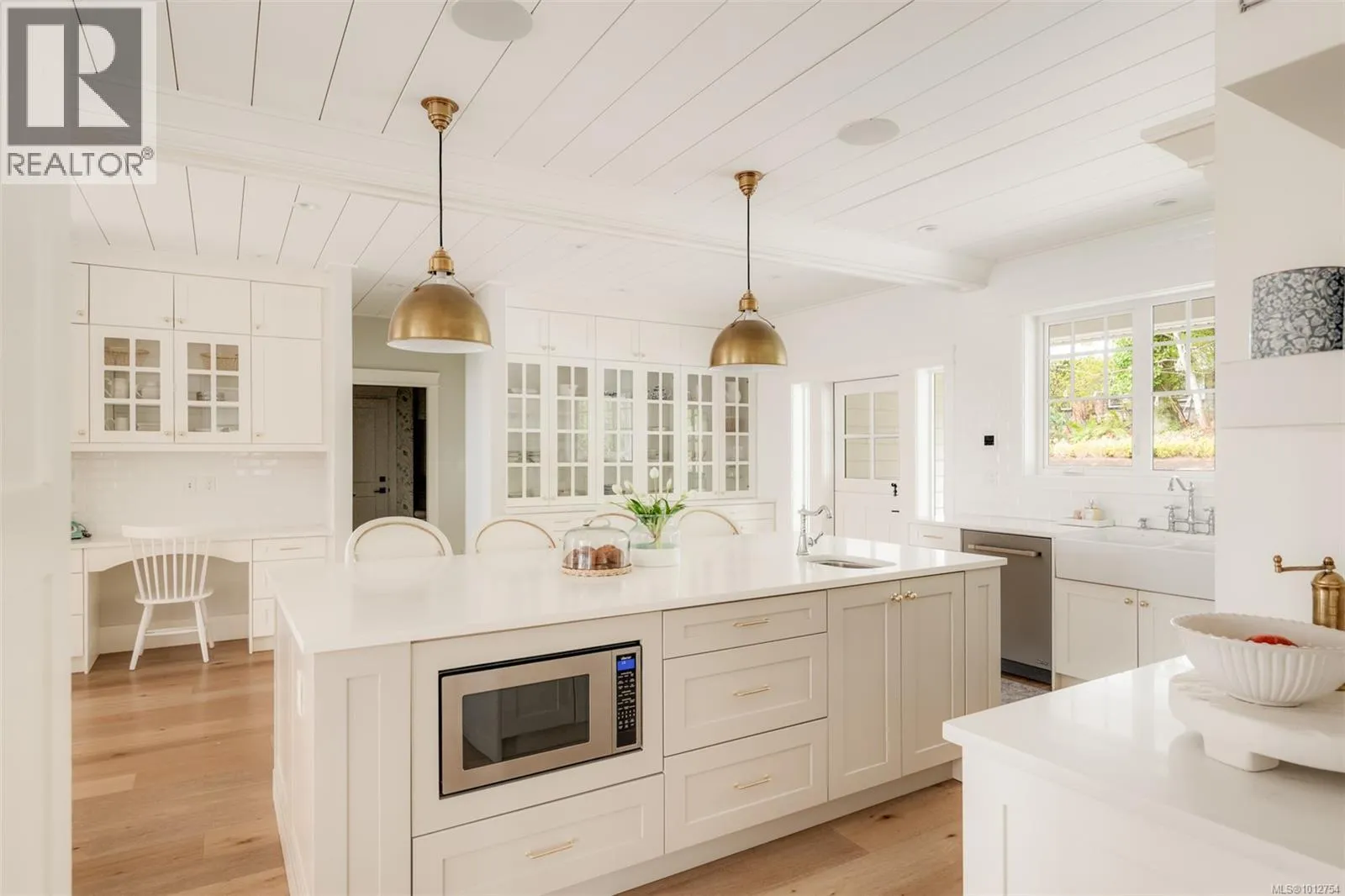 Nestled on a quiet cul-de-sac, this stunning coastal family home is surrounded by an abundance of green space. Steps away from a network of hiking trails and breathtaking viewpoints. Thoughtfully designed and styled by the owners of Nest and Nook Housewares and Design, every detail has been carefully thought out. This home features 4 spacious bedrooms and 5 bathrooms. On the top floor you will find the Primary bedroom with a stunning 4 piece en-suite, spacious walk in closet, and beautiful views of the sunrise, Sidney Spit, and Mount Baker. The other upper two bedrooms each have their own full bathrooms, and to complete the top floor the fully appointed upstairs laundry area makes family life easier. The functional floor plan allows for a growing family with an additional private bedroom and its own bathroom, perfect for in-laws, guests, or a nanny. On the main floor, the magazine worthy chef's kitchen is equipped with a Dacor double oven, 2 dishwashers, a large butler pantry, and leads out to a large covered back patio with outdoor kitchen. This is the perfect home for hosting large gatherings or intimate family dinners. The dining and great room are also spacious with large windows, taking in the view of the ocean and mountains. The basement area is fully finished with a play area, theatre area, bar area, and workout room. The garden area is beautifully landscaped with mature plants and full of sunshine. The backyard is practically maintenance free with mostly synthetic lawn and partial playground that can easily be converted to a full synlawn. The back yard provides a great play area as well as an entertainment area and is fully fenced for Fido. This spectacular home backs onto lush green space offering additional privacy and a playground for both children and adults. All this in a dream location, near Dean Park, Coles Bay Park, beaches, and near schools and rec centre. Certainly one of the finest homes offered in this area. (id:27476)