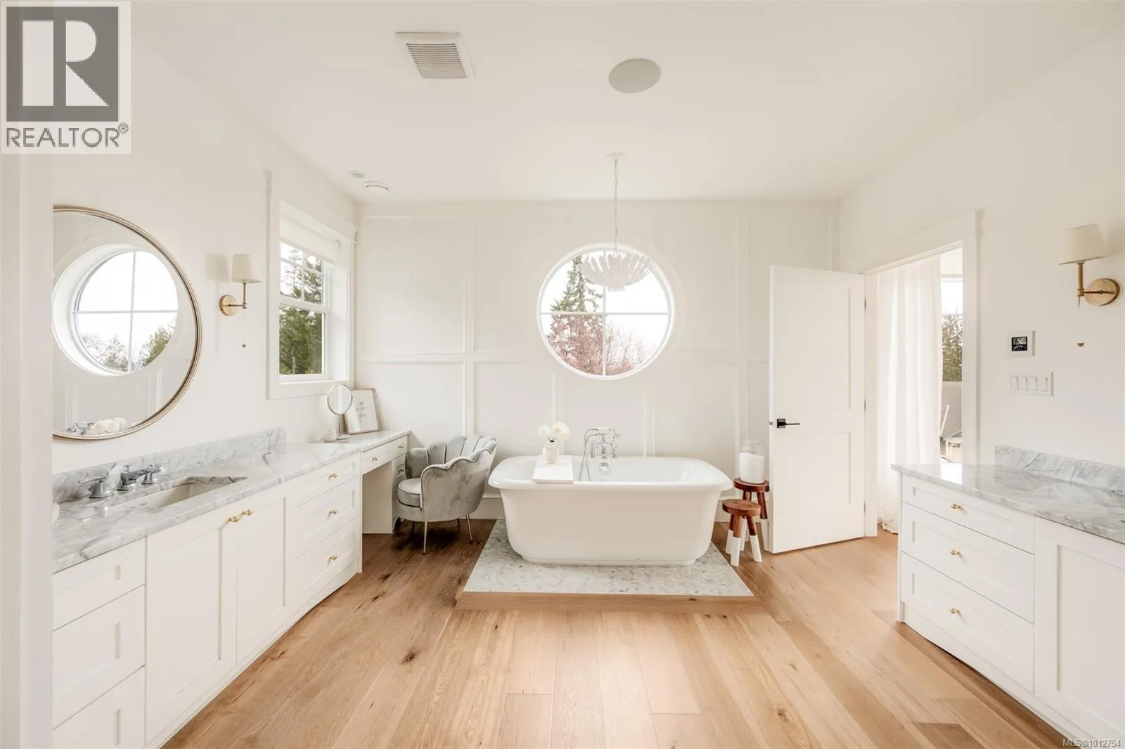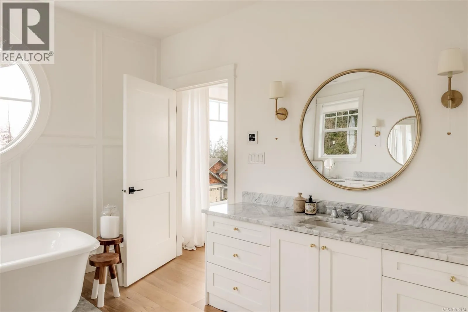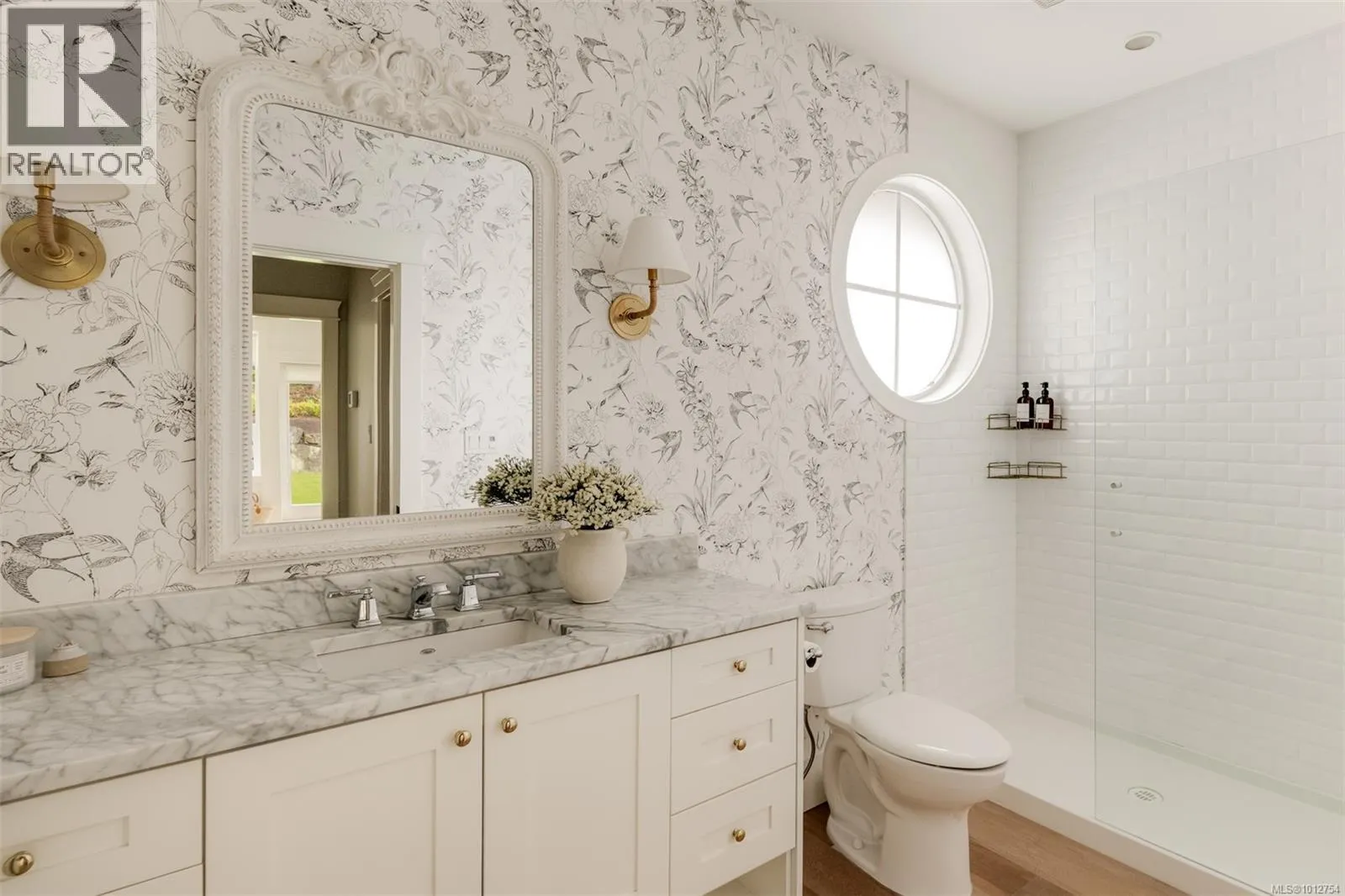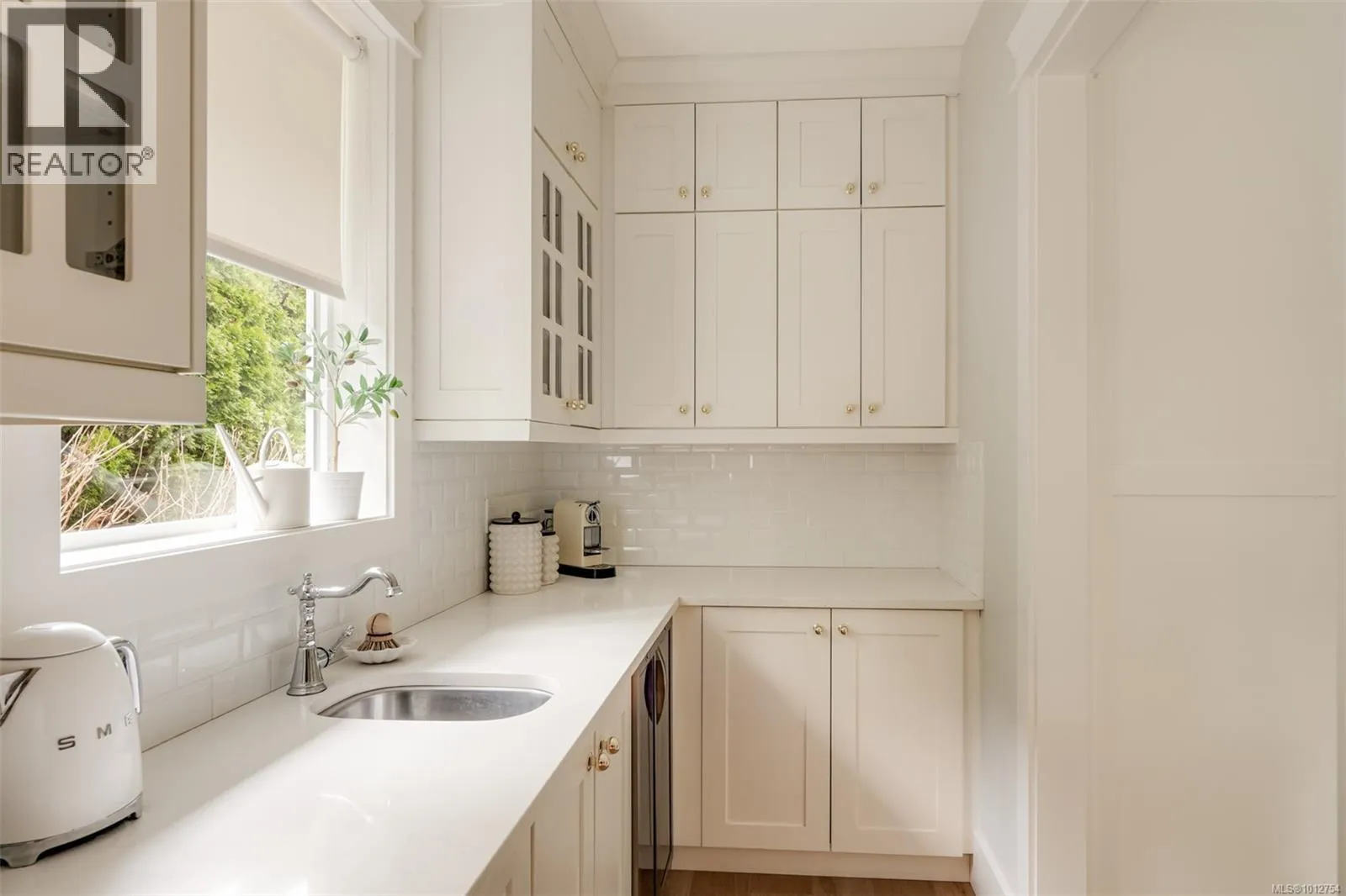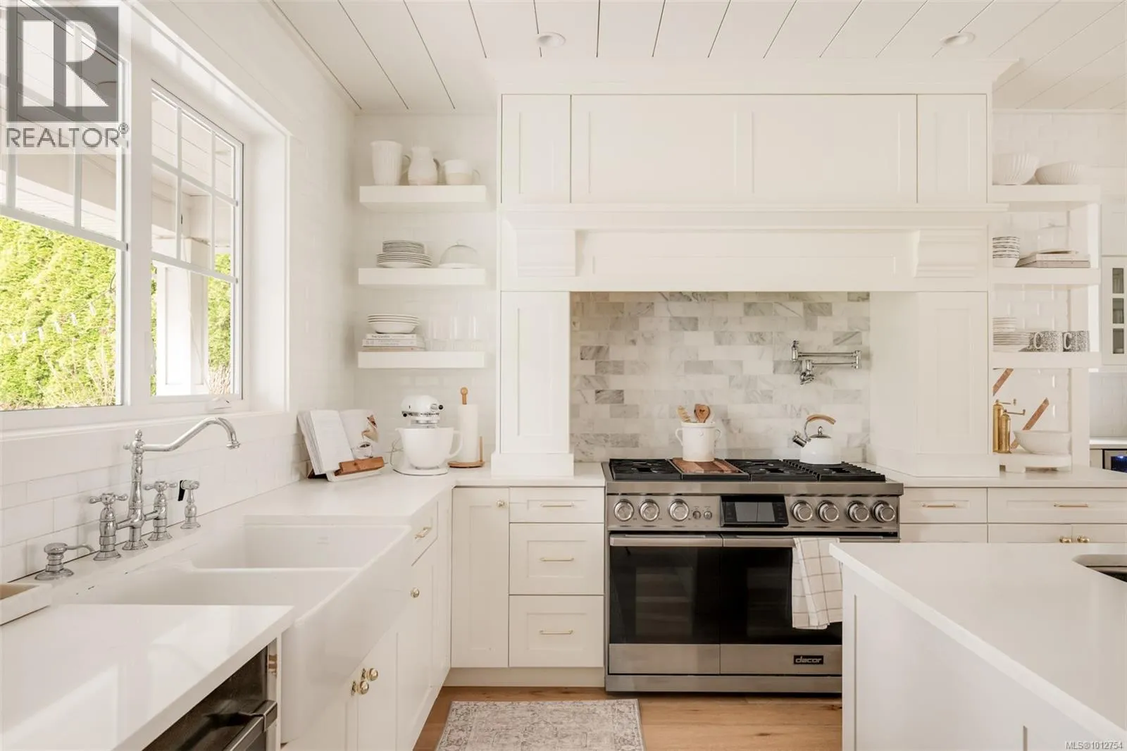 Nestled on a quiet cul-de-sac, this stunning coastal family home is surrounded by an abundance of green space. Steps away from a network of hiking trails and breathtaking viewpoints. Thoughtfully designed and styled by the owners of Nest and Nook Housewares and Design, every detail has been carefully thought out. This home features 4 spacious bedrooms and 5 bathrooms. On the top floor you will find the Primary bedroom with a stunning 4 piece en-suite, spacious walk in closet, and beautiful views of the sunrise, Sidney Spit, and Mount Baker. The other upper two bedrooms each have their own full bathrooms, and to complete the top floor the fully appointed upstairs laundry area makes family life easier. The functional floor plan allows for a growing family with an additional private bedroom and its own bathroom, perfect for in-laws, guests, or a nanny. On the main floor, the magazine worthy chef's kitchen is equipped with a Dacor double oven, 2 dishwashers, a large butler pantry, and leads out to a large covered back patio with outdoor kitchen. This is the perfect home for hosting large gatherings or intimate family dinners. The dining and great room are also spacious with large windows, taking in the view of the ocean and mountains. The basement area is fully finished with a play area, theatre area, bar area, and workout room. The garden area is beautifully landscaped with mature plants and full of sunshine. The backyard is practically maintenance free with mostly synthetic lawn and partial playground that can easily be converted to a full synlawn. The back yard provides a great play area as well as an entertainment area and is fully fenced for Fido. This spectacular home backs onto lush green space offering additional privacy and a playground for both children and adults. All this in a dream location, near Dean Park, Coles Bay Park, beaches, and near schools and rec centre. Certainly one of the finest homes offered in this area. (id:27476)