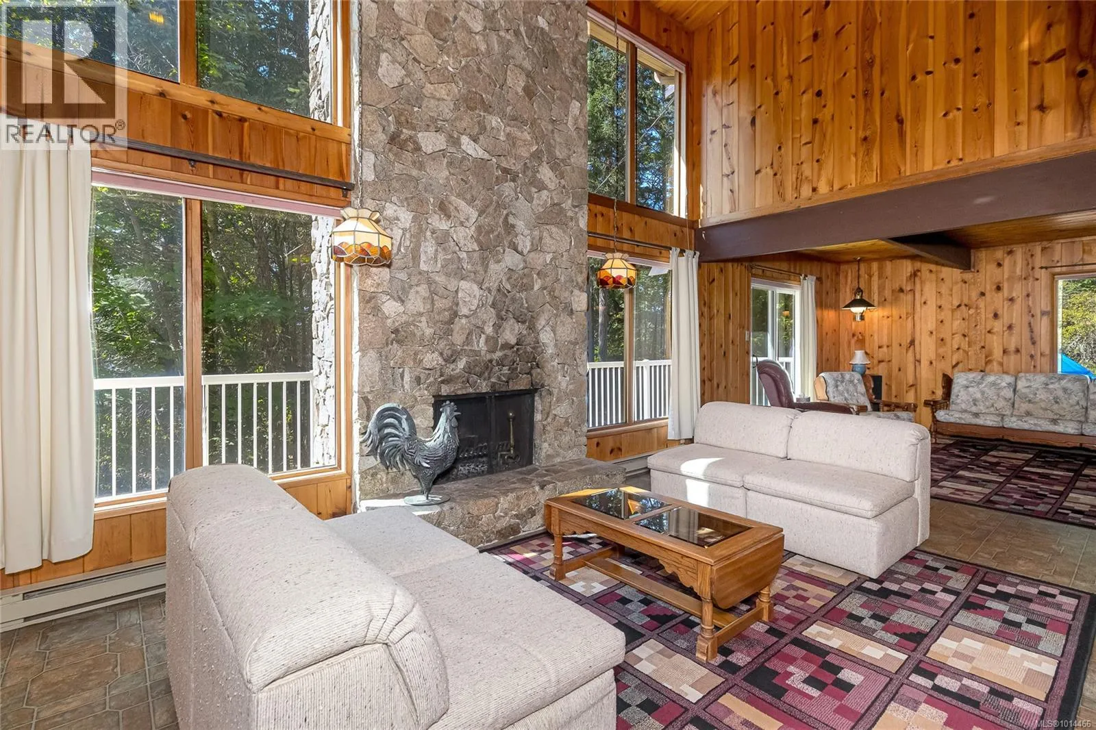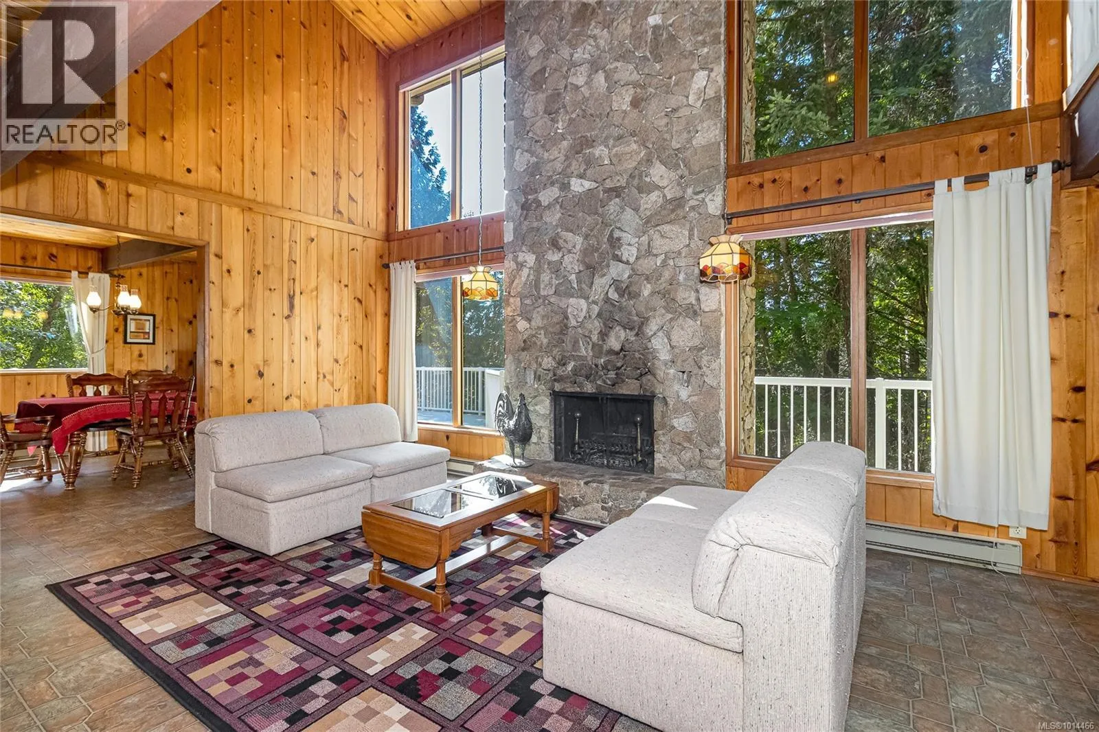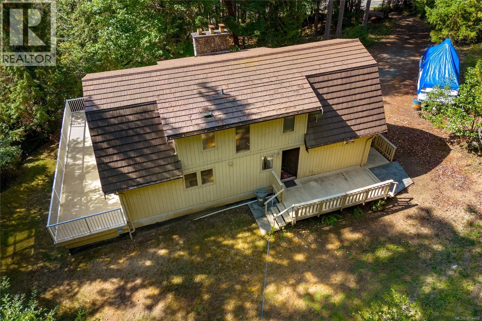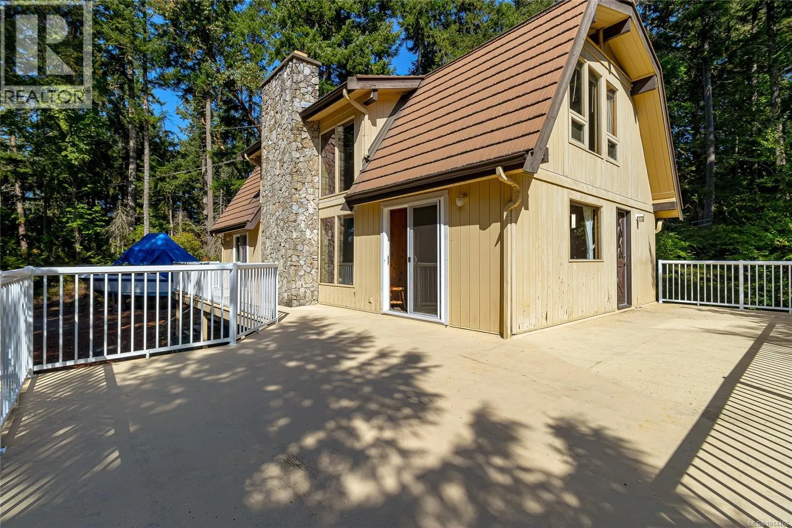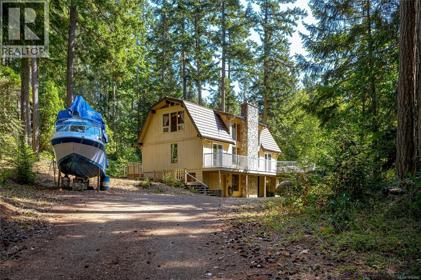 Escape to a private, serene 2-acre retreat, offering exceptional subdivision potential with 2 road frontages. This unique Lindal Cedar home welcomes you with a stunning, 2-story vaulted living room featuring a cozy rock fireplace & expansive windows that frame beautiful forest views. The main level has a classic kitchen & dining area, both with doors leading to a spacious, wrap-around sundeck. Inside, enjoy natural beauty with tongue-and-groove pine walls, ceilings, & exposed wooden beams. The durable metal roof offers lasting protection. Upstairs, 2 vaulted bedrooms offer tranquil forest views. The home also includes a convenient garage & a partially finished basement with a 3rd bedroom & roughed-in bathroom for the inlaws? Enjoy a lifestyle surrounded by nature with nearby parks, golf, & waterfront access. Located just 6 minutes from Swartz Bay Ferry Terminal, 10 minutes to Sidney, & 35 minutes to Victoria, this is a rare opportunity to own a peaceful haven with incredible potential. (id:27476)