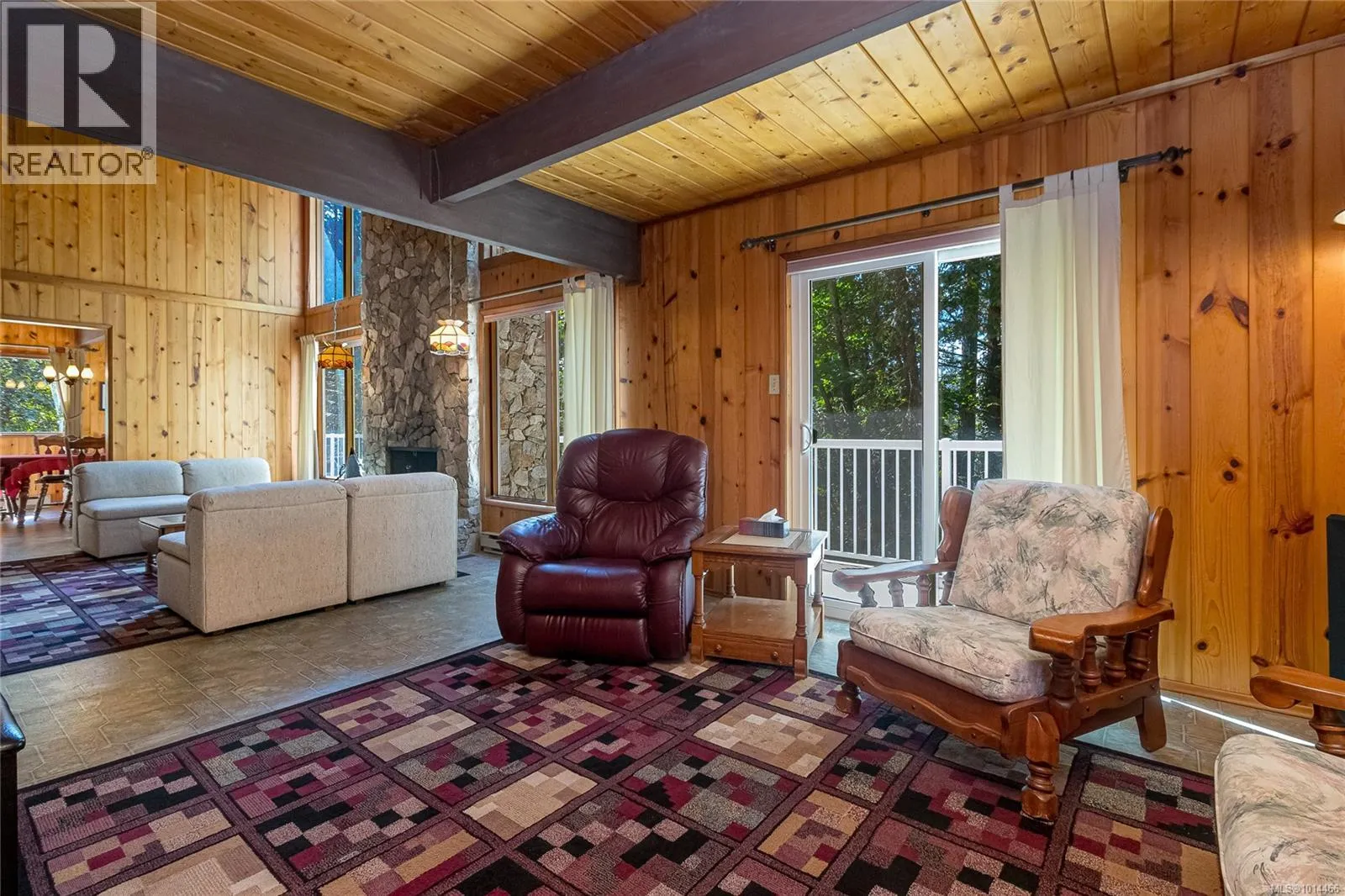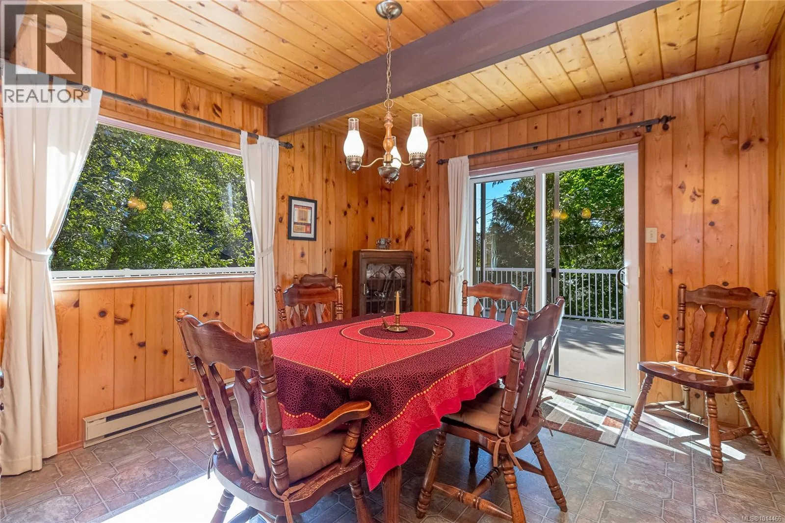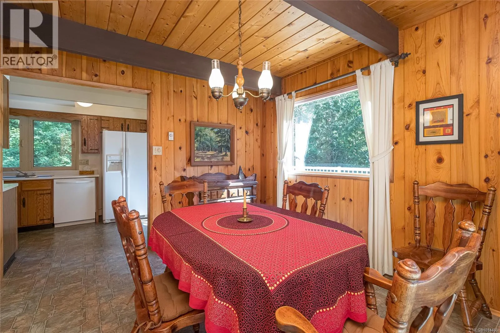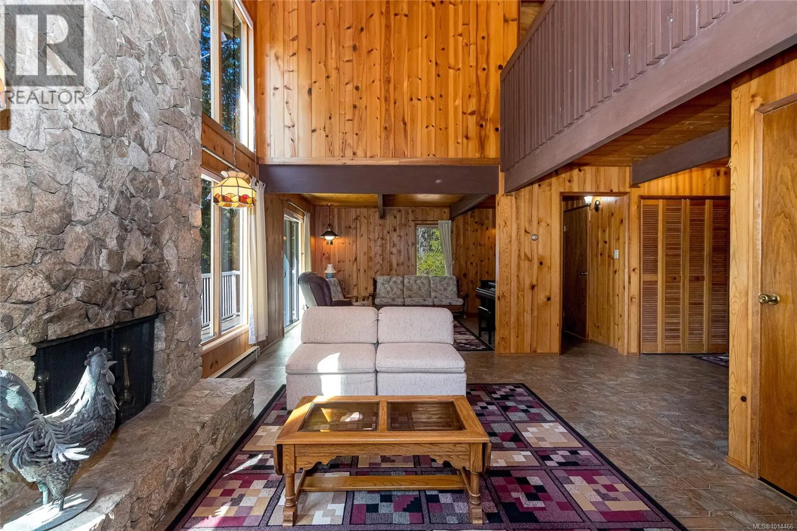 Escape to a private, serene 2-acre retreat, offering exceptional subdivision potential with 2 road frontages. This unique Lindal Cedar home welcomes you with a stunning, 2-story vaulted living room featuring a cozy rock fireplace & expansive windows that frame beautiful forest views. The main level has a classic kitchen & dining area, both with doors leading to a spacious, wrap-around sundeck. Inside, enjoy natural beauty with tongue-and-groove pine walls, ceilings, & exposed wooden beams. The durable metal roof offers lasting protection. Upstairs, 2 vaulted bedrooms offer tranquil forest views. The home also includes a convenient garage & a partially finished basement with a 3rd bedroom & roughed-in bathroom for the inlaws? Enjoy a lifestyle surrounded by nature with nearby parks, golf, & waterfront access. Located just 6 minutes from Swartz Bay Ferry Terminal, 10 minutes to Sidney, & 35 minutes to Victoria, this is a rare opportunity to own a peaceful haven with incredible potential. (id:27476)