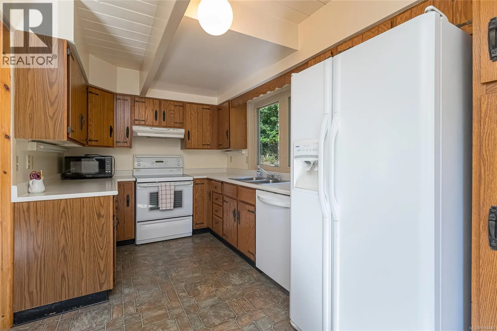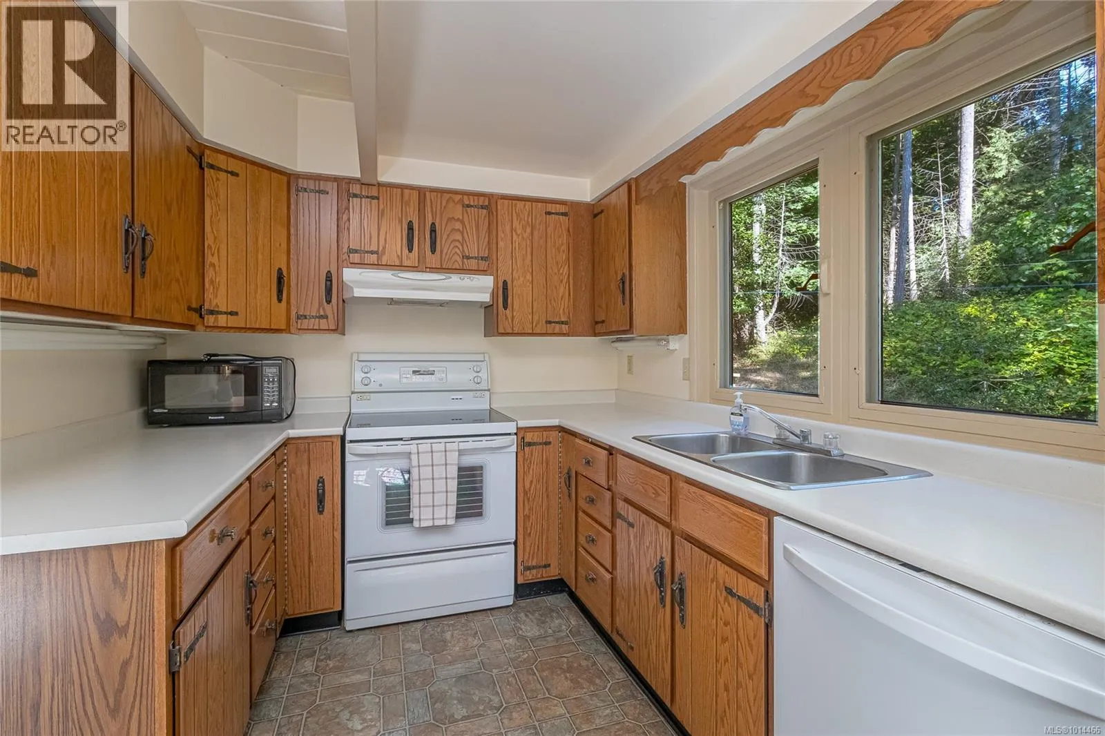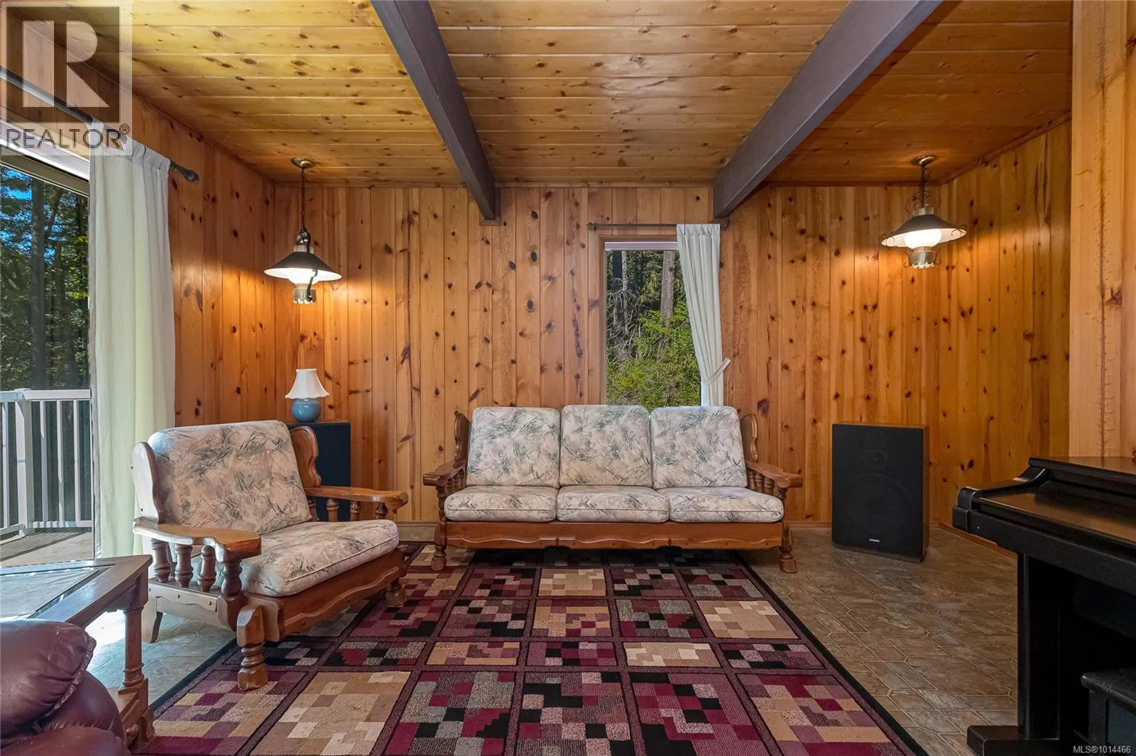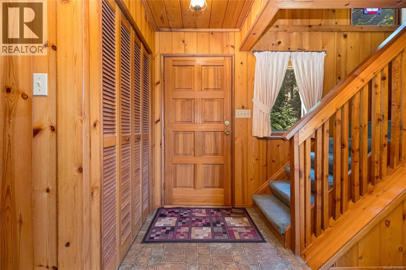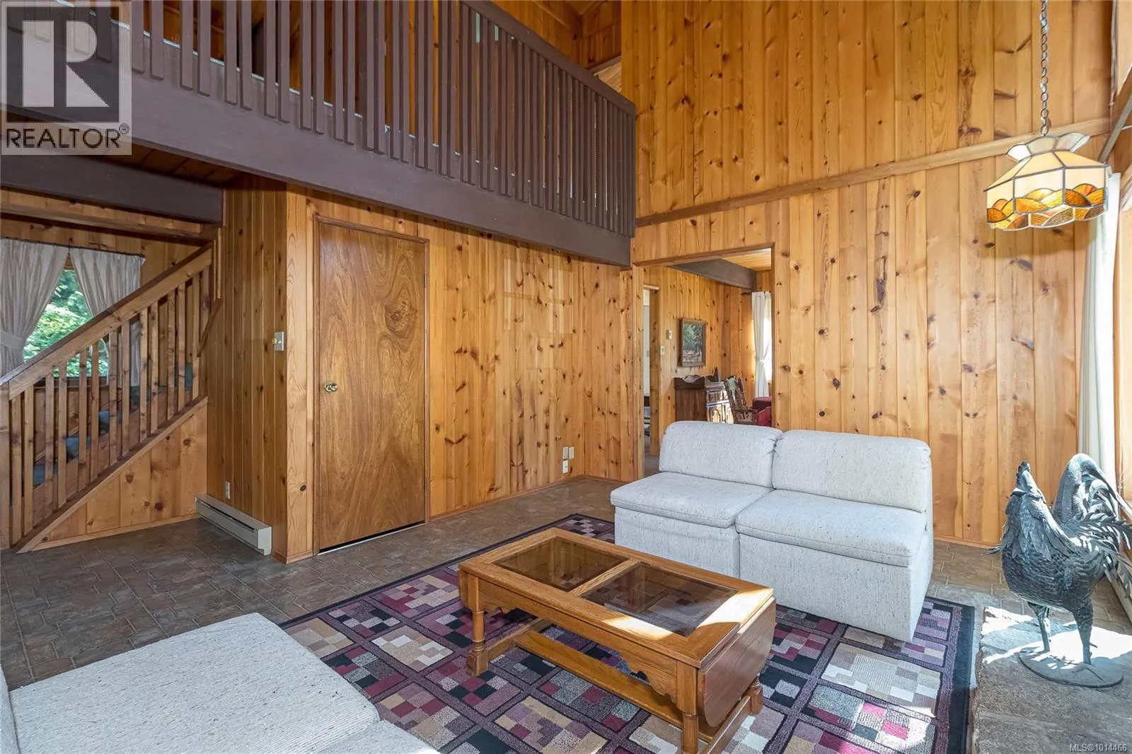 Escape to a private, serene 2-acre retreat, offering exceptional subdivision potential with 2 road frontages. This unique Lindal Cedar home welcomes you with a stunning, 2-story vaulted living room featuring a cozy rock fireplace & expansive windows that frame beautiful forest views. The main level has a classic kitchen & dining area, both with doors leading to a spacious, wrap-around sundeck. Inside, enjoy natural beauty with tongue-and-groove pine walls, ceilings, & exposed wooden beams. The durable metal roof offers lasting protection. Upstairs, 2 vaulted bedrooms offer tranquil forest views. The home also includes a convenient garage & a partially finished basement with a 3rd bedroom & roughed-in bathroom for the inlaws? Enjoy a lifestyle surrounded by nature with nearby parks, golf, & waterfront access. Located just 6 minutes from Swartz Bay Ferry Terminal, 10 minutes to Sidney, & 35 minutes to Victoria, this is a rare opportunity to own a peaceful haven with incredible potential. (id:27476)