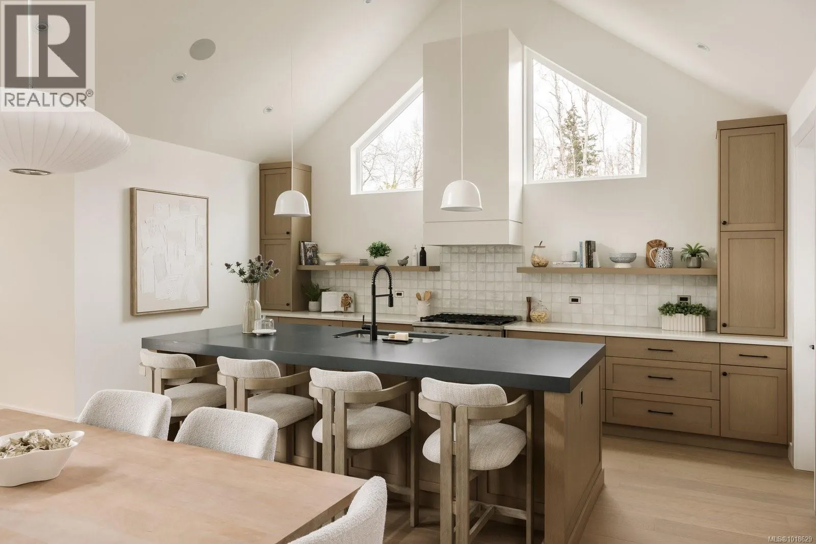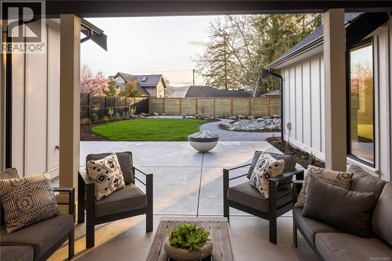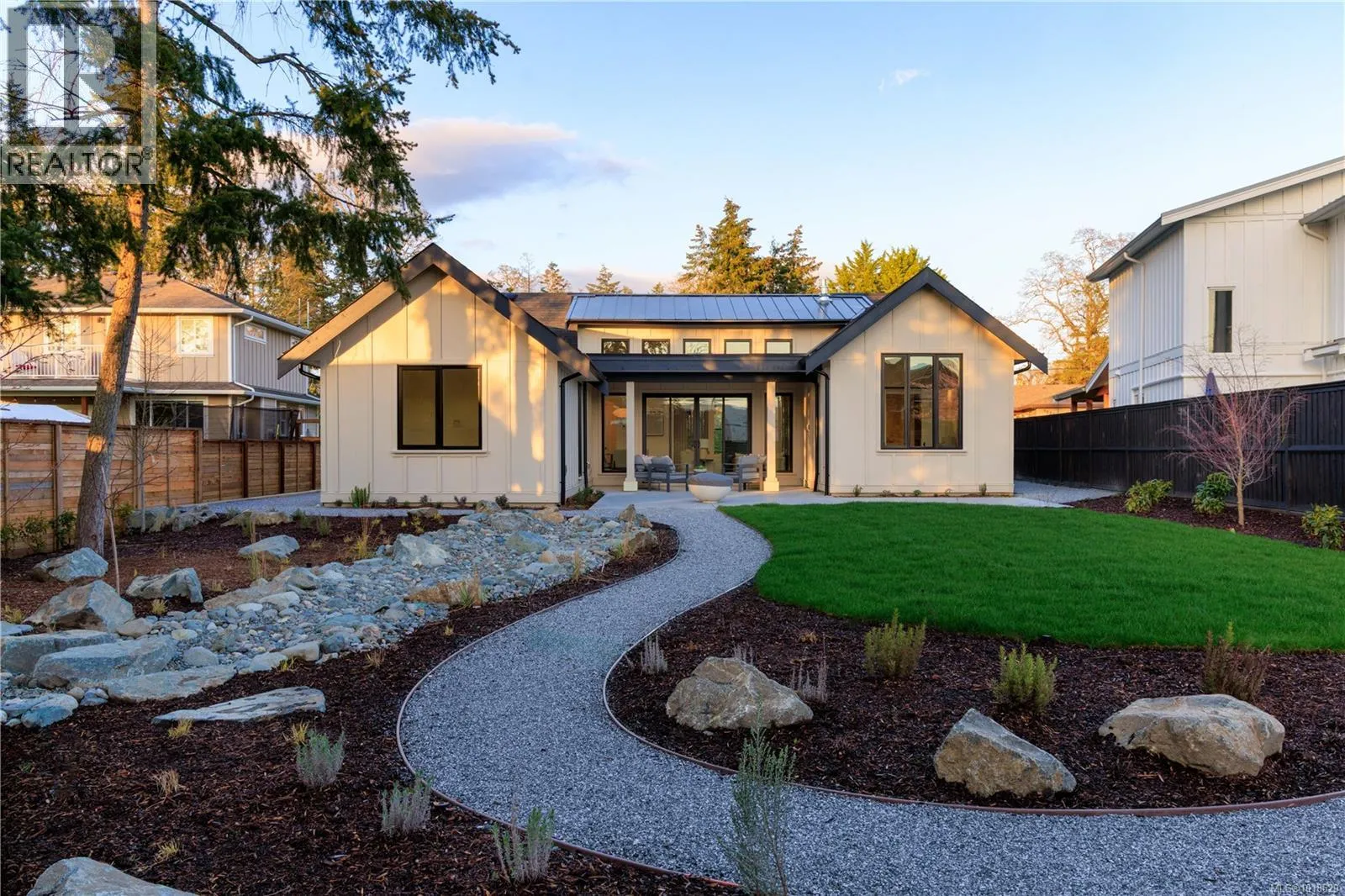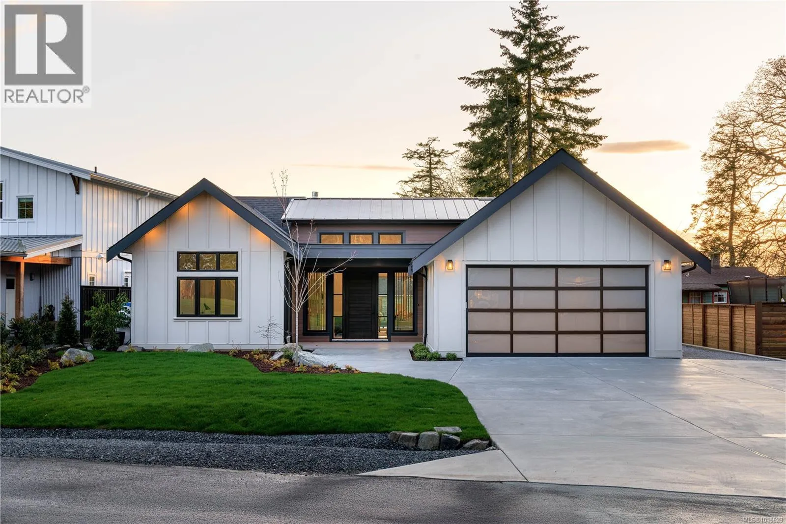 Open House Sunday 1pm-3pm. - Stunning 4-bed, 3-bath rancher situated on a scenic 0.25-acre lot with exceptional sun exposure in the desirable Pat Bay neighbourhood. This immaculate single-level home offers a spacious open-concept layout with the finest finishes. The modern Cape Cod design is complemented by large windows,16ft vaulted ceilings, and wide-plank hardwood floors throughout. The gourmet kitchen features shaker cabinetry, soft-close doors, premium appliances, quartz countertops, an oversized island, and a walk-in pantry. Retreat to the luxurious master suite with a 5-piece ensuite and walk-in closet. Outside, enjoy an expansive west facing patio space, ideal for entertaining or relaxing in the tranquil surroundings. Additional conveniences include an oversized double-car garage, radiant in-floor heating, a heat pump with A/C, and a partially covered rear patio to further enhance the appeal. Built without compromise. (id:27476)