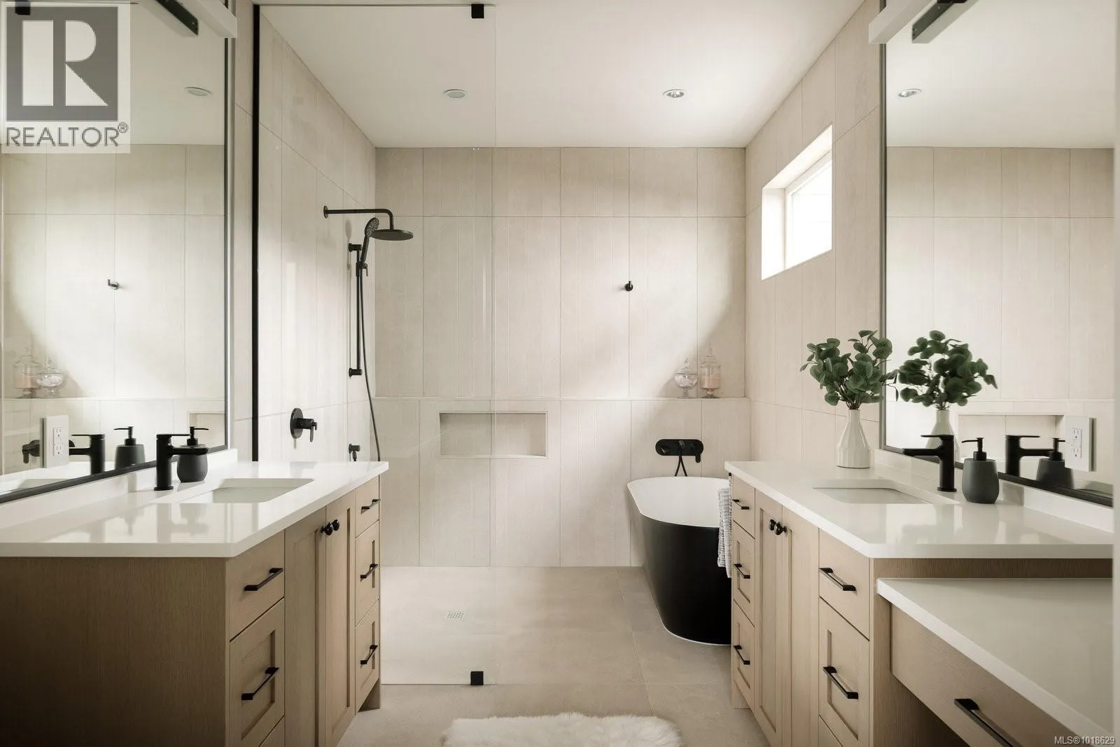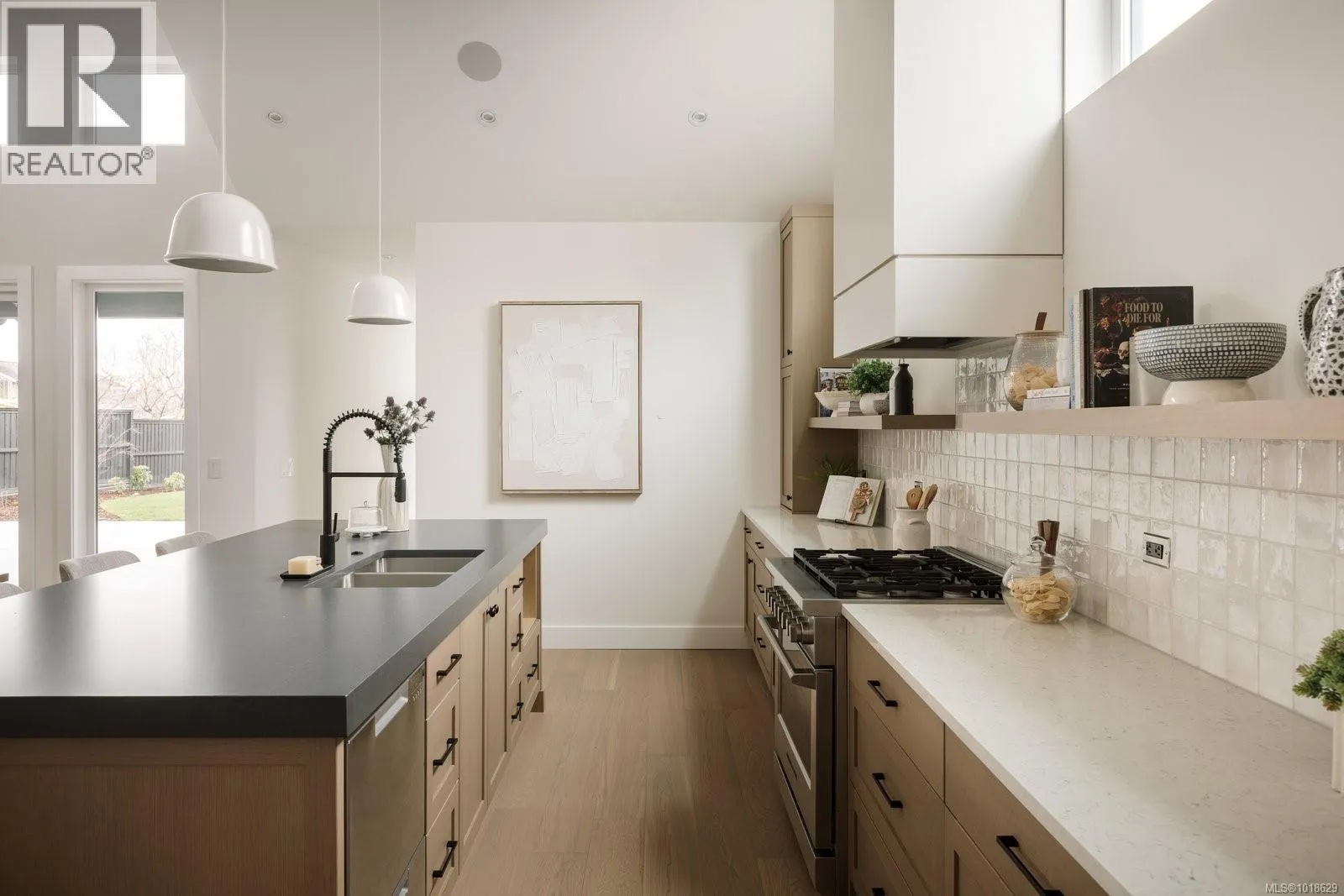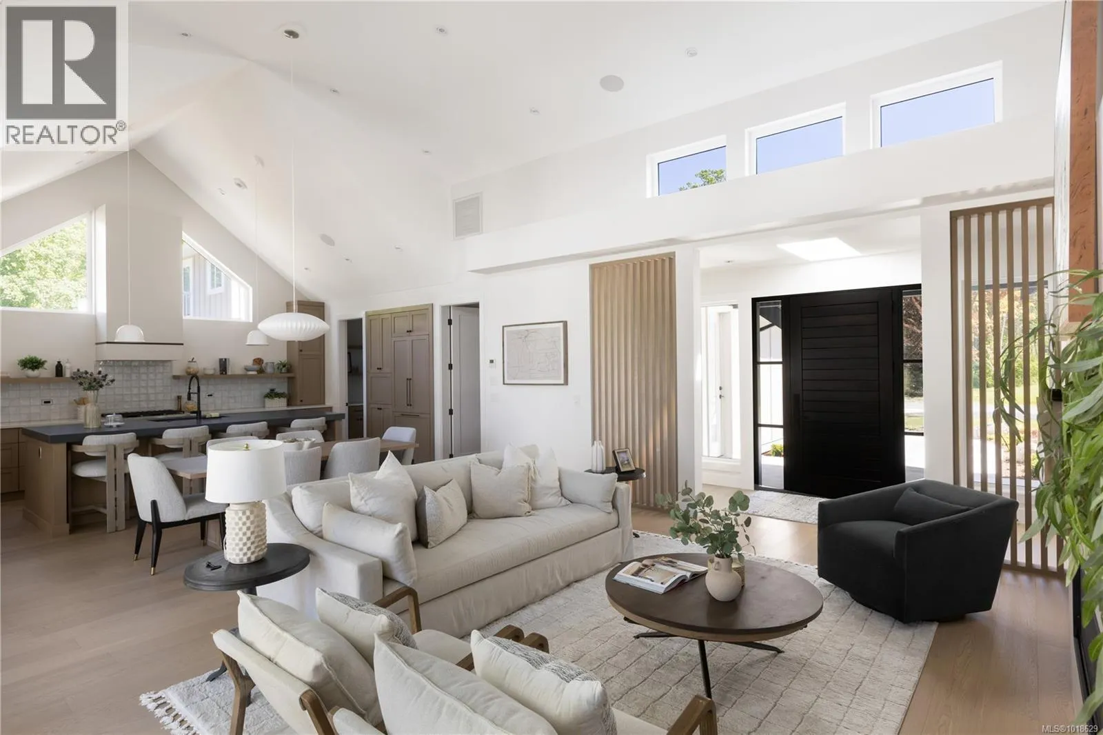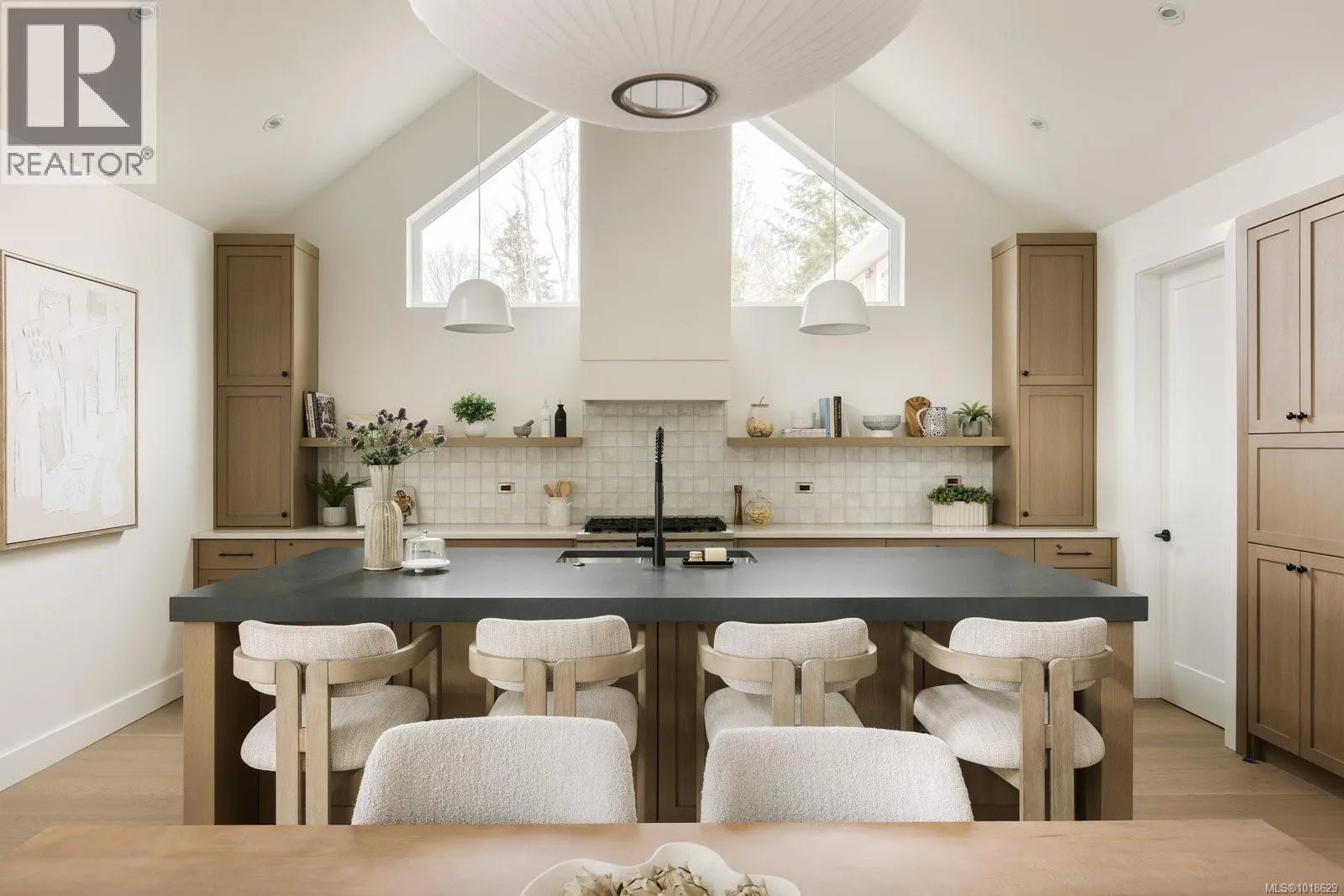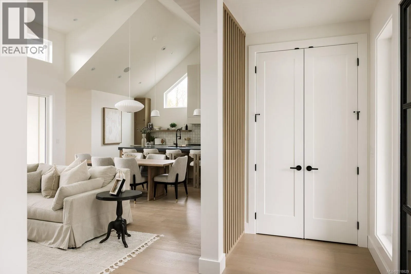 Open House Sunday 1pm-3pm. - Stunning 4-bed, 3-bath rancher situated on a scenic 0.25-acre lot with exceptional sun exposure in the desirable Pat Bay neighbourhood. This immaculate single-level home offers a spacious open-concept layout with the finest finishes. The modern Cape Cod design is complemented by large windows,16ft vaulted ceilings, and wide-plank hardwood floors throughout. The gourmet kitchen features shaker cabinetry, soft-close doors, premium appliances, quartz countertops, an oversized island, and a walk-in pantry. Retreat to the luxurious master suite with a 5-piece ensuite and walk-in closet. Outside, enjoy an expansive west facing patio space, ideal for entertaining or relaxing in the tranquil surroundings. Additional conveniences include an oversized double-car garage, radiant in-floor heating, a heat pump with A/C, and a partially covered rear patio to further enhance the appeal. Built without compromise. (id:27476)