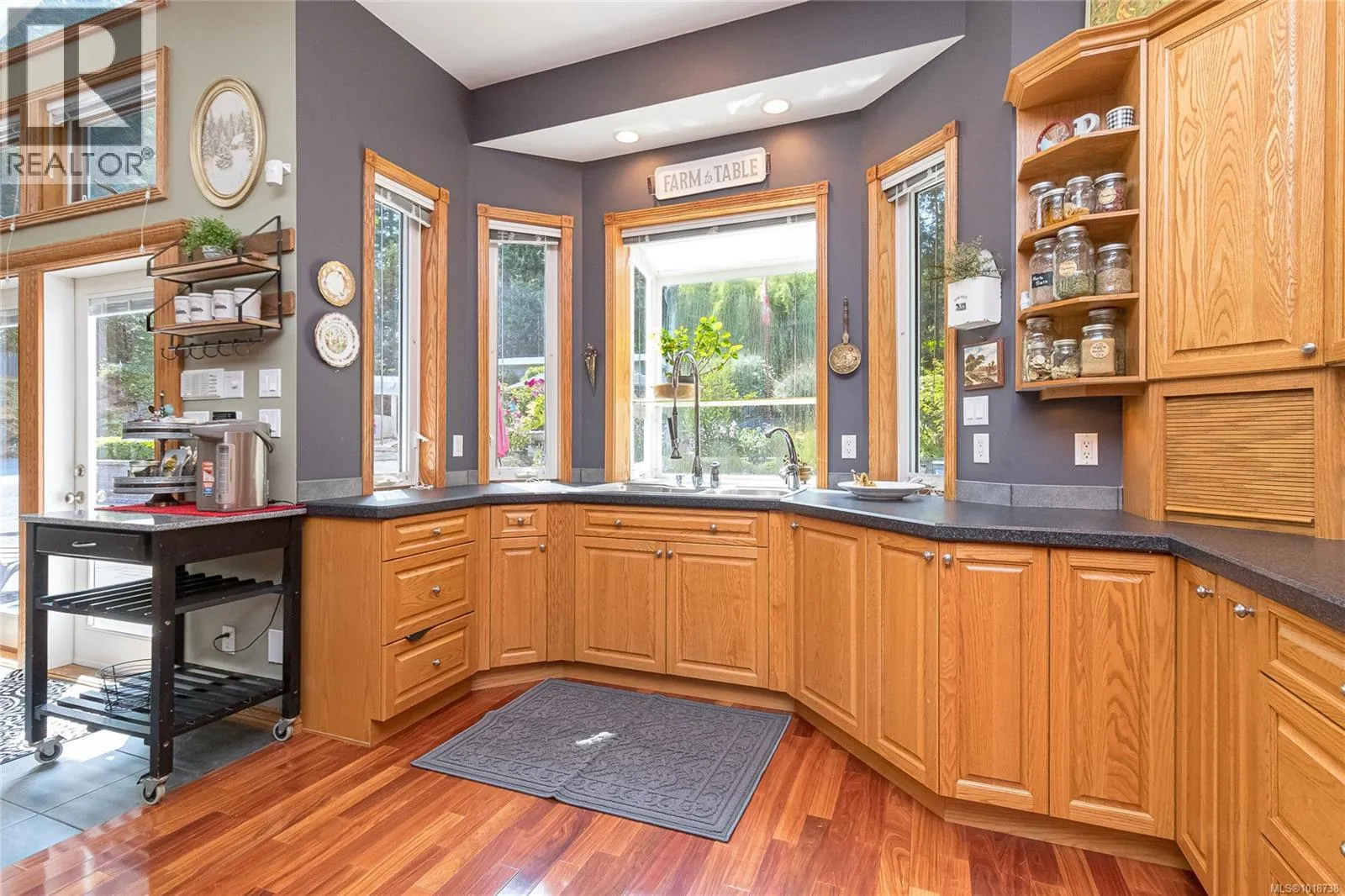 Large Country Home suitable for an active Family and Collectors with many dear possessions (bus, cars, boats) that need under roof care.A great Entertainment Home A well built and cared for, 4BR -(potential 7 Bedrooms home) plus 2 bedroom carriage house used for extended family on a fully landscaped ~ 1 acre in a quiet neighbourhood 10 minutes to Ferry, Airport , Sidney & Deep Cove. This is a Bare Land , self managed, Strata Property with access to Hiking trails and a Tennis Court. Enjoy the large Entertainment areas inside and outside of this home. Bring all your hobbies and have room to do it all. No expense spared in the Gourmet Kitchen and large Master Suite. Space for your imagination. On the property there is a garage/workshop for large R/V also another garage for car or boat storage. Must be seen to be appreciated! (id:27476)