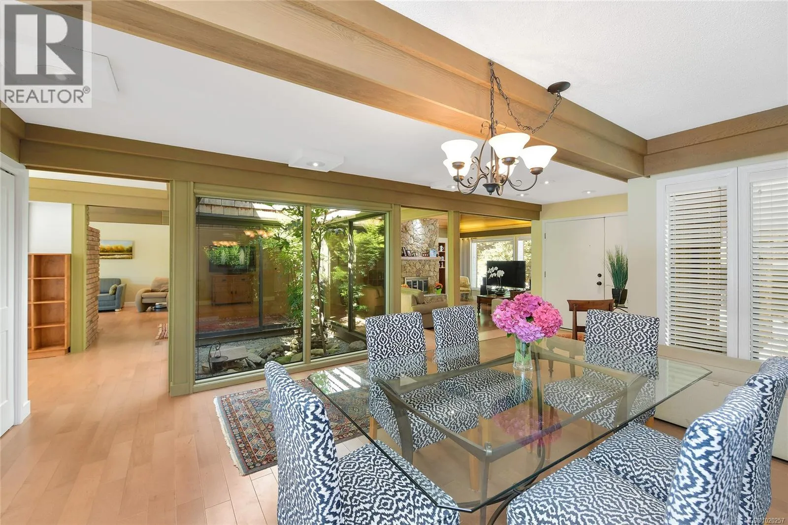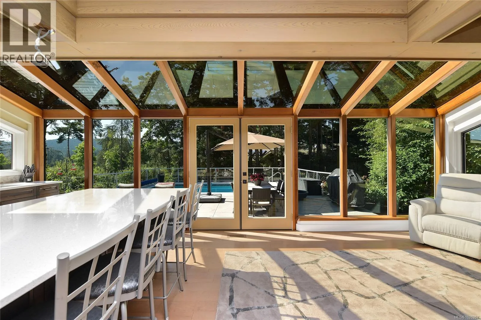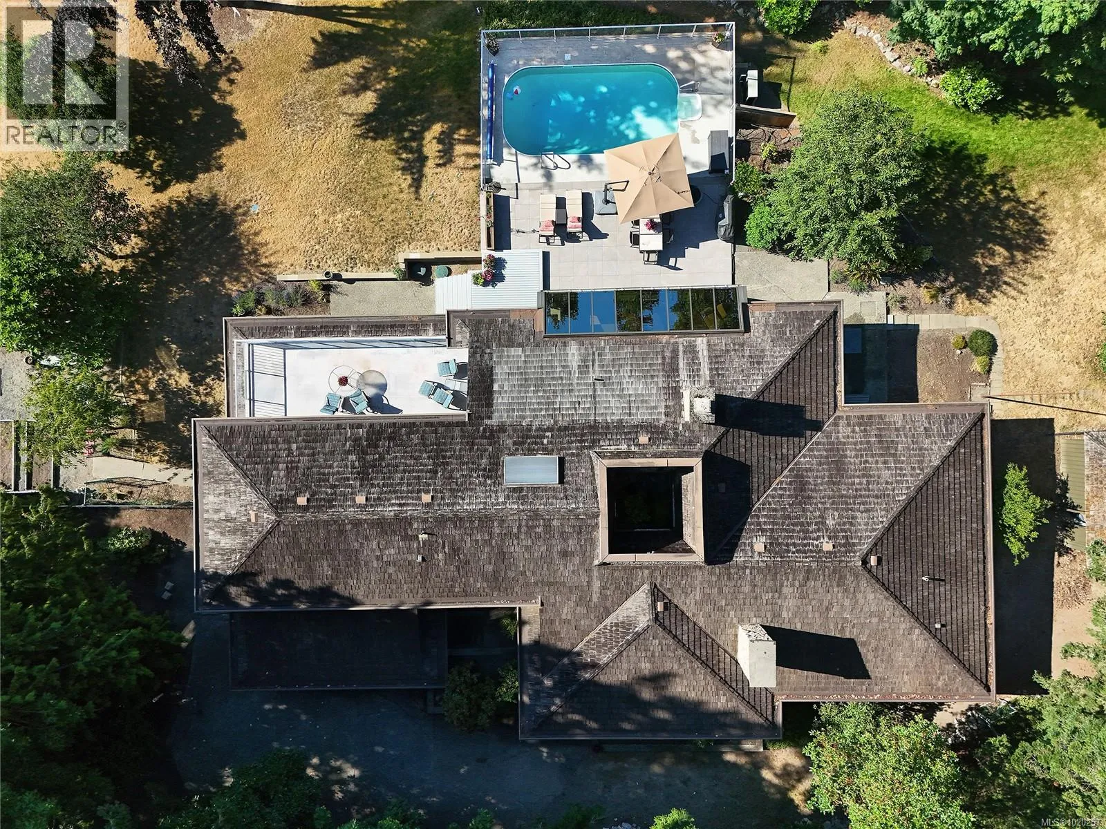 Welcome to your private retreat in sunny Ardmore. Set on 1-acre, this thoughtfully updated 4BD/4BA family home features a fully fenced garden, detached 1,100 sq.ft. workshop with its own heat pump, and a resort-style backyard with large deck and heated pool perfect for entertaining or unwinding. Inside, youâll find quartz counters, a large kitchen island, maple floors, SS appliances, and a cozy wood stove. The open-concept kitchen flows seamlessly into a bright sunroom, while an indoor atrium opens into the inviting living room with a wood-burning fireplace. The main floor offers easy one-level living, complete with a spacious primary suite that includes a walk-in closet and an ensuite with heated floors. A bonus crafts room for hobbies, an oversized double garage with RV/boat parking, and a self-contained in-law suite for added flexibility. Located just minutes to ferries, the airport, and the shops of Sidney, this home offers peaceful country living with urban convenience. (id:27476)