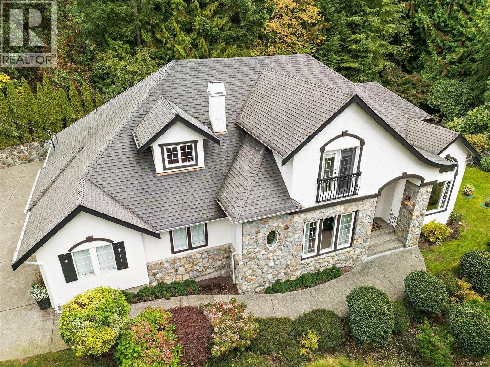 Set on nearly an acre of pristine, manicured grounds, this distinguished French Tudor residence blends timeless elegance with modern comfort. Arched entryways, French doors, vaulted ceilings, and new hardwood flooring enhance the 3,274 sq ft layout. The brand-new chefâs kitchen features premium appliances, including a 36'' Wolf gas range, and an adjoining butlerâs pantry. The 2,400 sq ft main level includes a grand foyer, formal living and dining rooms, a bright great room, casual dining area, garden-view office/den (potential 4th bedroom), laundry room, and spacious main-floor primary suite. Upstairs are two additional bedrooms. A brand-new detached workshopâwith its own driveway behind the fully gated propertyâoffers exceptional storage, extensive workspace, and potential for guest accommodation or rental income. It could also function as a large garage for car enthusiasts. Minutes from warm beaches, walking trails, a winery, Deep Cove Chalet, Sidney, BC Ferries, and the Airport. (id:27476)