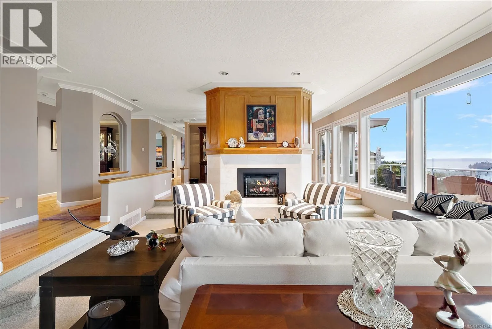 Stunning ocean, island views! This elegant 3BD/2BA California-style rancher sits on a private, landscaped acre with panoramic vistas from all main rooms. Enjoy a renovated chefâs kitchen with built-ins, granite counters, eating bar, and a bright view-filled breakfast area. Spacious living, dining & family roomsâeach with a fireplaceâoffer effortless comfort and entertaining. Updates include exterior paint, reinforced pressure-treated decking, new garden boxes, remote-control shades, four premium LED fixtures, and a new thermostat for the Trane heat pump. Outdoor perks: hot tub, fire table, two sheds, patio-stone rock garden, stone walkway, and expanded views. The serene primary suite features a private patio and spa-inspired bath. A full laundry room and double garage with workshop complete the home. Surrounded by nature trails yet minutes to ferry, airport, marinas, beaches & Sidney, and under 30 minutes to Victoria. Impeccably maintainedâmove-in ready! (id:27476)