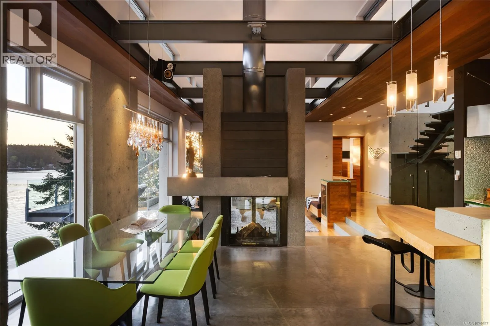 Oceanfront Masterpiece | Malibu Meets Vancouver Island. Oceanfront Masterpiece. Seldom does a home of this extraordinary calibre come available. Perfectly sited on 1.59 private acres with 625' of ocean frontage, the steel & concrete residence offers a rare blend of oceanfront luxury and architectural brilliance. Floor-to-ceiling windows and signature porthole accents frame stunning panoramic views of the ocean, islands, and passing marine activity. A bespoke flybridge extends from the living area, offering front-row views of the 82â infinity lap pool - perfectly aligned to track the sun from sunrises over Mount Baker, to glowing sunsets on the water. Inside, sustainable geothermal heating warms polished concrete floors, beautifully paired with the rich hues of inlaid wood, floating stair rungs, and custom cabinetry. The main floor primary suite is a serene retreat with spa-inspired ensuite and sweeping vistas. The lower level offers guest accommodations, a media room, wine cellar, and a poolside gym with retractable glass doors for seamless indoor-outdoor living. Upstairs, a flexible family room or office provides a quiet escape. Custom kitchen cabinetry has been created from four hundred year old reclaimed wood harvested from the Great Lakes. Complimented by custom stainless steel, granite and a central island topped with 1.5'' Thinkglass. Access a heated outdoor BBQ area with wood burning fireplace and concrete formed dining table. Relax to the sound of flowing water cascading from a man-made stream to a contemporary waterfall enhancing the natural ambiance. Designed by Daniel Boot, this home is a true coastal sanctuary - private and peaceful, yet minutes to shops, dining, and marinas. (id:27476)
