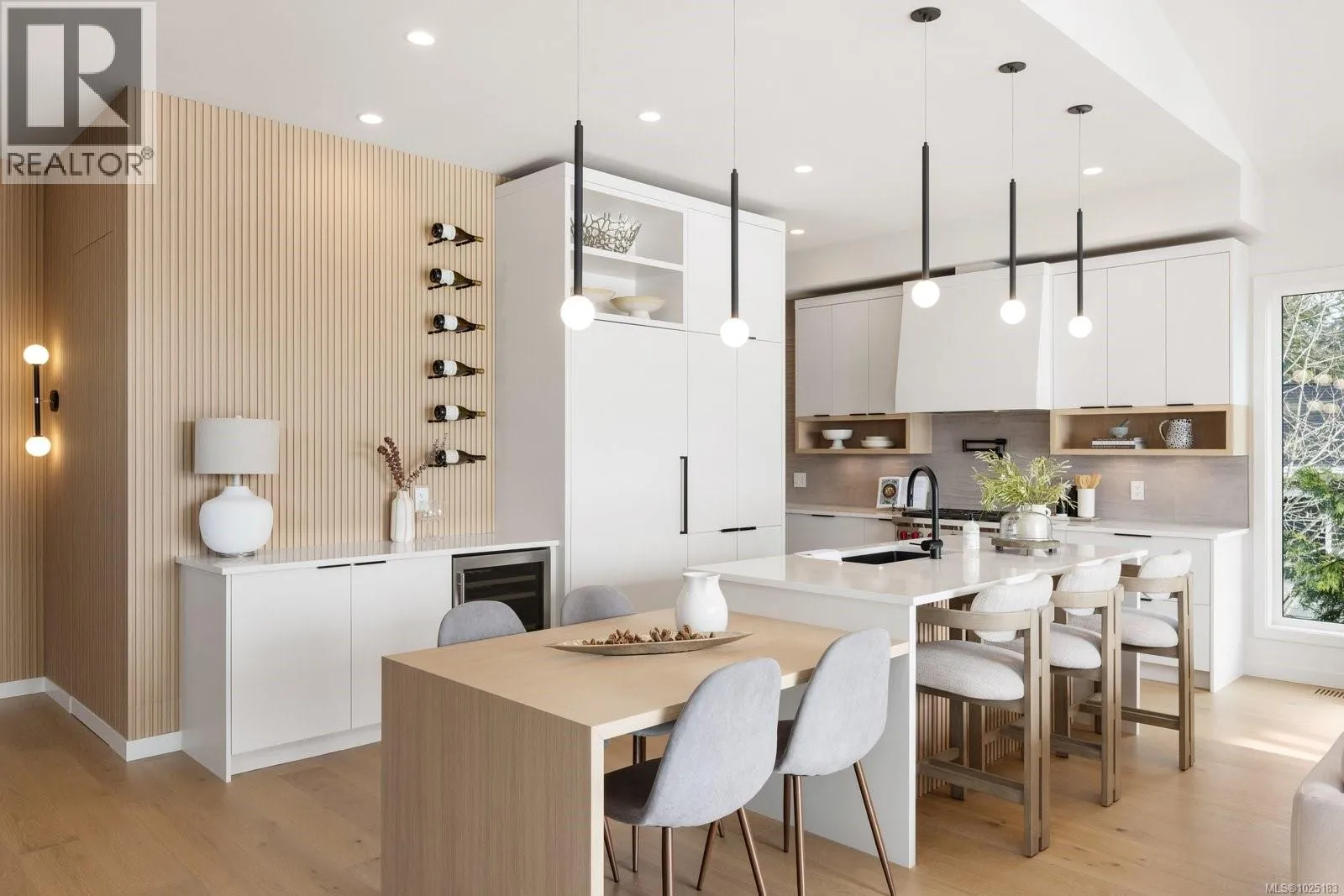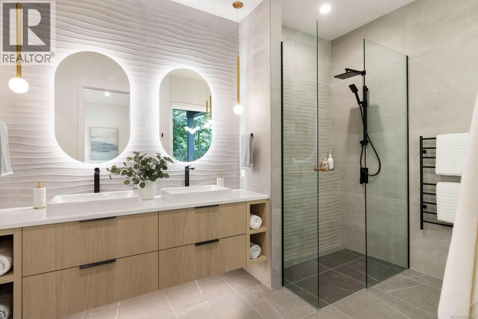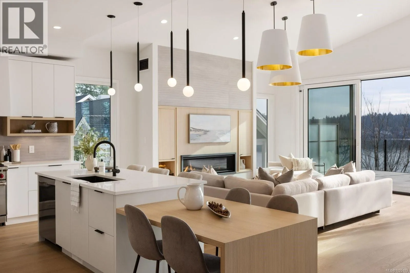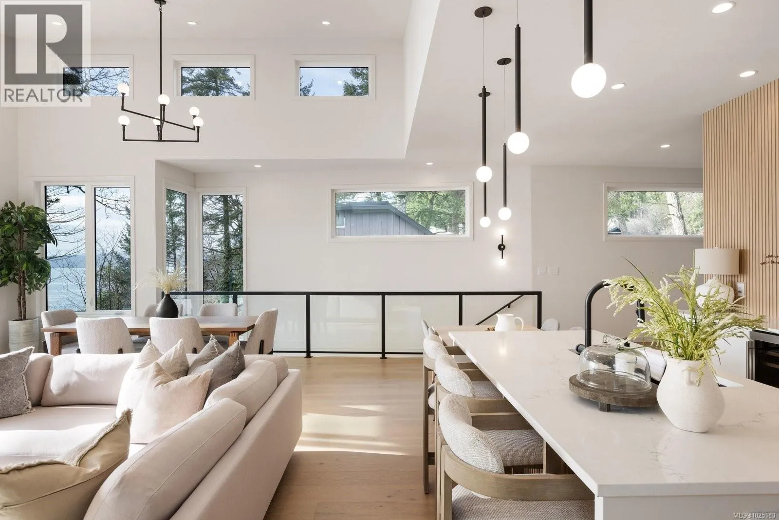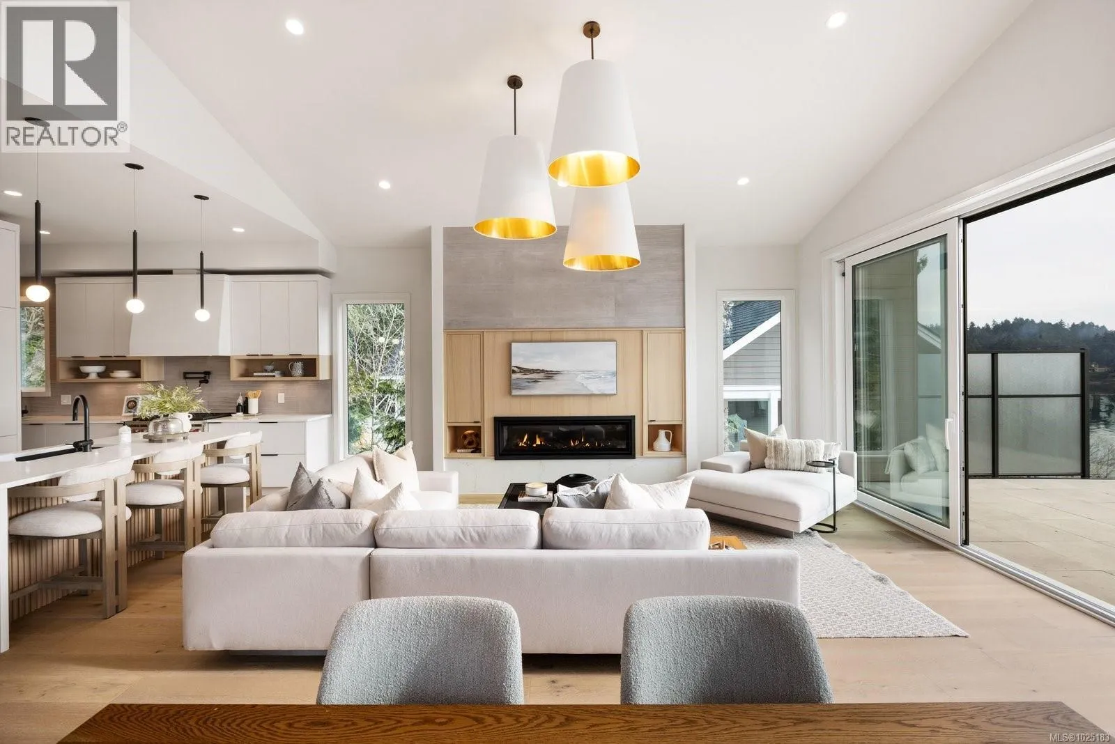 Set on 0.37 acres of southwest-facing waterfront in the coveted Deep Cove neighbourhood of North Saanich, this brand-new contemporary home offers protected ocean views, warm evening sun, and breathtaking sunsets. Built by Villamar Homes, the 3,151 sq.ft. residence blends refined modern design with natural coastal textures. The open-concept main level features soaring 10ââ16â ceilings, oversized sliding doors, and seamless indoor-outdoor living to a 400+ sq.ft. oceanfront sundeck. The primary bedroom is conveniently located on the main floor with a private courtyard and spa-inspired ensuite. A gourmet kitchen with premium appliances anchors the living space, ideal for entertaining. The lower level offers 10â ceilings and a flexible layout with potential for a guest or family suite. Enjoy direct beach access for kayaking and paddle boarding, all within an idyllic, walkable seaside community just minutes to local beaches, winery, and café. (id:27476)
