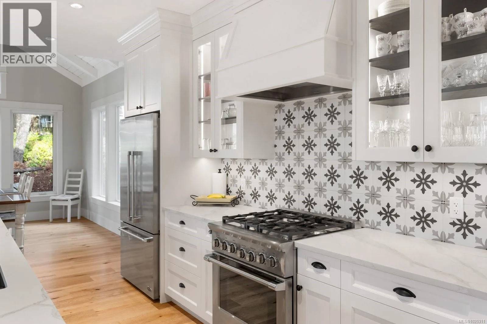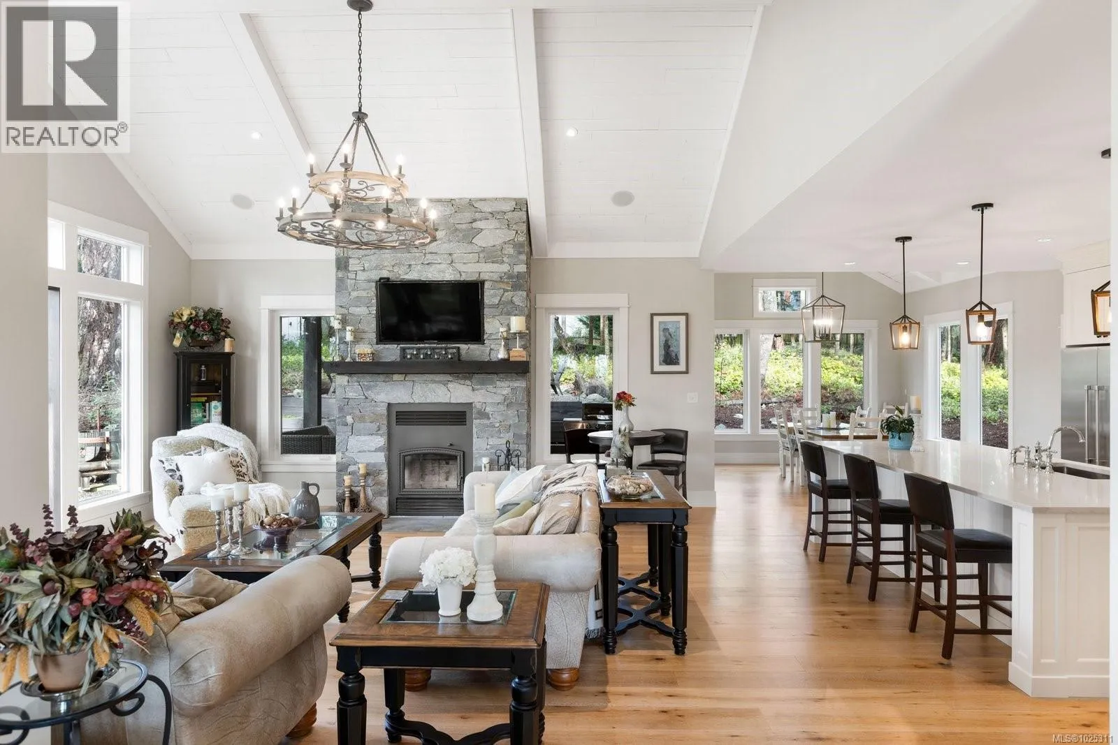 Set on a private, sun-filled 0.84-acre lot in sought-after Deep Cove, this custom home offers over 4,000 sq.ft. of beautifully finished living space just steps from swimmable beaches, schools, parks, and hiking trails. Designed for effortless main-level living, the home features a stunning primary suite with a spacious walk-in closet and spa-inspired ensuite with a freestanding soaker tub and generous shower. The open-concept living area showcases 15â vaulted ceilings, expansive windows, and a seamless flow into the entertainerâs kitchen with walk-in pantry and wet bar. Upstairs offers two additional bedrooms and flexible family space. A self-contained one-bedroom suite provides excellent income or in-law potential. Additional highlights include an oversized triple-car garage with workshop, multiple outdoor patios, and a quiet, private setting. Move-in ready and impeccably maintained, this timeless home offers modern comforts, exceptional privacy, and sun-filled living in a premier North Saanich location. (id:27476)