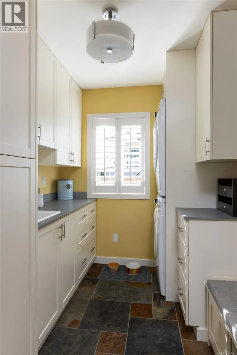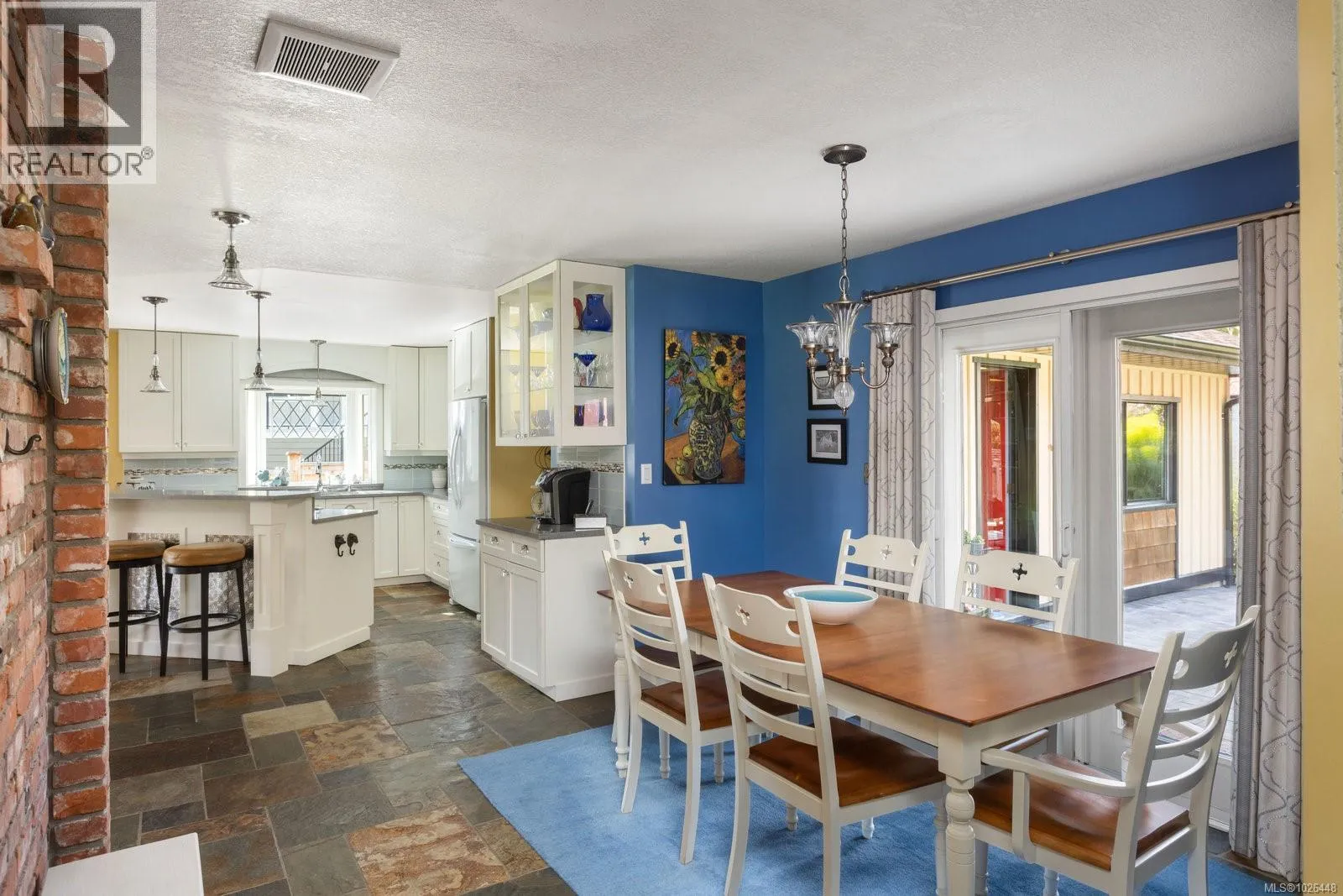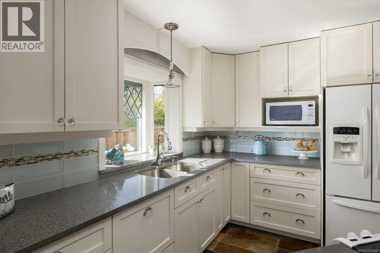 Tucked into the heart of Deep Cove, this exceptional property blends coastal charm with refined living. On over half an acre of sunny, south-facing land, itâs a peaceful retreat just steps from beach access and forested trails, perfectly balancing nature and lifestyle. The 1,504 sq ft rancher is beautifully finished with two elegant bathrooms, one with a free-standing soaker tub, the other with a built-in shower, heated slate floors, hardwood in the main areas, and a cosy propane fireplace. A dedicated office/den offers versatility, while the custom kitchen is a chefâs dream with quartz counters, custom cabinetry, a two-drawer dishwasher and under-mount lighting. French doors open to a private patio, framed with retractable screens for effortless indoor-outdoor flow. These are rooms you are going to love walking into! Other thoughtful touches include custom window coverings, a utility room with built-in cabinetry, and an attached garage with epoxy flooring, bump-out storage, and organised recycling. A beautifully renovated second building offers endless potential - guest suite, studio, or multigenerational living. It features a large bedroom with coffered ceiling and dual closets, an open living area with a pellet stove and storage, a kitchen with French doors, and a modern 3-piece bath. The oversized garage and workshop includes 10â ceilings, utility sink, keyless entry, and epoxy flooring. The yard is immaculately landscaped with raised veggie beds, metal and cedar fencing, arbours, an automated sprinkler system, and charming front and rear patios. Ample parking, a Sani-dump for your RV, and elegant curb lighting complete this rare offering. Every detail of this property speaks of comfort, craftsmanship, and West Coast serenity. Welcome to your coastal sanctuary in Deep Cove! (id:27476)