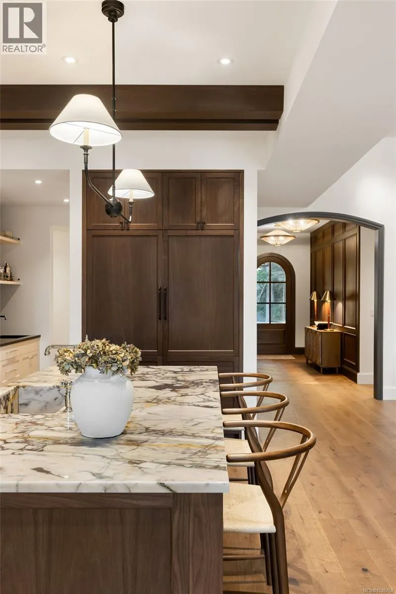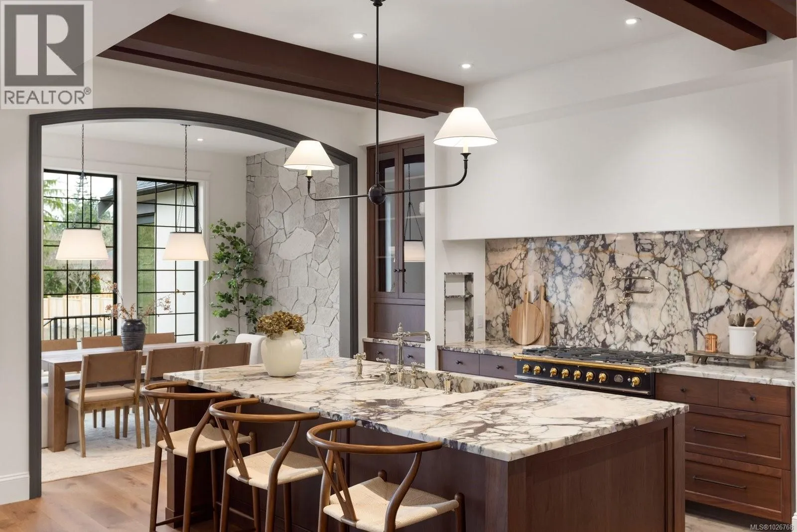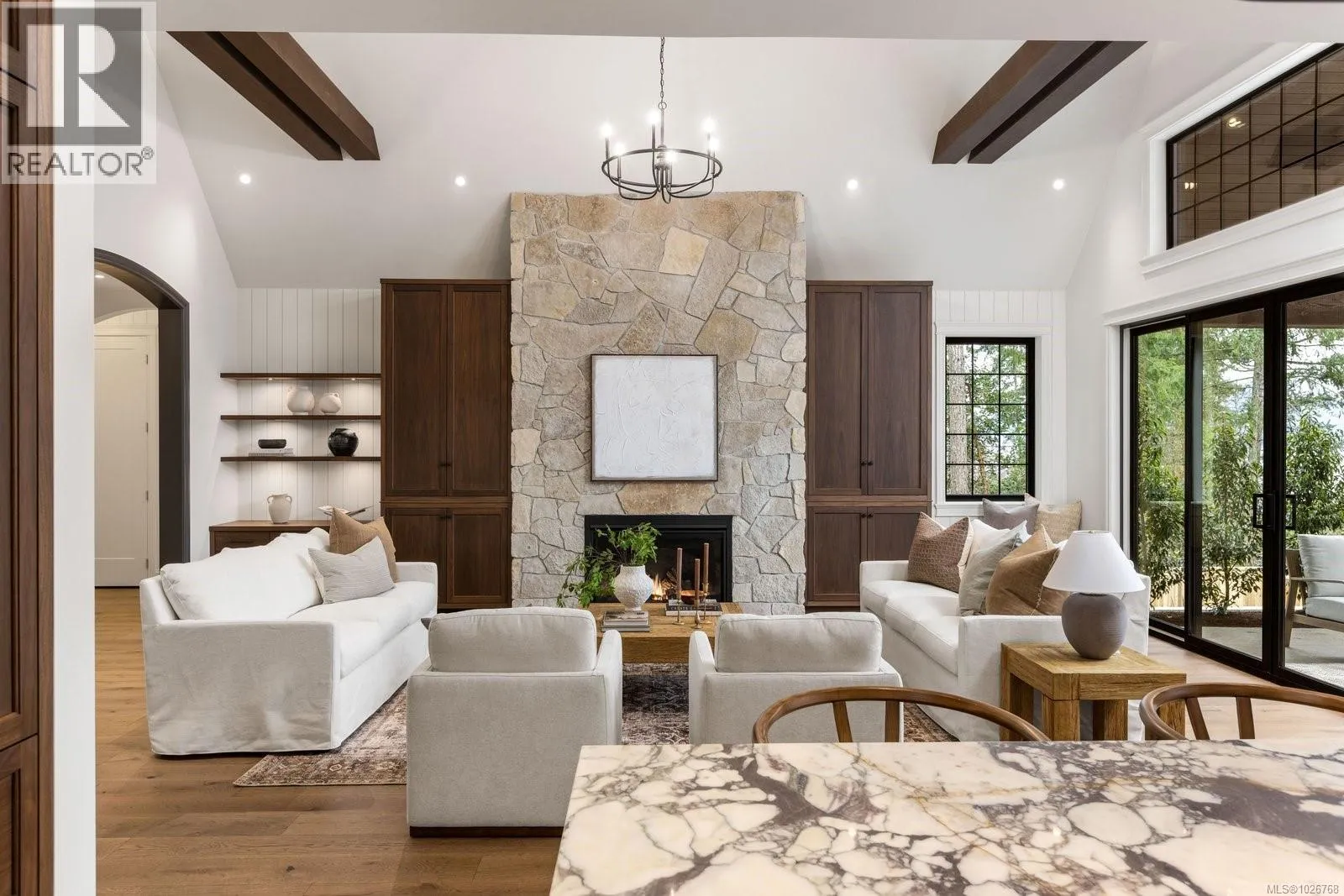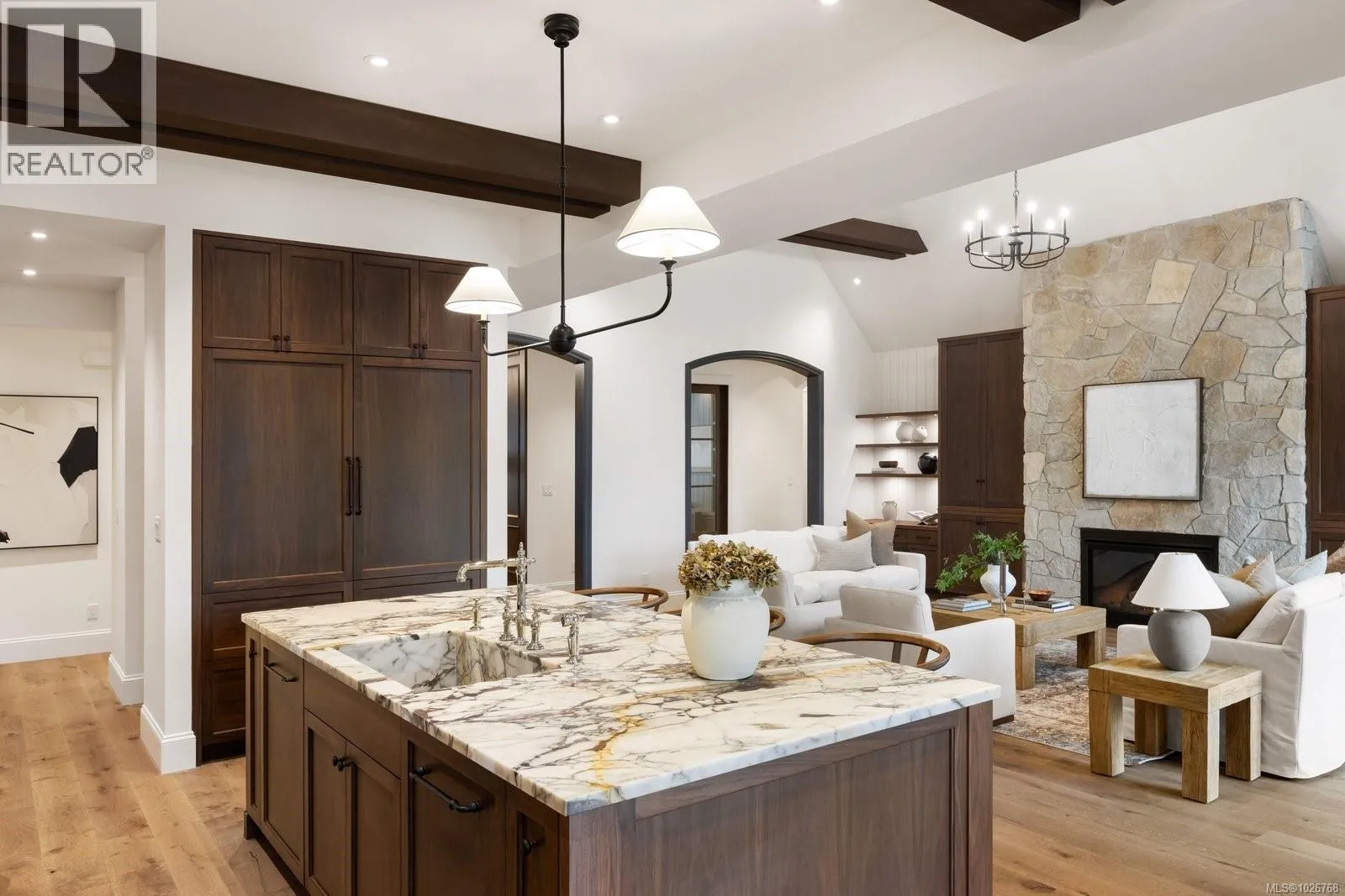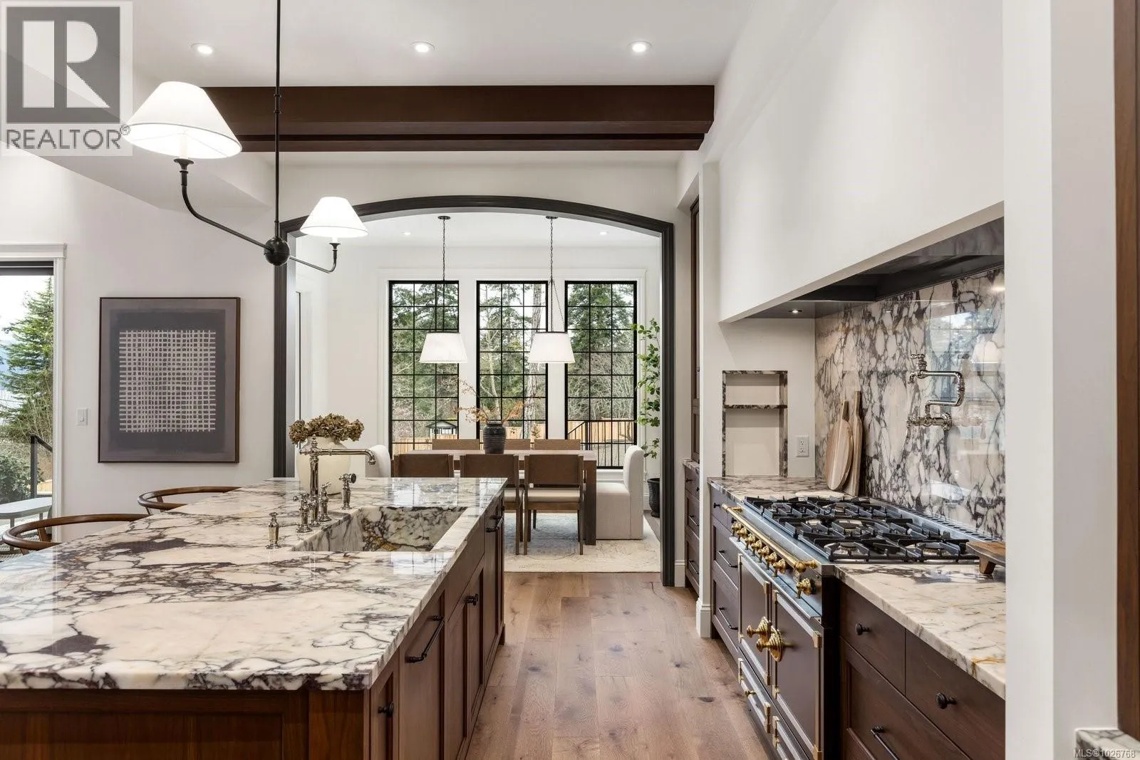 Open Sun 1-3pm. Set on a beautifully landscaped ½ acre corner lot with sweeping ocean views, this exceptional 2,850 sq. ft. residence offers refined single-level living with uncompromising attention to detail. The heart of the home is the stunning 20â x 24â great room, where soaring 17-foot ceilings create a dramatic yet welcoming space. Engineered hardwood floors flow throughout, and thoughtful bedroom separation ensures privacy and comfort. Designed for both everyday living and elevated entertaining, the chefâs kitchen features fully integrated appliances, a Sub-Zero fridge and freezer, and a showstopping La Cornue 5-burner gas range with dual electric ovens. Two dishwashers add convenience, while marble countertops provide timeless elegance. The spa-inspired en suite is a true retreat, complete with heated tile floors, marble countertops, and an elegant clawfoot soaker tub. Quartz countertops continue throughout the remainder of the home, reflecting the cohesive, high-end finishings carried into every space. Additional features include custom Thomas Phillips cabinetry, copper downspouts, a heat pump for efficient year-round comfort, a 615 sq. ft. garage, and fully irrigated landscaping. A rare offering that seamlessly blends coastal beauty, luxury craftsmanship, and effortless one-level living. (id:27476)