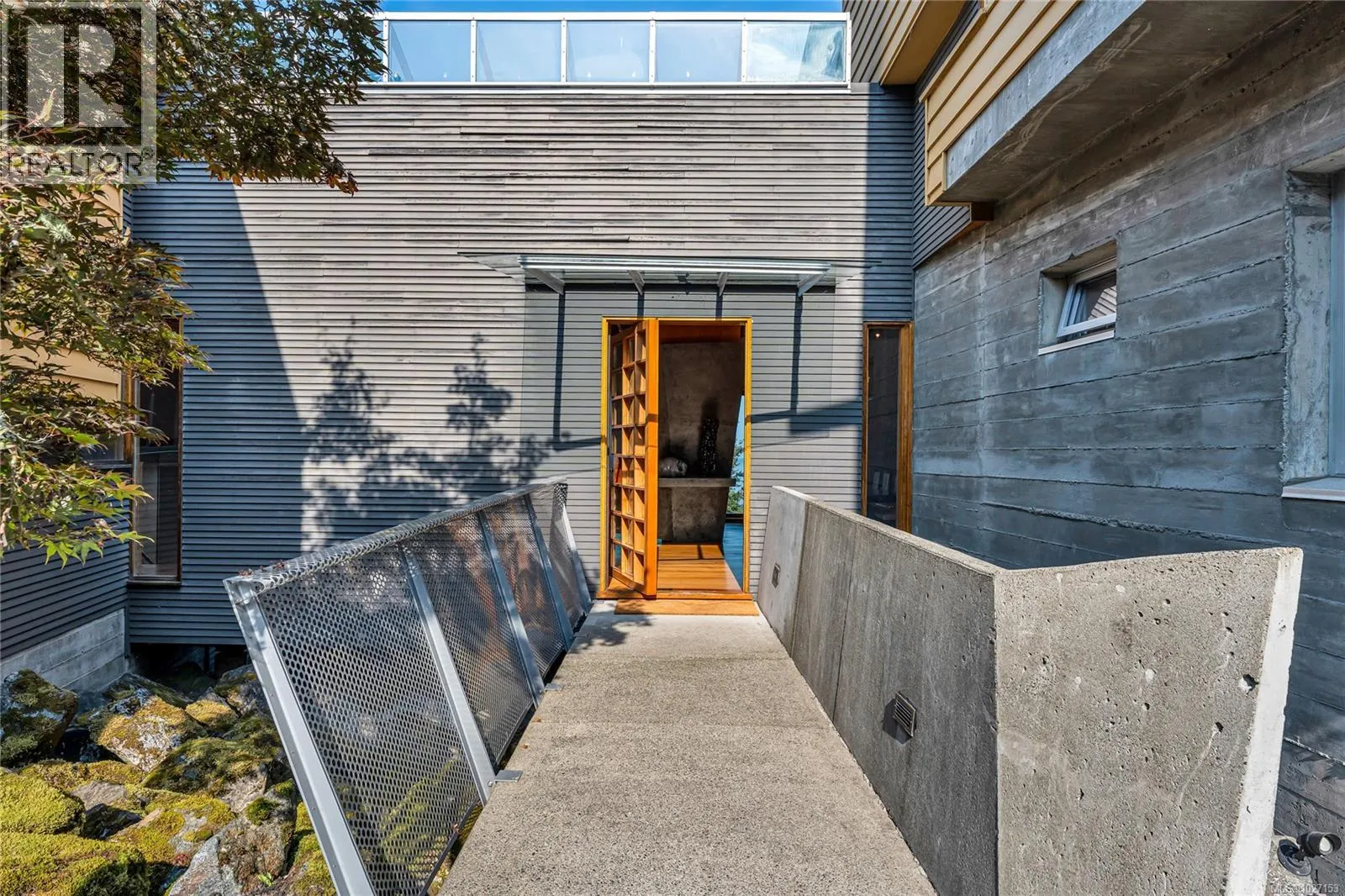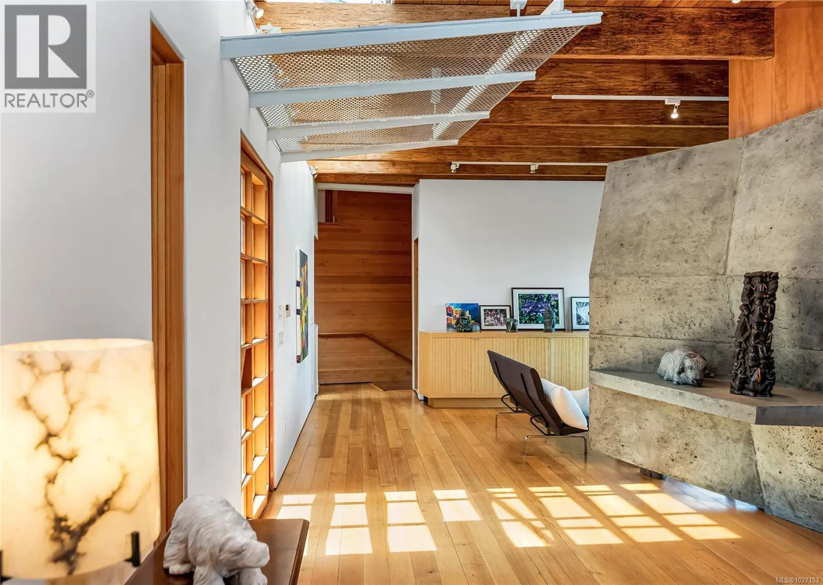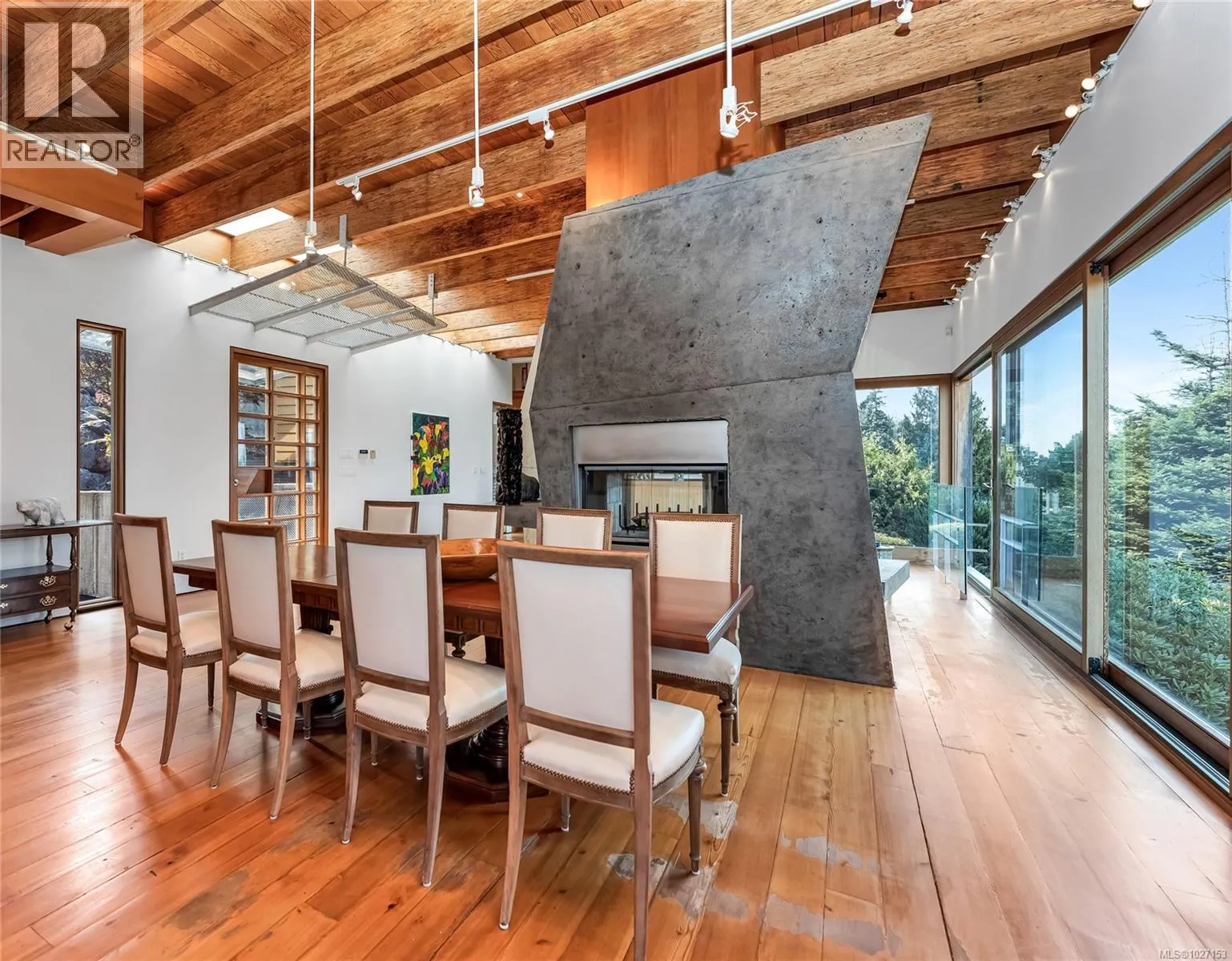Available for the first time since its construction âBoulder House,â is an architectural icon in prestigious Dean Park, North Saanich on Vancouver Island, B.C. Designed by award-winning Daly Genik architects and built by the Città Group, this one-of-a-kind residence is nestled on a .45-acre lot with sweeping 180° Haro Strait views. Crafted to seamlessly integrate with its topography, Boulder House appears to float above its natural landscape, thanks to discreet concrete components, including a multi-functional structural mast. A meandering stairwell through a boulder landscape leads to a entryway with custom 50â cedar-and-glass zero-gravity door. The main living wing features skylit vaulted ceilings with exposed parallam beams, reclaimed fir floors with radiant heat, and a stunning crystal-inspired two-sided fireplace. Custom built-in cabinetry is finished with Colorado ash. Gallery walls are designed for art; a massive sliding and tilting glass door made from Japanese cedar connects the living room and outdoors. The chefâs kitchen boasts sculptured cabinetry, retractable shelves, solid-core doors with ash veneers. A 30â deep Indian granite counter sparkles with blood-red garnet. Premium appliances include a Sub-Zero fridge and induction cooktop. The north wing includes a guest bedroom and a study with an integrated Murphy bed and barn door. The private primary suite features a terrace, walk-in closet, built-in cabinets, and a spa-inspired ensuite. Additional features include a two-car garage, elevator, flex room with private entrance, rooftop deck, and robust concrete and steel construction designed to support future expansion. Featured in The New York Times, Dwell Magazine, Coastal Retreats and other publications, Boulder House is just blocks from John Dean Provincial Park, and a short drive to Victoria International Airport, Swartz Bay ferry terminal, and downtown Victoria. An immersion of tranquility, luxury, and world-class design, Boulder House awaits. (id:27476)