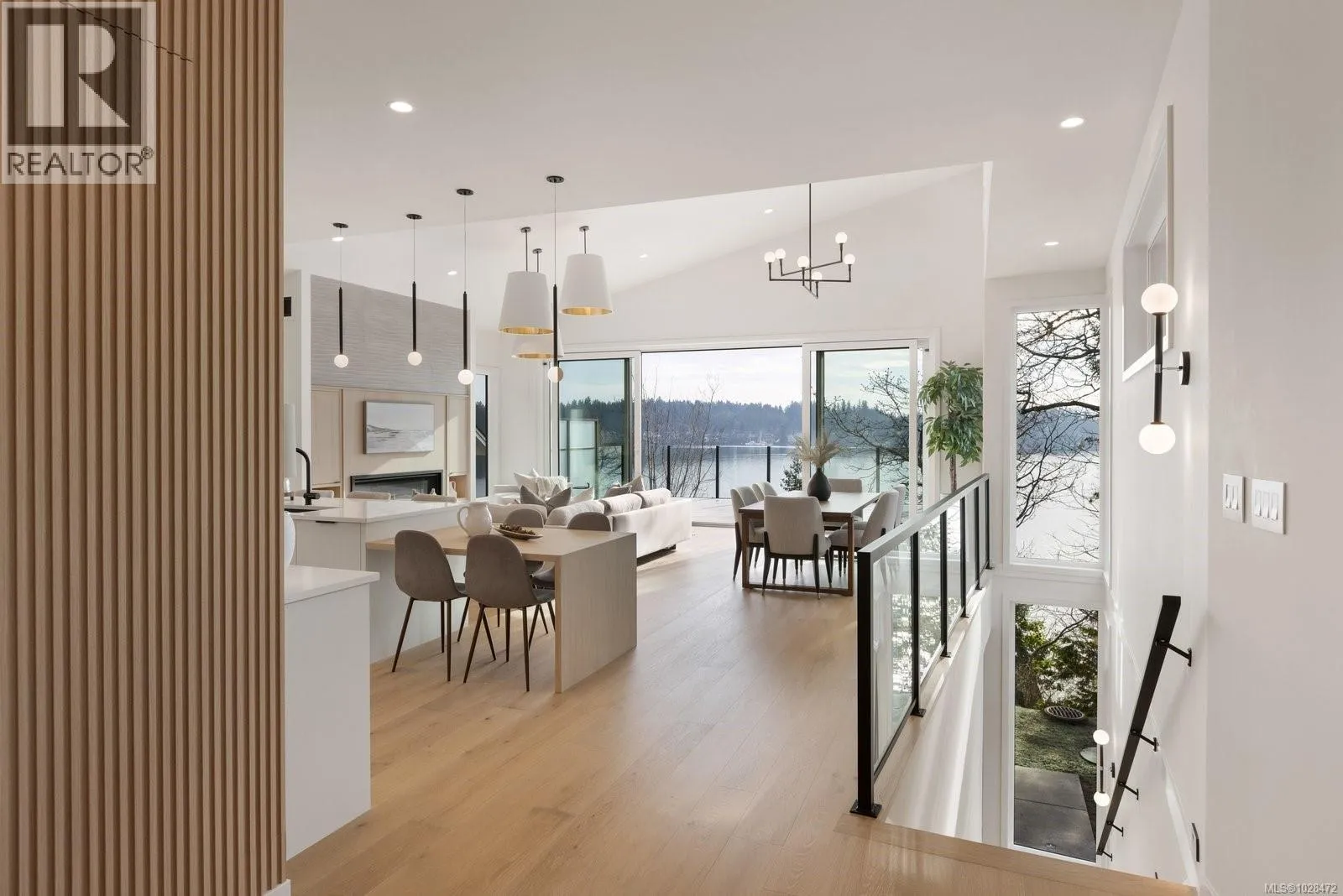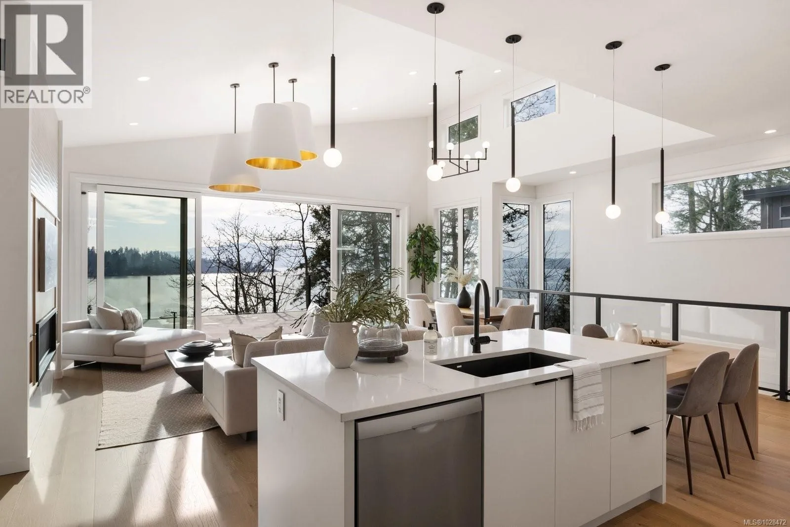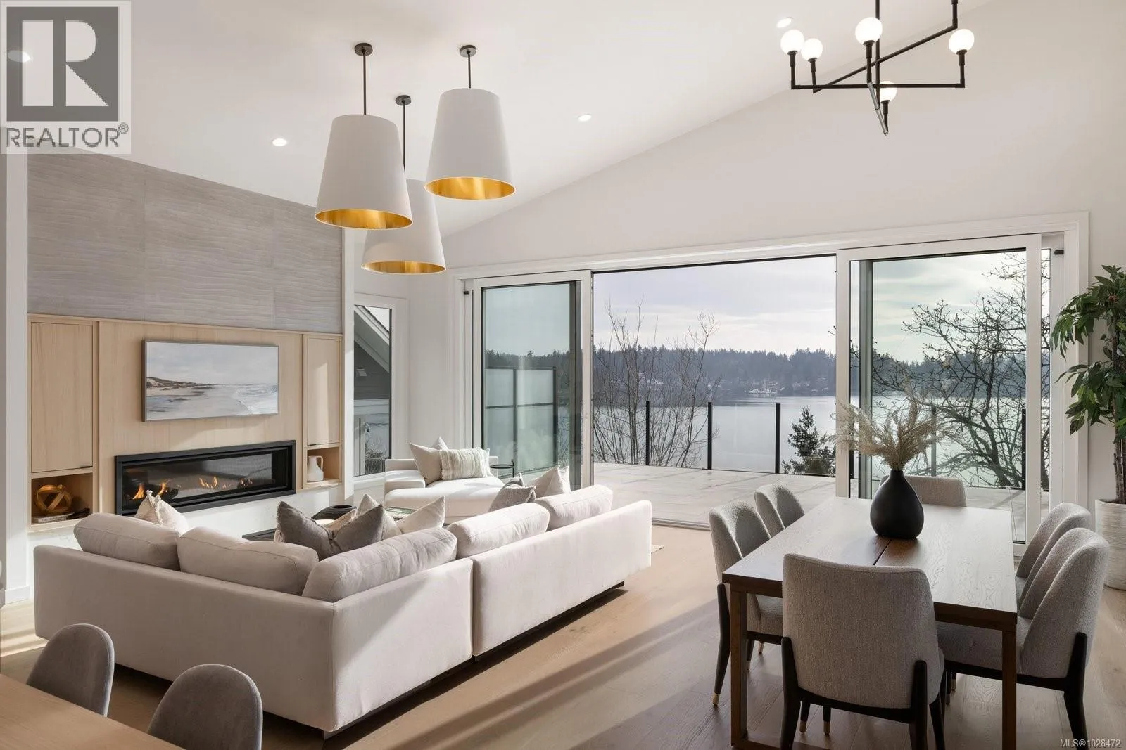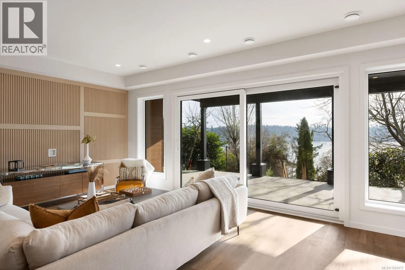 Set on 0.37 acres of southwest-facing waterfront in the coveted Deep Cove neighbourhood of North Saanich, this brand-new contemporary home offers protected ocean views, warm evening sun, and breathtaking sunsets. Built by Villamar Homes, the 3,151 sq.ft. residence blends refined modern design with natural coastal textures. The open-concept main level features soaring 10ââ16â ceilings, oversized sliding doors, and seamless indoor-outdoor living to a 400+ sq.ft. oceanfront sundeck. The primary bedroom is conveniently located on the main floor with a private courtyard and spa-inspired ensuite. A gourmet kitchen with premium appliances anchors the living space, ideal for entertaining. The lower level offers 10â ceilings and a flexible layout with potential for a guest or family suite. Enjoy direct beach access for kayaking and paddle boarding, all within an idyllic, walkable seaside community just minutes to local beaches, winery, and café. (id:27476)