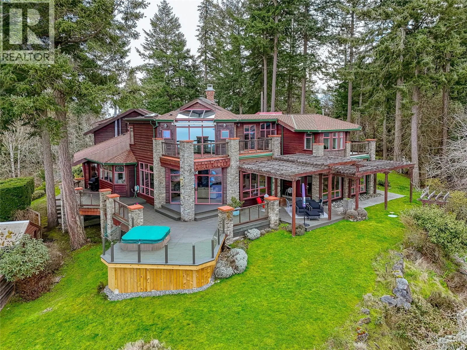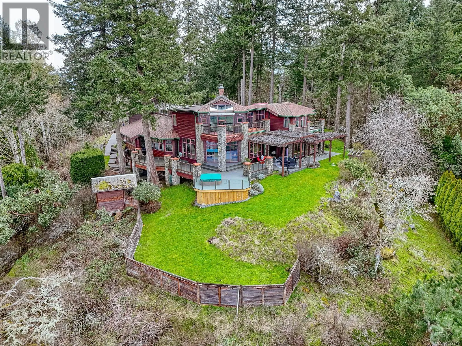 Perched atop Cloake Hill, this architecturally striking home offers breathtaking, unobstructed western views across Satellite Channel to Salt Spring Islandâan ever-changing panorama of ocean and sky. Designed to embrace its remarkable setting, expansive windows, vaulted ceilings, and skylights flood the home with natural light while framing the spectacular outlook from both indoor and outdoor living spaces. In-floor radiant heat and a stunning Tulikivi soapstone fireplace provide warmth and comfort, anchoring the elegant living area. Thoughtfully renovated by Sandy Nygaard, the interior reflects refined craftsmanship and timeless design. The home features four spacious bedrooms, a dedicated office all rooms with inspiring views, generous primary, spa ensuite and a dream walk-in closet. Above the double garage, a studio suite offers flexible space for guests or creative pursuits. Set on nearly an acre, this exceptional property offers rare privacy and a front-row seat to the coastal landscape. (id:27476)