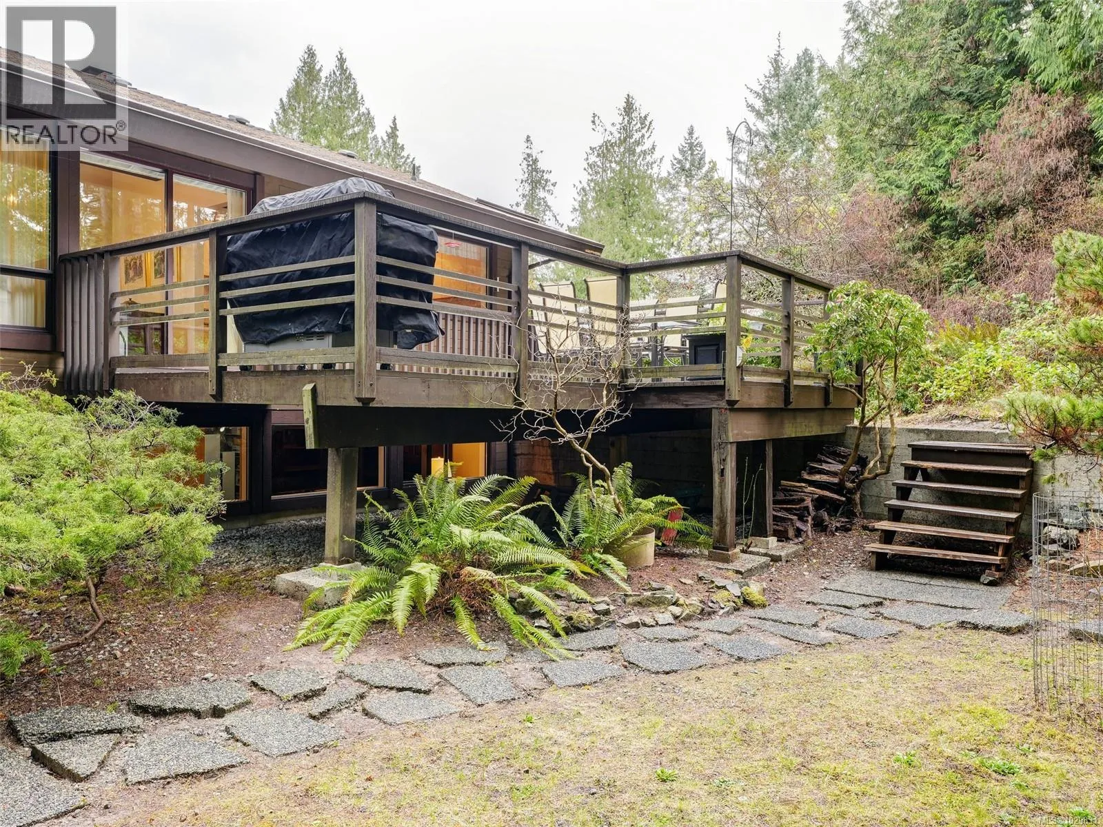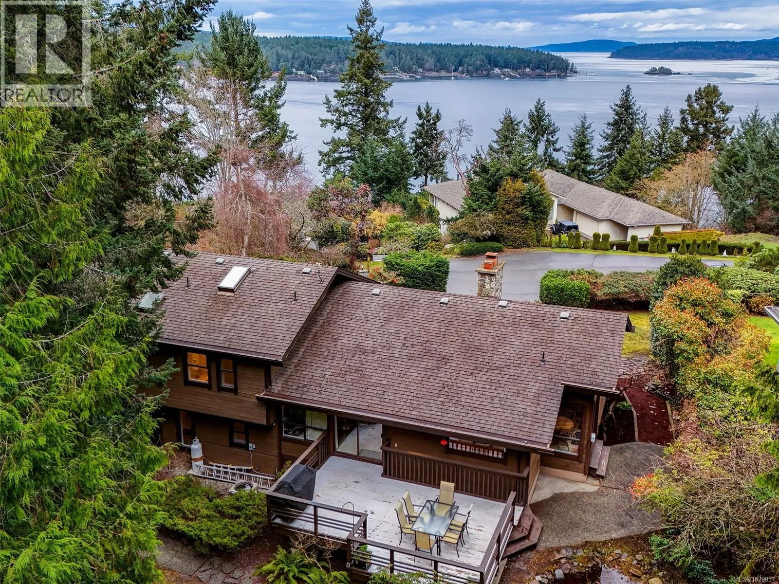 Experience true coastal living from this beautifully maintained residence, set on a serene half-acre property showcasing captivating ocean views. Thoughtfully designed the home offers a generous, light-filled layout ideal for both everyday comfort & entertaining. The inviting sunken living room & adjoining family room are anchored by a double-sided rock fireplace, creating warmth, character, and a natural gathering place. Expansive windows frame the ever-changing seascape, drawing in abundant natural light & blurring the line between indoors & out. The lower level features a substantial rec room perfect as a home office, gym, or media room. An oversized double garage & 2 sheds provide storage for vehicles & all your gear. Outdoors, unwind among peaceful gardens, a pond, and a generous deck for evening bbq's. Situated in a highly sought-after neighbourhood, this property offers the rare balance of privacy & space. A peaceful coastal retreat, ready to welcome you home. (id:27476)