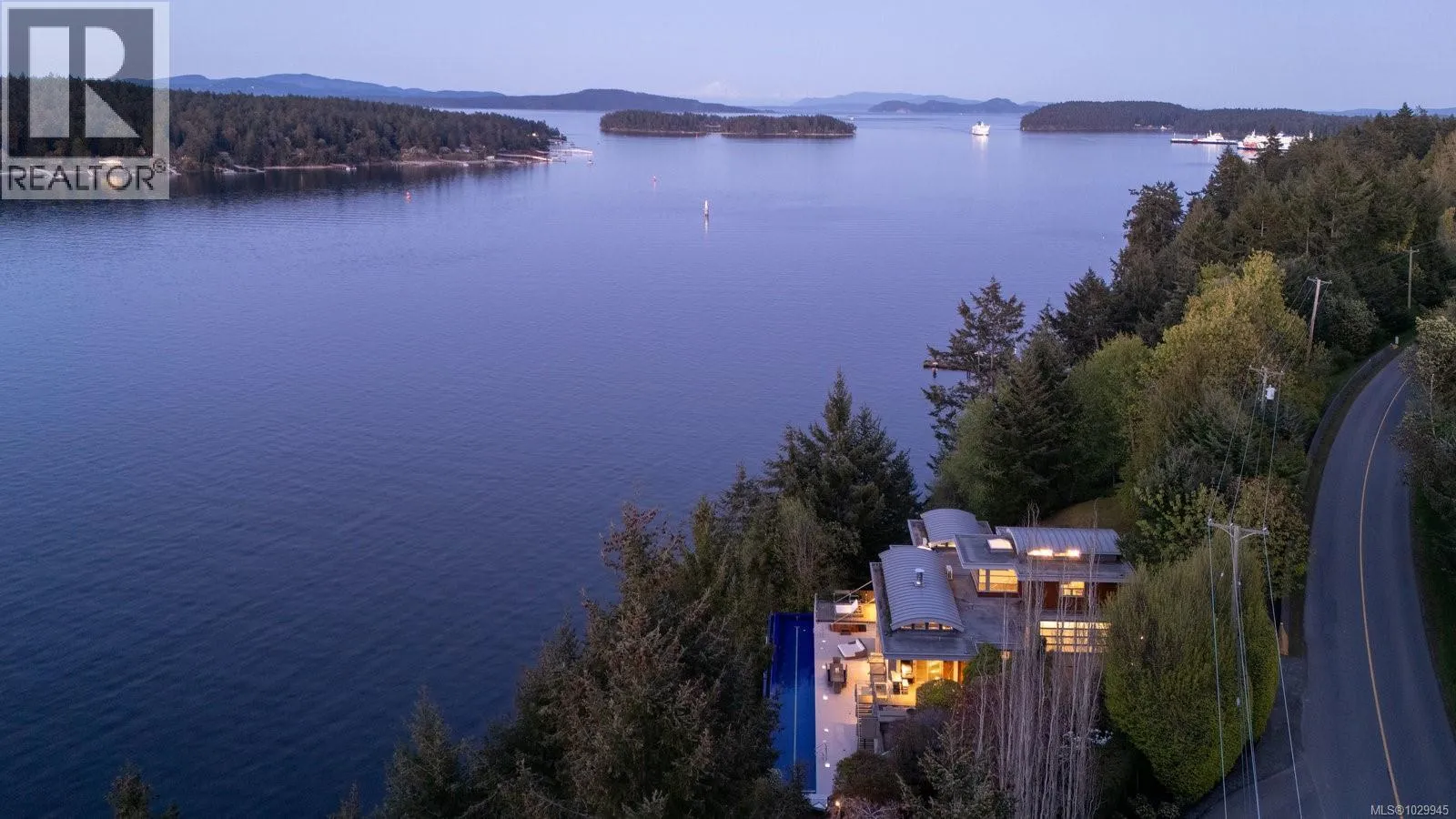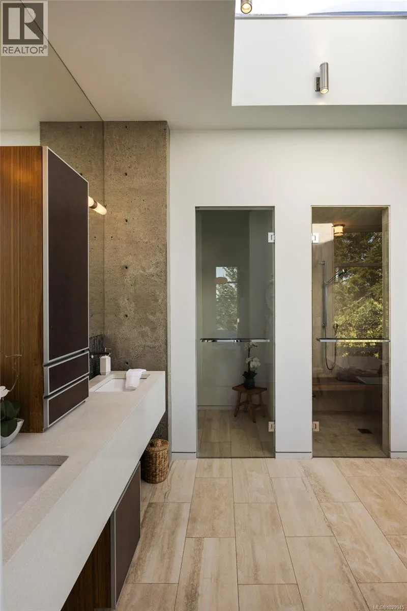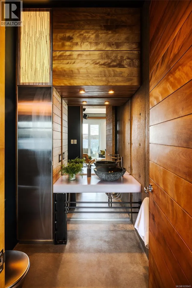 Oceanfront Masterpiece | Malibu Meets Vancouver Island. Oceanfront Masterpiece. Seldom does a home of this extraordinary calibre come available. Perfectly sited on 1.59 private acres with 625' of ocean frontage, the steel & concrete residence offers a rare blend of oceanfront luxury and architectural brilliance. Floor-to-ceiling windows and signature porthole accents frame stunning panoramic views of the ocean, islands, and passing marine activity. A bespoke flybridge extends from the living area, offering front-row views of the 82â infinity lap pool - perfectly aligned to track the sun from sunrises over Mount Baker, to glowing sunsets on the water. Inside, sustainable geothermal heating warms polished concrete floors, beautifully paired with the rich hues of inlaid wood, floating stair rungs, and custom cabinetry. The main floor primary suite is a serene retreat with spa-inspired ensuite and sweeping vistas. The lower level offers guest accommodations, a media room, wine cellar, and a poolside gym with retractable glass doors for seamless indoor-outdoor living. Upstairs, a flexible family room or office provides a quiet escape. Custom kitchen cabinetry has been created from four hundred year old reclaimed wood harvested from the Great Lakes. Complimented by custom stainless steel, granite and a central island topped with 1.5'' Thinkglass. Access a heated outdoor BBQ area with wood burning fireplace and concrete formed dining table. Relax to the sound of flowing water cascading from a man-made stream to a contemporary waterfall enhancing the natural ambiance. Designed by Daniel Boot, this home is a true coastal sanctuary - private and peaceful, yet minutes to shops, dining, and marinas. (id:27476)