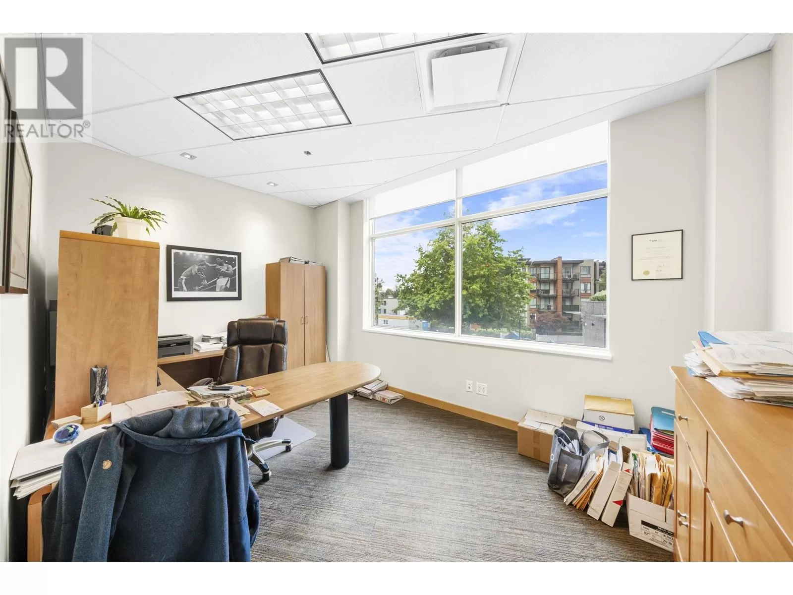 An opportunity to obtain over 2000sf of renovated strata office space. The unit features several improvements including 4 private offices, bullpen, reception, boardroom, kitchen, private balcony and common bathrooms within the complex. This is a corner unit offering plenty of natural light and over 9ft ceilings. Conveniently located just off Marine Drive and Bewicke Ave with access to Lionsgate Bridge, Highway 1 and minutes away from the Seabus. Close to restaurants and local amenities. Comes with private underground parking and plenty of visitor parking. (id:27476)