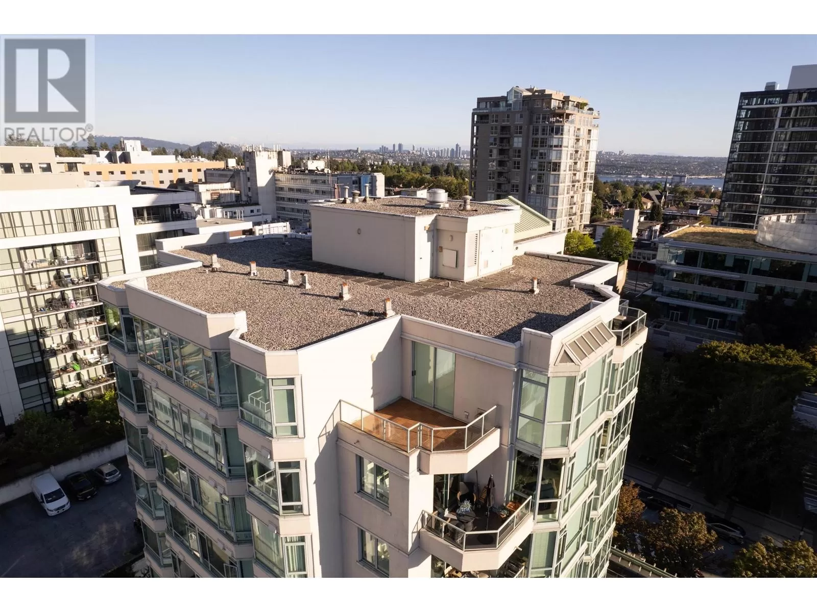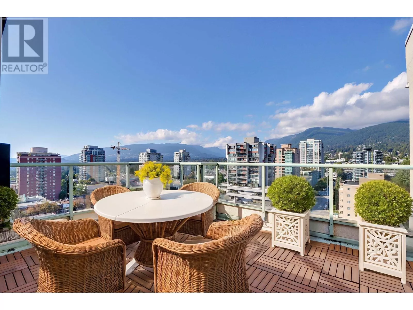 We're thrilled to present this fully renovated & refined penthouse, offering the luxury & comfort of a spacious home in the heart of Central Lonsdale. With nearly 1,200 sqft of living space, this penthouse exudes an expansive, house-like feel, thanks to its generous principal rooms & a dedicated chef's kitchen. Every room boasts stunning, panoramic views, framed by floor-to-ceiling windows that capture the beauty of the city, mountains, & ocean. With only 3 residences on this level, you'll enjoy exclusive privacy along with high ceilings, brand-new H/W floors, light grey cabinetry, & sleek quartz countertops. The kitchen is equipped with premium Miele appliances, while additional touches like refinished window trim & custom closet cabinetry elevate the elegance of this home. The spacious bdrms & hotel-inspired bathrooms offer a retreat-like experience, while the expansive patio provides a perfect spot to soak in the breathtaking city lights. In the vibrant Lonsdale District, convenience is at your doorstep. (id:27476)