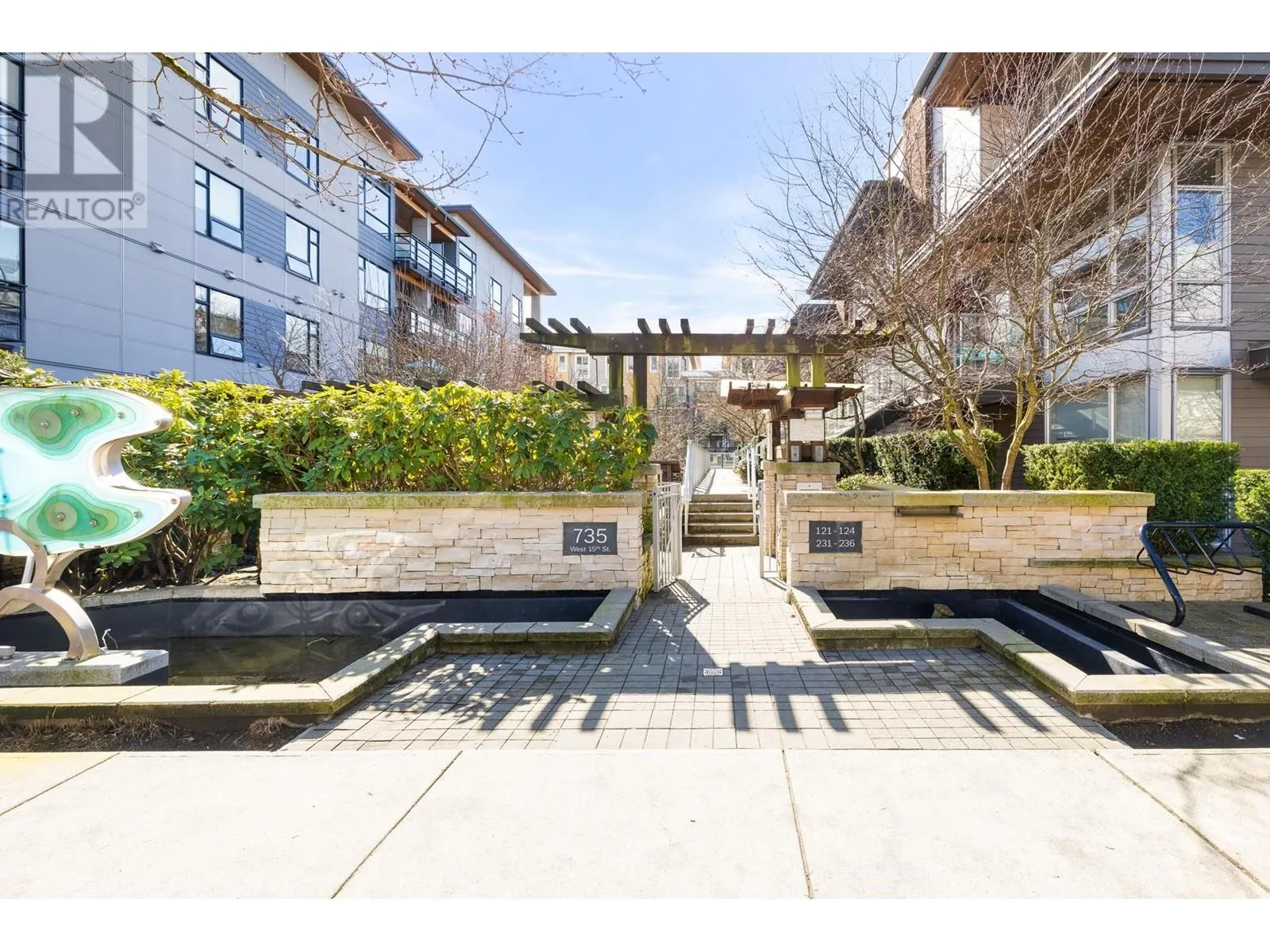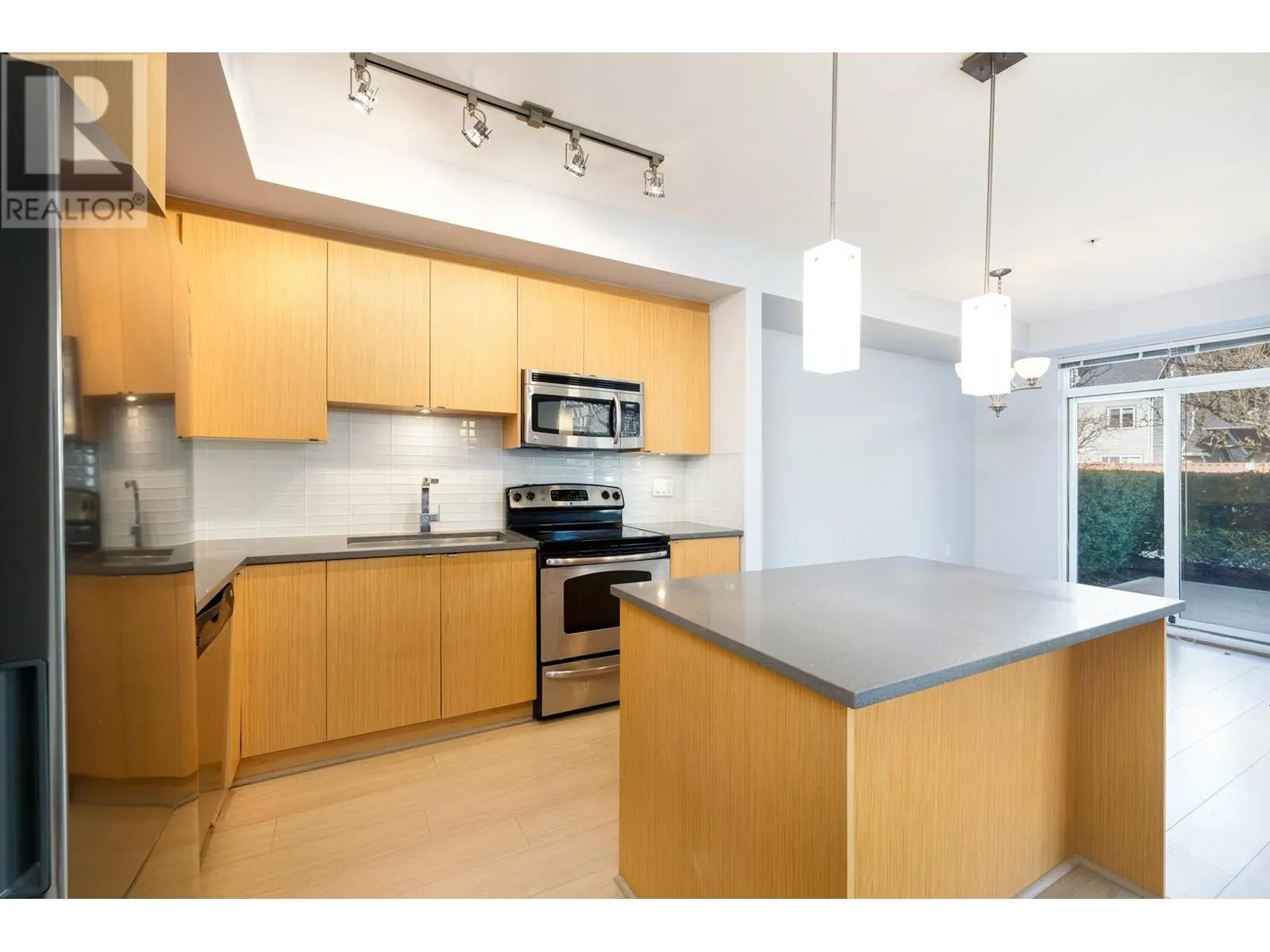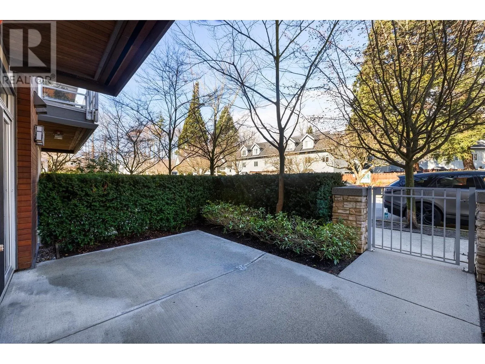 Welcome to this beautifully designed 2-bedroom, 2-bathroom garden-level home offering nearly 1,000 square ft of open-concept living. Enjoy seamless flow from the modern kitchen to the spacious living and dining areas, perfect for entertaining. Step out onto your private 150 square ft walk-out patio, surrounded by greenery - ideal for morning coffee or evening relaxation. The bedrooms are thoughtfully separated for privacy, with the primary featuring an ensuite. Located steps from the vibrant shops and restaurants of Marine Drive and scenic walking trails along Mosquito Creek. This home also includes secure underground parking and a storage locker. With its own private entrance, this unique residence combines the ease of condo living with the feel of a townhouse. A perfect blend of comfort, style, and convenience - don´t miss the opportunity to call this sought-after location home! (id:27476)