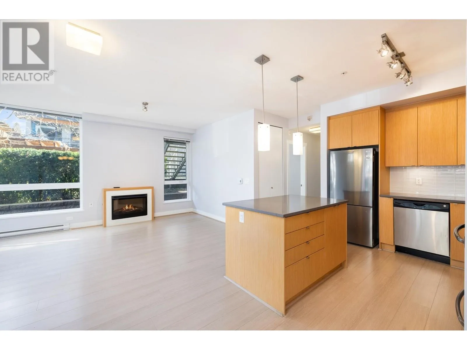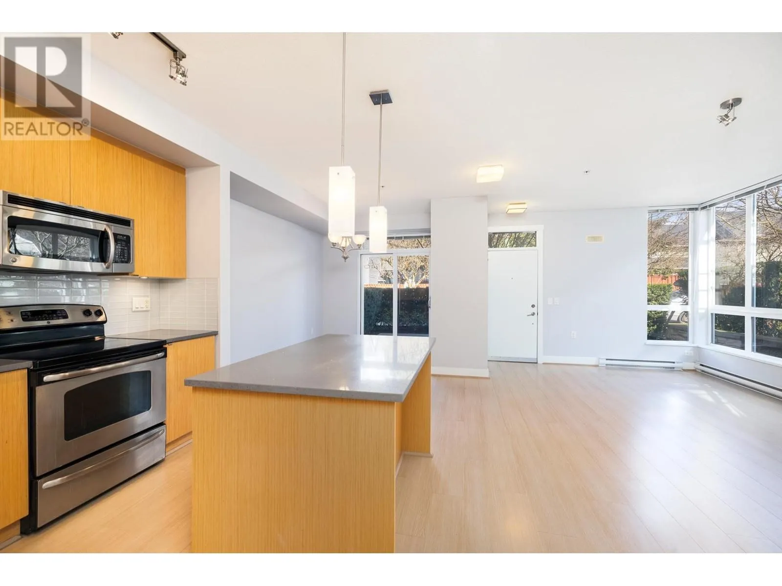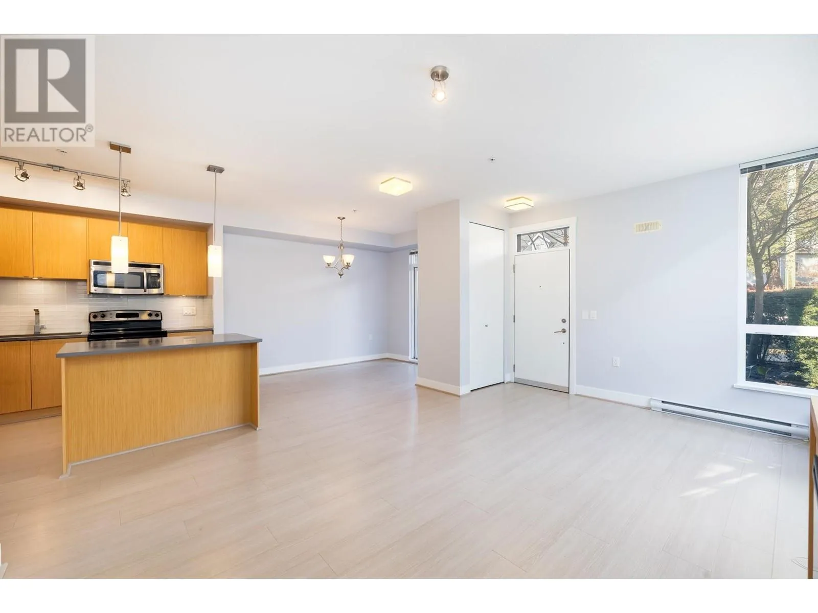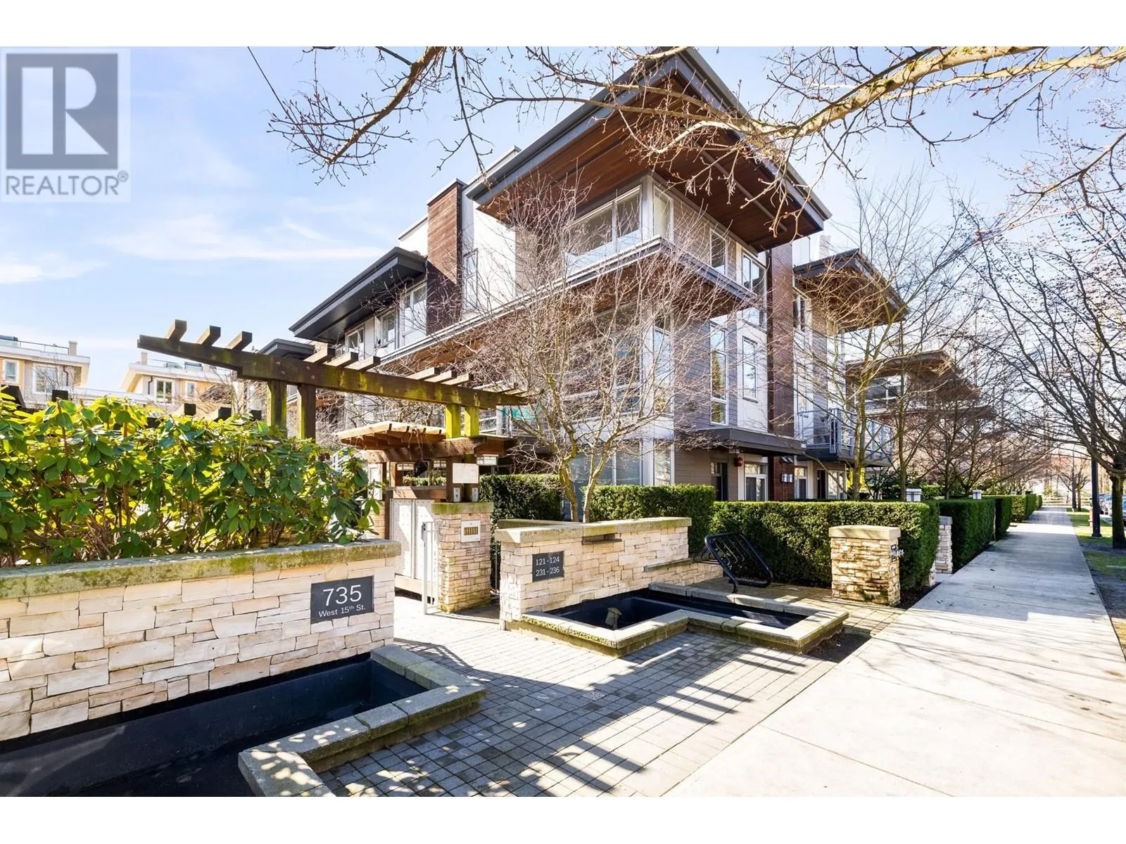 Welcome to this beautifully designed 2-bedroom, 2-bathroom garden-level home offering nearly 1,000 square ft of open-concept living. Enjoy seamless flow from the modern kitchen to the spacious living and dining areas, perfect for entertaining. Step out onto your private 150 square ft walk-out patio, surrounded by greenery - ideal for morning coffee or evening relaxation. The bedrooms are thoughtfully separated for privacy, with the primary featuring an ensuite. Located steps from the vibrant shops and restaurants of Marine Drive and scenic walking trails along Mosquito Creek. This home also includes secure underground parking and a storage locker. With its own private entrance, this unique residence combines the ease of condo living with the feel of a townhouse. A perfect blend of comfort, style, and convenience - don´t miss the opportunity to call this sought-after location home! (id:27476)