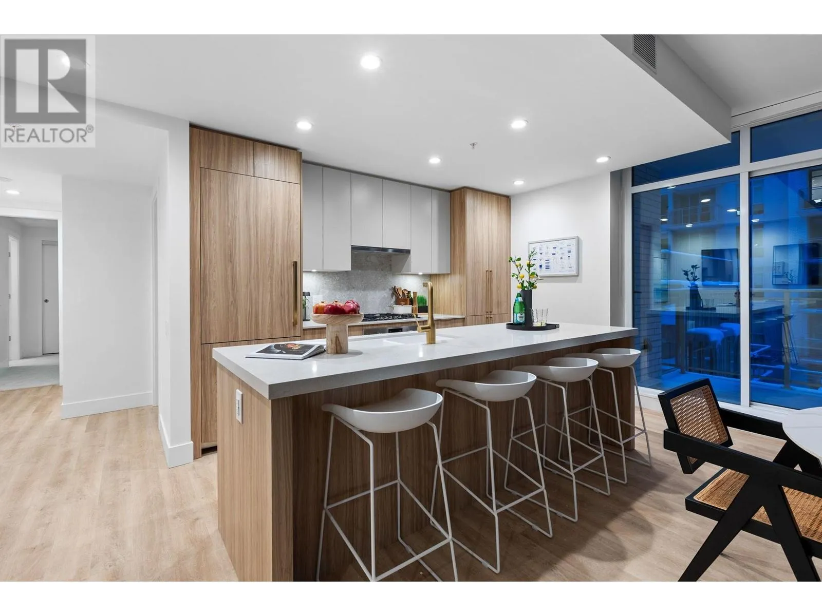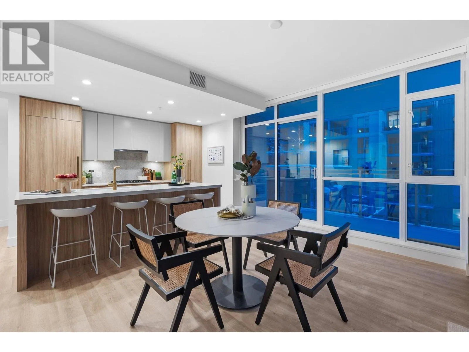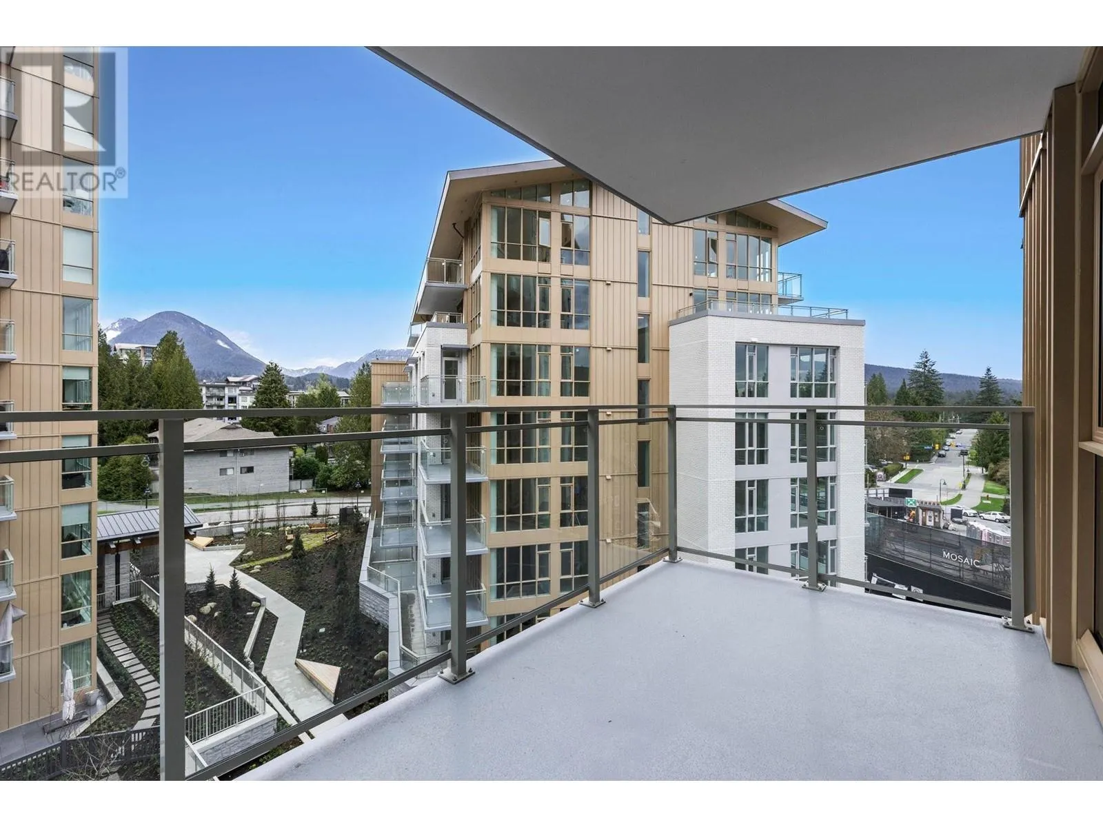 "THE EXPLORER RESIDENCE" in the sought after Parkside At Lynn. Built by TIER A DEVELOPMENT FIRM Mosaic Homes, in conjunction with illustrious Ramsay Worden Architects, together elevating standards of high end skyline living in North Vancouver with their masterful craftsmanship. Coveted E2 plan boasts an approx 1600SF of functional interior, & 365SF of outdoor space consisting of private patio & balcony. Offering direct access to the roof top terrace (fully equipped). Double exposure (N/E) garners incredible MOUNTAIN VISTAS & copious SUNLIGHT coupled with tall 9FT ceilings, large windows, & extravagant proportions (14FT wide living room & two principal BDRMSs) create a sprawling, yet refined atmosphere. Adorned with the most premium finishes, 9FT island, & AC. Amenities: pool,& gym. NO GST. Unit comes with 2 Storage Lockers. (id:27476)