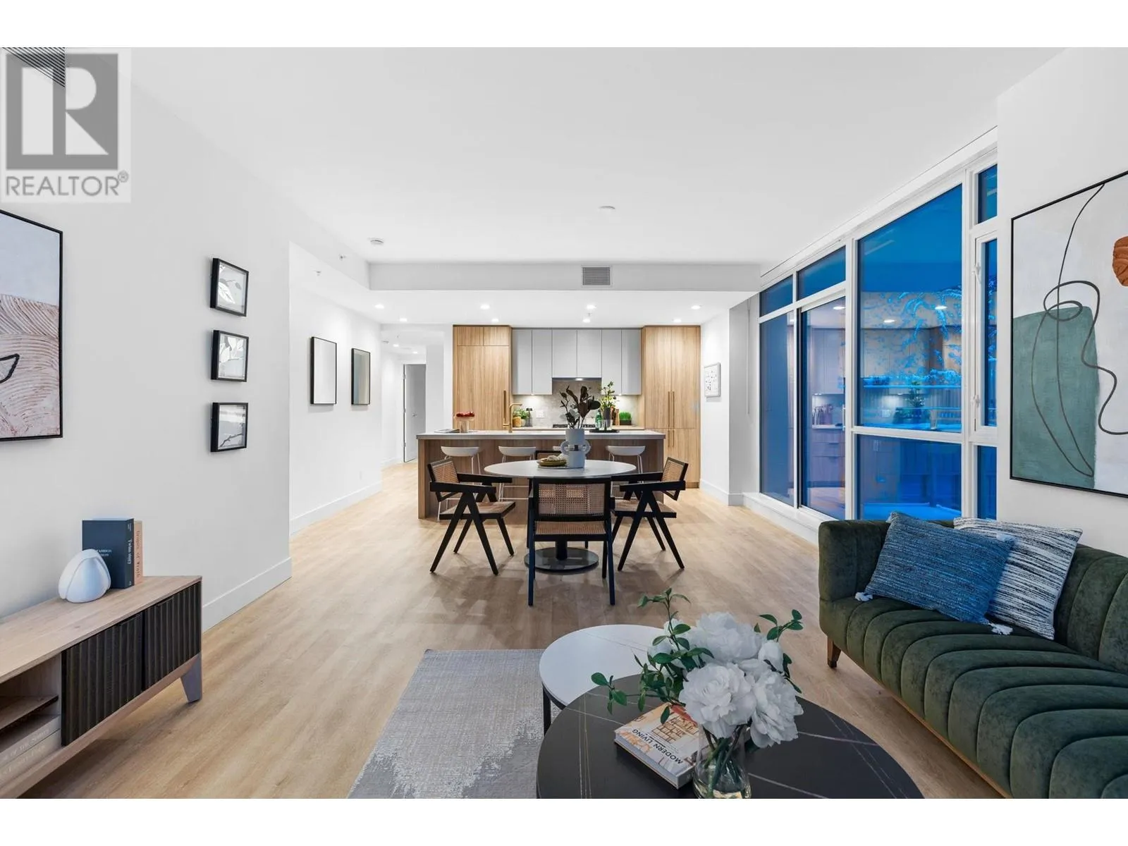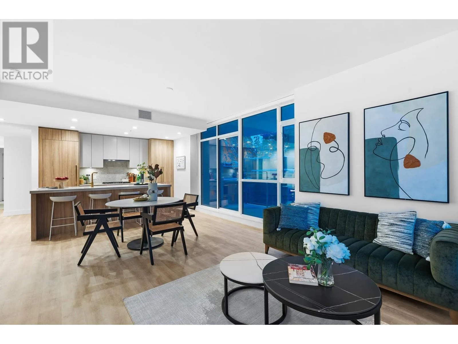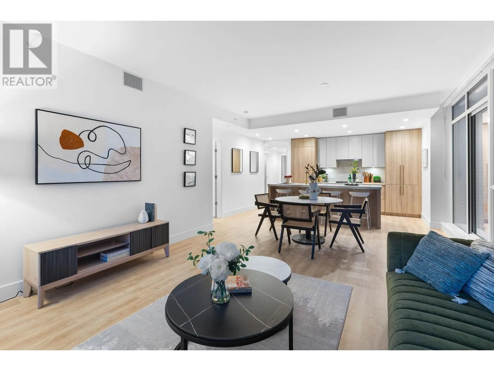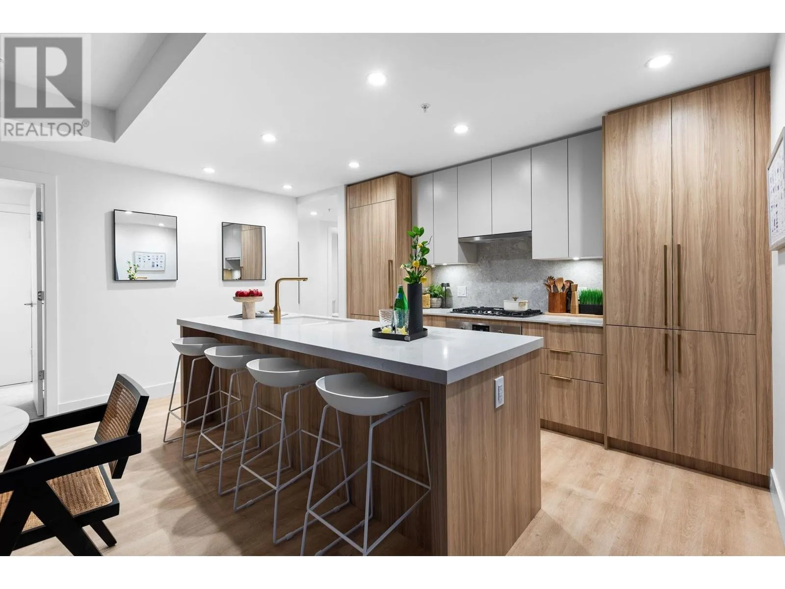 "THE EXPLORER RESIDENCE" in the sought after Parkside At Lynn. Built by TIER A DEVELOPMENT FIRM Mosaic Homes, in conjunction with illustrious Ramsay Worden Architects, together elevating standards of high end skyline living in North Vancouver with their masterful craftsmanship. Coveted E2 plan boasts an approx 1600SF of functional interior, & 365SF of outdoor space consisting of private patio & balcony. Offering direct access to the roof top terrace (fully equipped). Double exposure (N/E) garners incredible MOUNTAIN VISTAS & copious SUNLIGHT coupled with tall 9FT ceilings, large windows, & extravagant proportions (14FT wide living room & two principal BDRMSs) create a sprawling, yet refined atmosphere. Adorned with the most premium finishes, 9FT island, & AC. Amenities: pool,& gym. NO GST. Unit comes with 2 Storage Lockers. (id:27476)