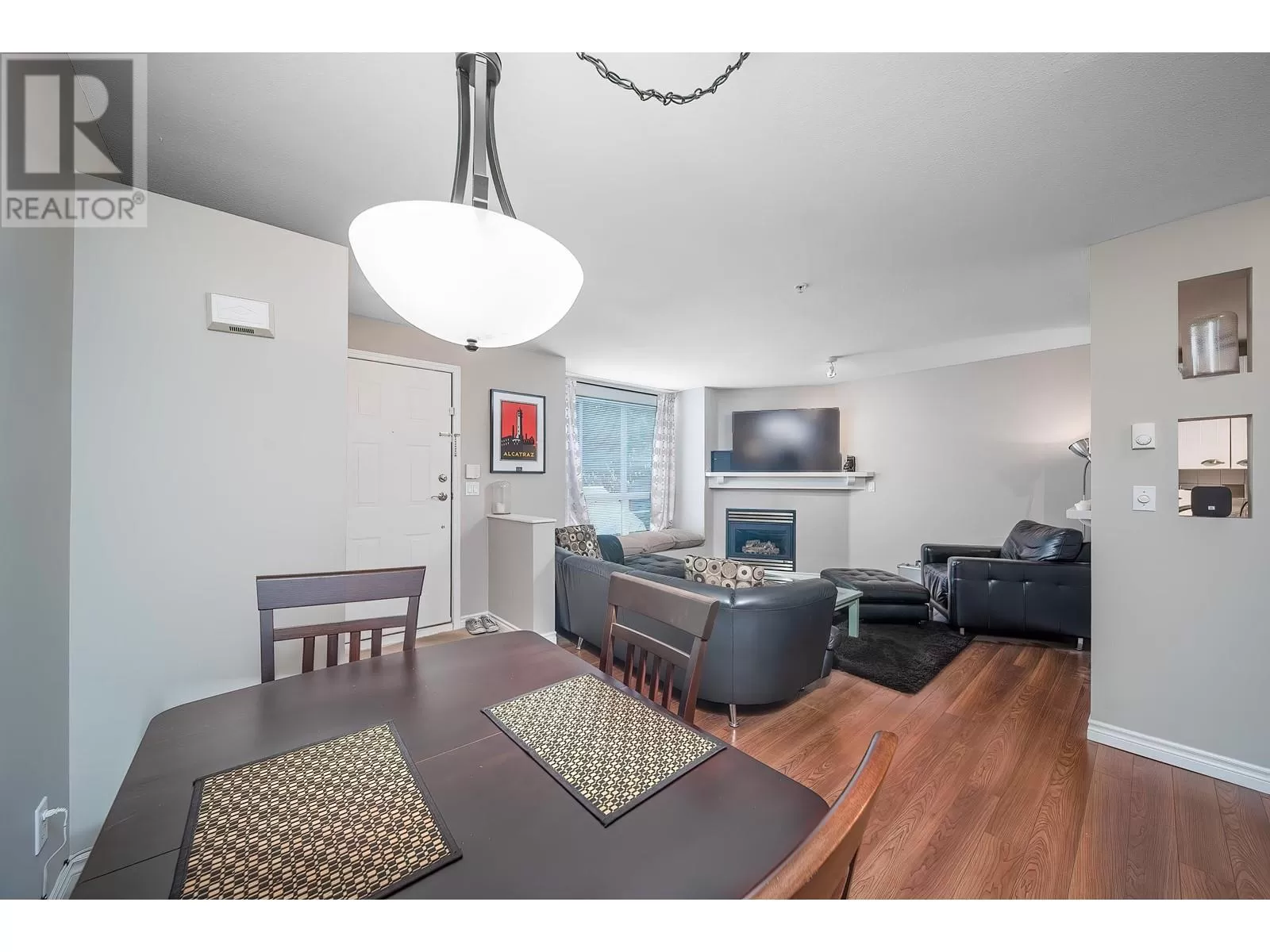 End-unit townhouse in River Rock by Adera. Move-in ready and perfectly located, this two-level home boasts a spacious layout and a stunning rooftop deck with breathtaking mountain views. The main floor features a cozy living room with a gas fireplace, a bright dining area with a charming window bench, a convenient powder room, and a well-appointed kitchen with ample cabinetry and counter space. Upstairs, you'll find two sunlit bedrooms and a full bathroom. Roof was replaced in March 2021. Just steps from Lynn Valley Village Centre and Karen Magnussen Rec Centre, this home also offers easy access to Lynn Canyon Park, where you can explore nature on foot or by bike. (id:27476)