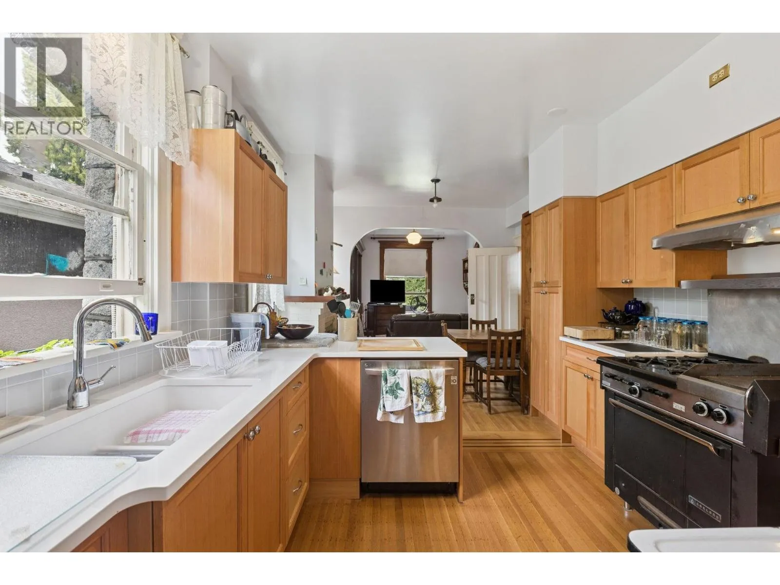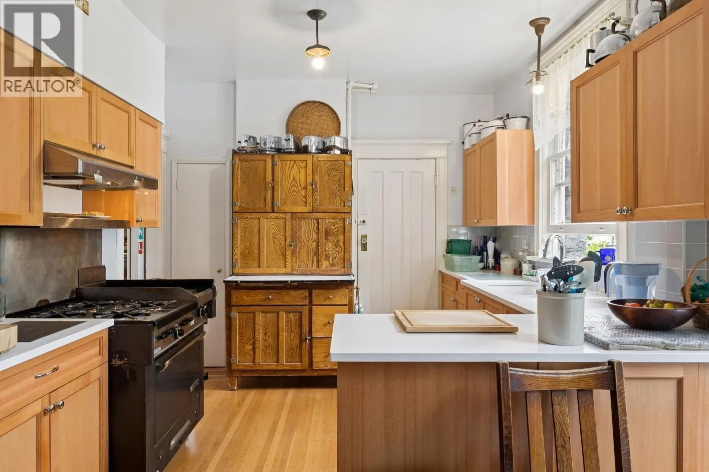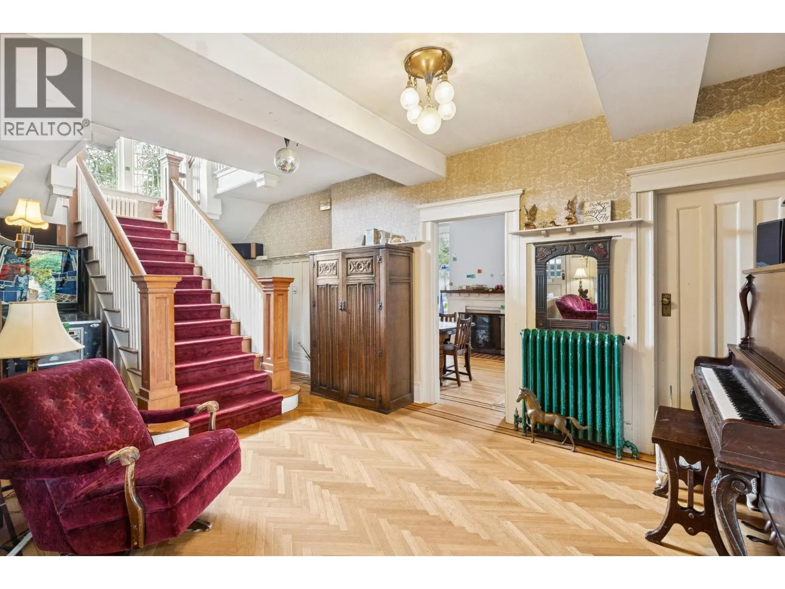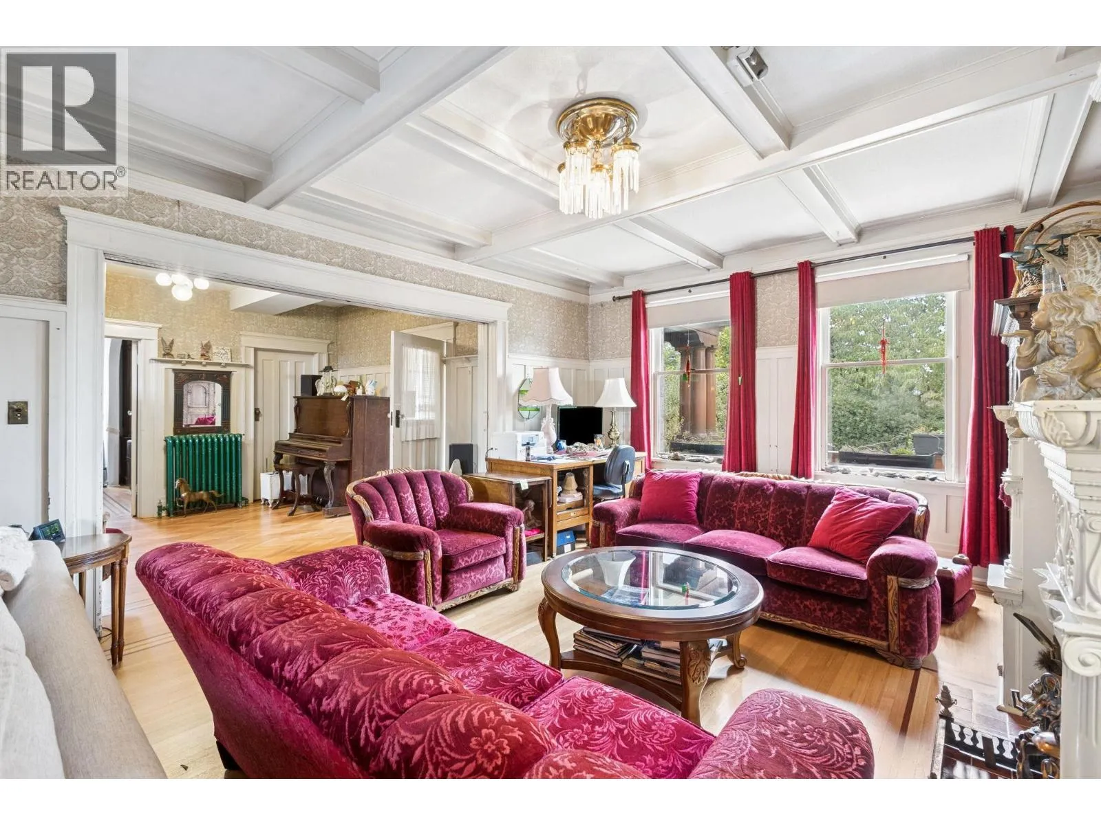 The crown jewel of Grand Boulevard, this iconic Edwardian home was built in 1912 for the Reeve of North Vancouver. Towering and unique, it captivates with soaring ceilings, a grand staircase, leaded glass, and hardwood floors with period inlay. Generous principal rooms, elegant pocket doors, and wood-burning fireplaces whisper stories of a bygone era. With five bedrooms, a rare two-level garden suite in the former servant´s quarters, and a recently updated kitchen and bathroom, the layout offers remarkable flexibility for families or multi-generational living. On the quiet side of Grand Blvd, private, lush gardens envelop the home, creating a quiet retreat just five blocks from vibrant Lonsdale. More than a residence, this is a living piece of North Vancouver´s rich history. (id:27476)