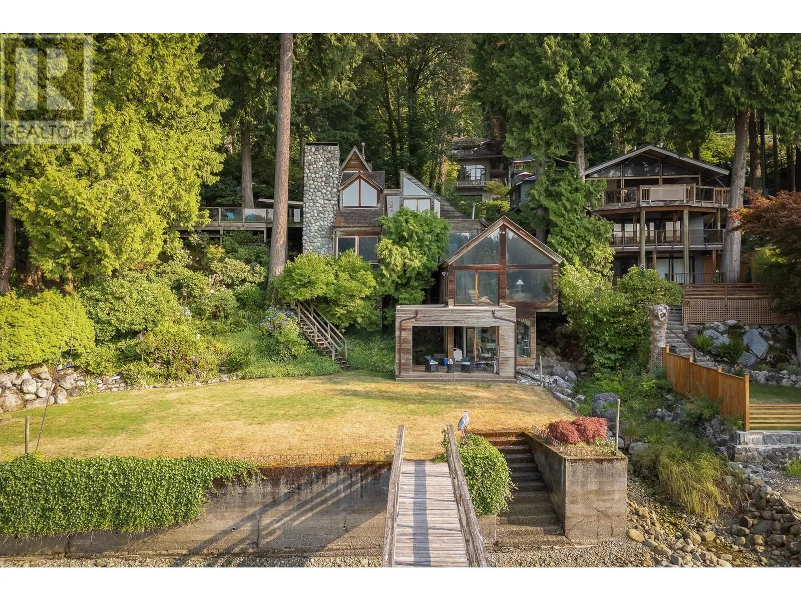 Sitting on the largest waterfront lot on Panorama Drive with a private dock, this unique home was originally a 600sf log cabin built in early 1920's. Purchased in 1966 by the current owner, this historic gem was architecturally rebuilt in the early 1970's and again in 1980 respecting its original character and enhancing the space to maximize the breathtaking water views out over its private yard and dock. This rare property offers the perfect blend of seclusion and convenience just a short walk from the community of Deep Cove. Whether you are looking for a weekend getaway or a year-round residence this home is a true sanctuary, combining family living with a touch of history. An unparalleled waterfront residence with unmatched potential set against the backdrop of stunning views. (id:27476)