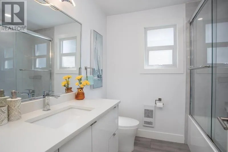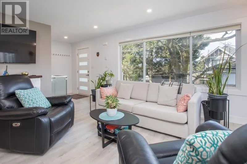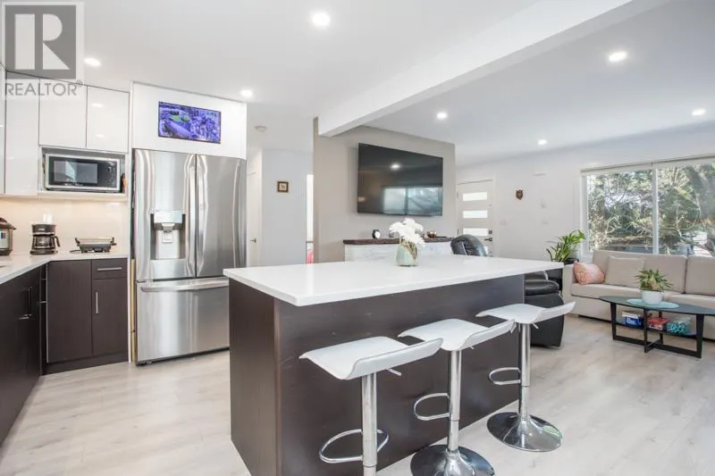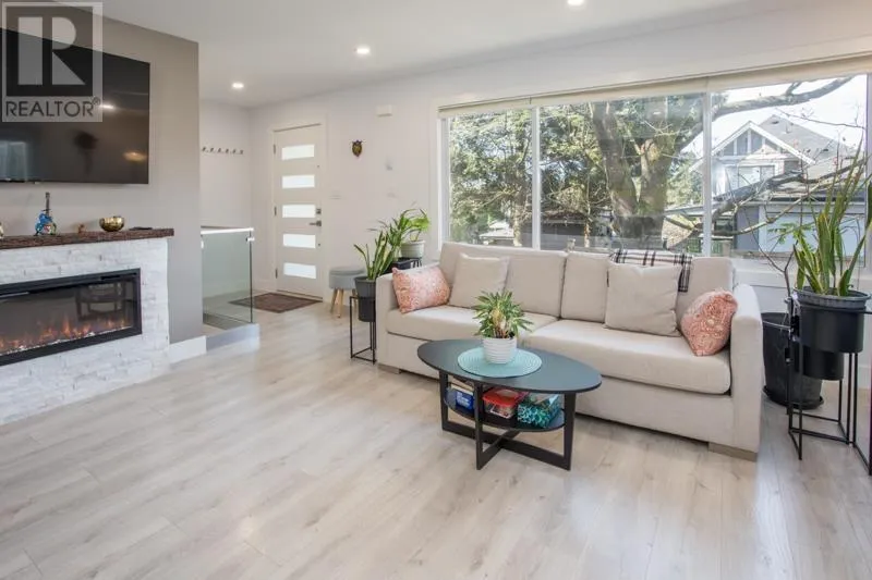 Reimagined in 2022, this home features modern open-concept layout, all-new plumbing (tankless hot water), all new electrical, and baseboard heating. Enjoy stylish laminate flooring, renovated kitchen with flexible island, two full spa-like bathrooms, and a new 30-year roof with leaf guard gutters. New appliances, fixtures, lighting, doors, blinds, paint, and a cozy electric fireplace, and a sleek 276 square ft sunroom (not included in total square footage). The finished basement has suite-potential. Landscaped yard, private patio, fencing to keep the kids and pets safe, covered carport, and home security system complete this turnkey property! Stroll to new Harry Jerome Rec Centre, Lonsdale shops and cafes. Larson Elementary and Carson Graham Secondary. (id:27476)