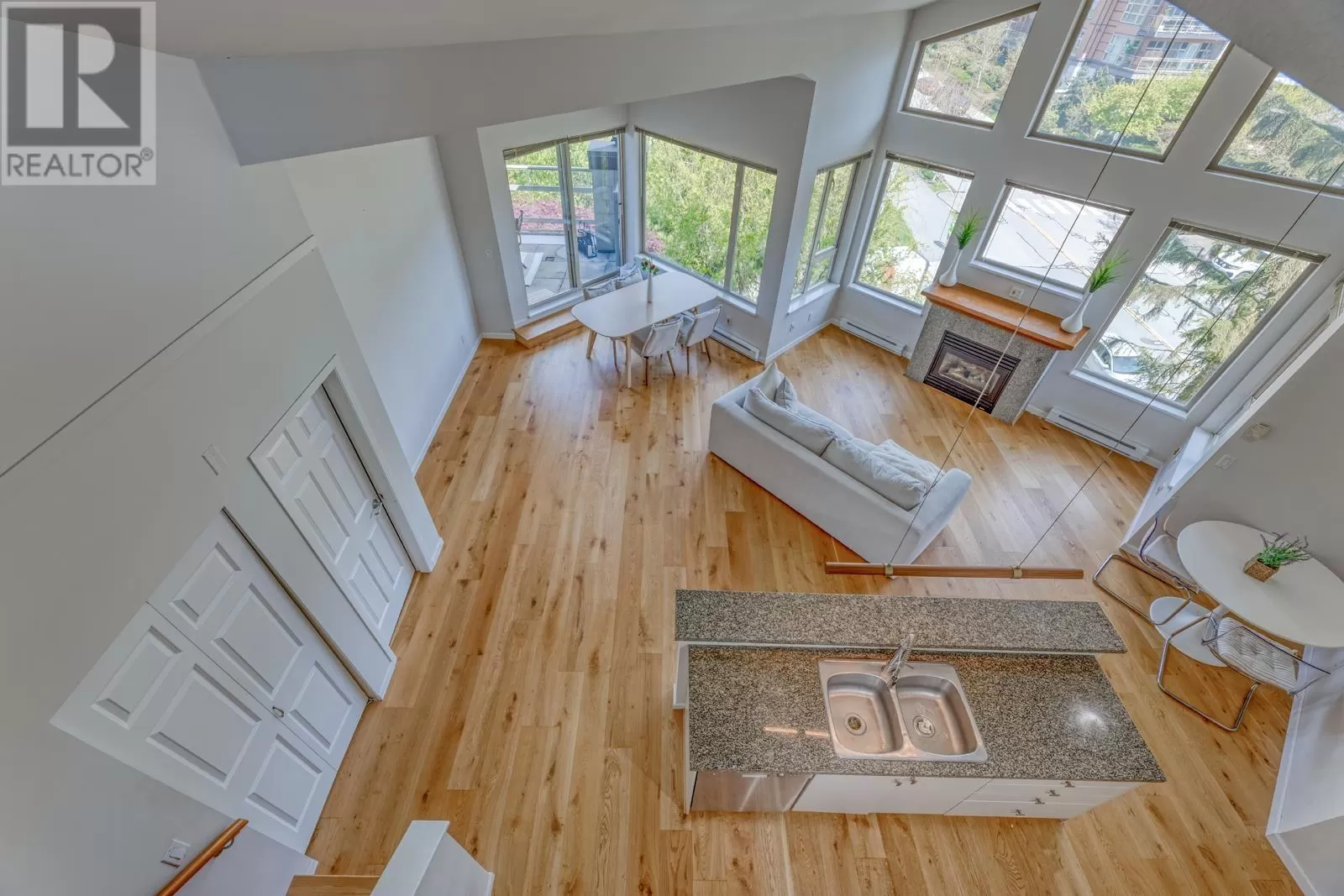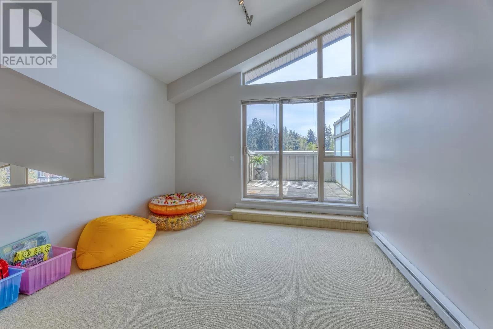 One of a kind! This stunning 2 level penthouse @ Seasons in Raven Woods is a gem! Over 1400 square feet of completely open floor plan for the entertainer, bedrooms on each side allow privacy & an upper level loft for home office, family room or even convert to a 3rd bedroom. 20' vaulted ceilings, views to the serene forest from all rooms. 2 large balconies overlooking greenery, city, mountain, and partially ocean. Unit comes with 2 side by side parking stalls and 1 large locker. Steps to trails & Cates Park. Close to shopping & schools. You will fall in love with this scenery community. Call today for your private showing! (id:27476)