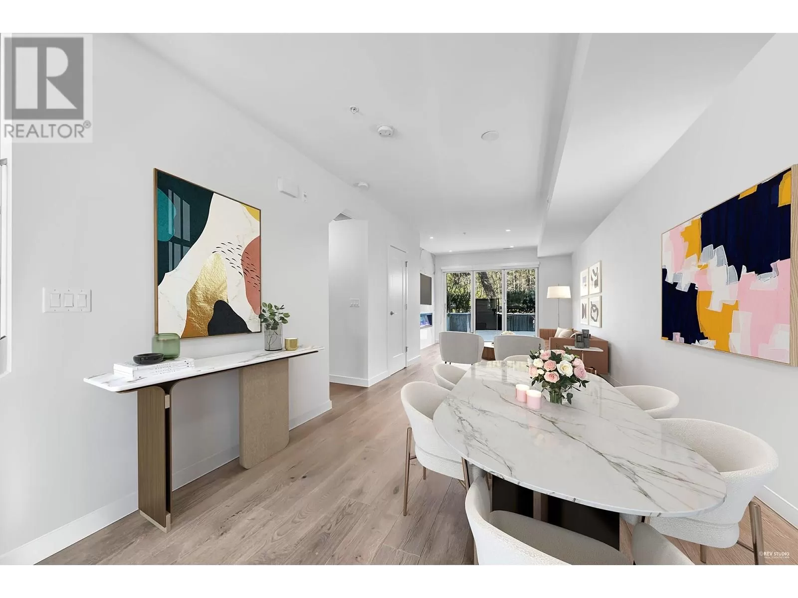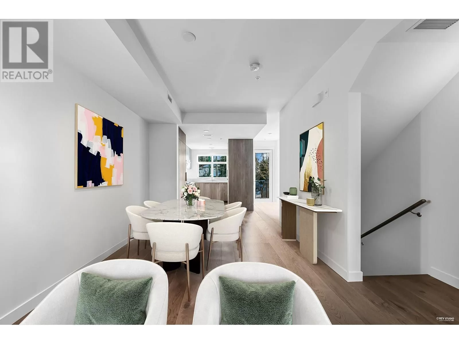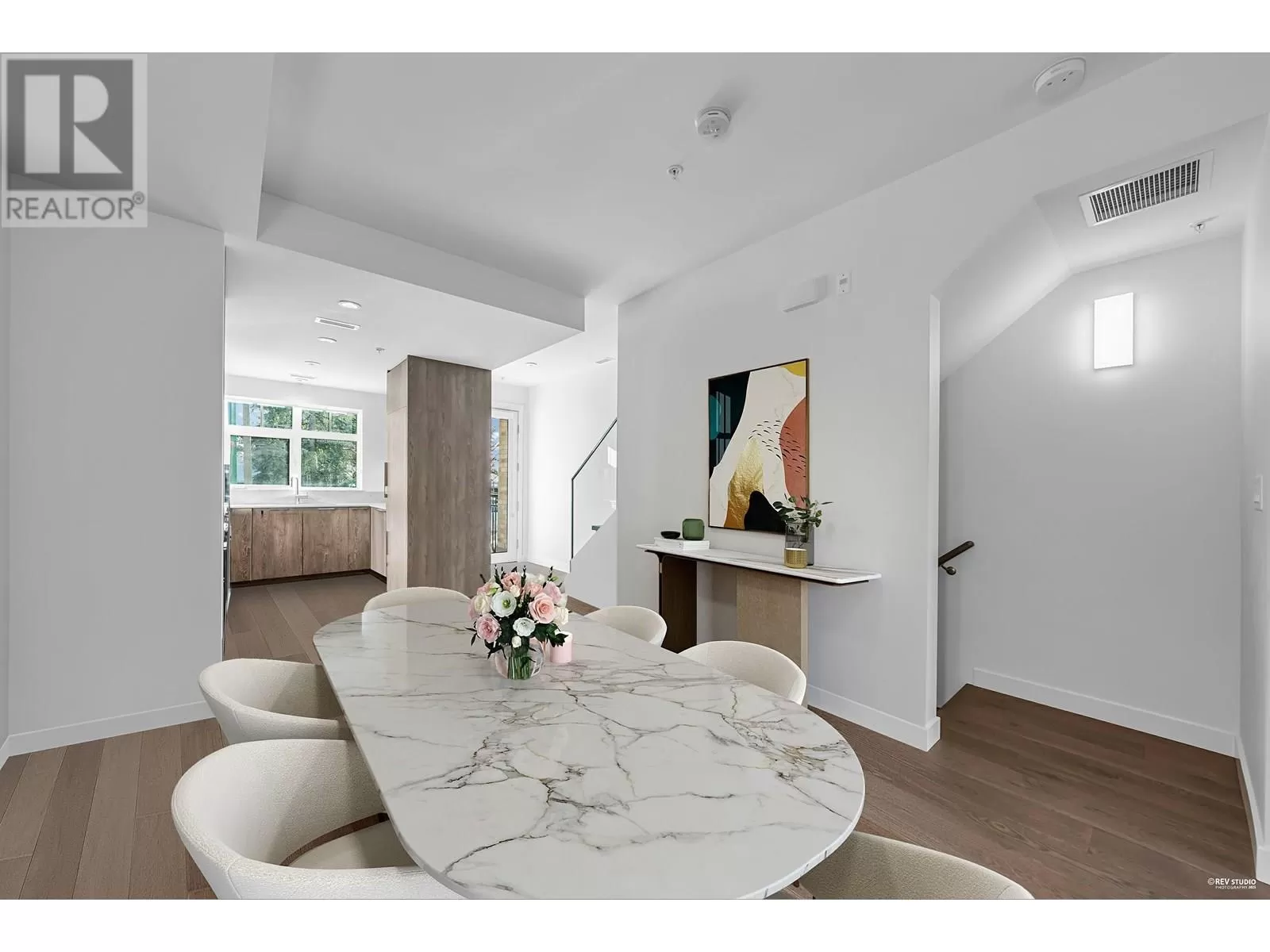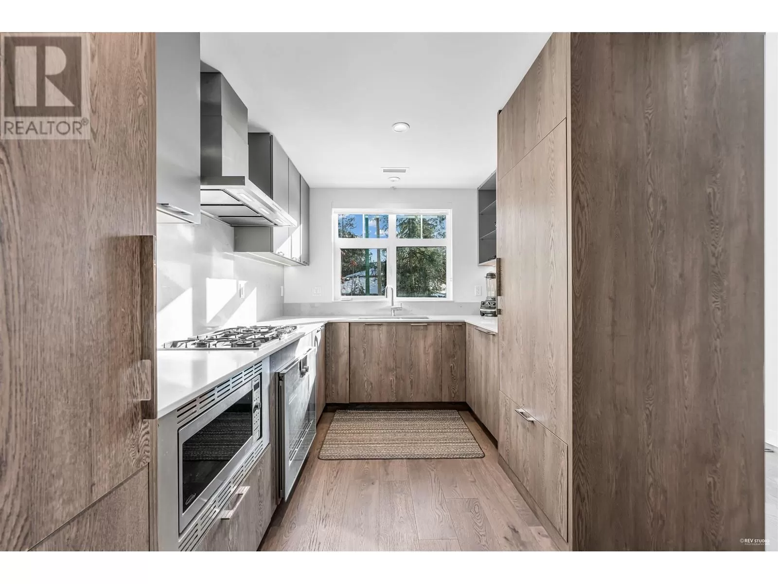 Welcome to Unit 4 at Holland Row-a rare opportunity to own a riverfront townhome in this exclusive 23-home community. This 4-bedroom residence offers the feel of a single-family home, featuring a spacious primary suite with double closets, stunning Capilano River views, and a spa-inspired ensuite with heated floors, a seamless glass shower, and double vanity. The high-end kitchen is equipped with integrated Gaggenau appliances, setting the tone for luxury. Accordion-style doors open to a private patio, seamlessly blending indoor and outdoor living. With both street-level and private garage entry, plus easy access to trails, cafes, transit, and shopping, this is North Vancouver living at its finest. (id:27476)