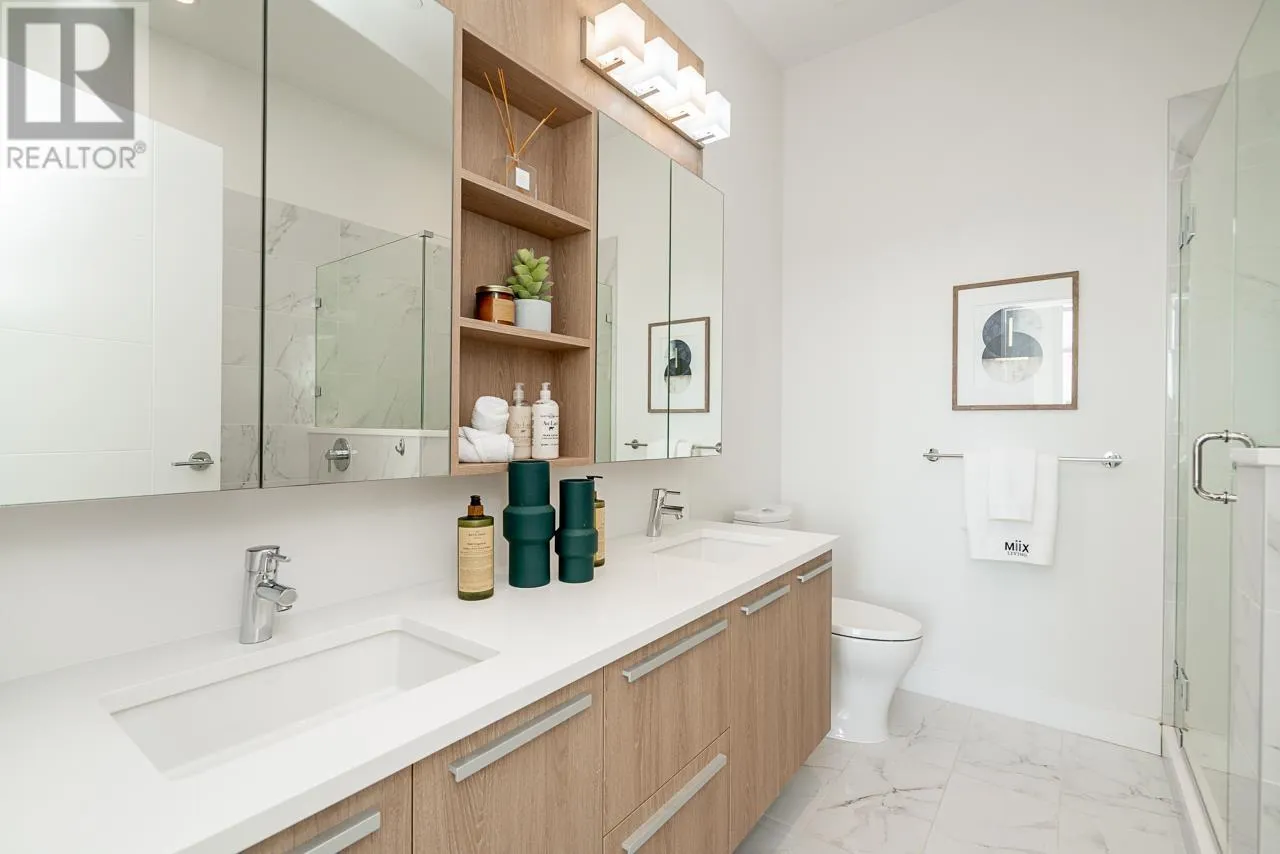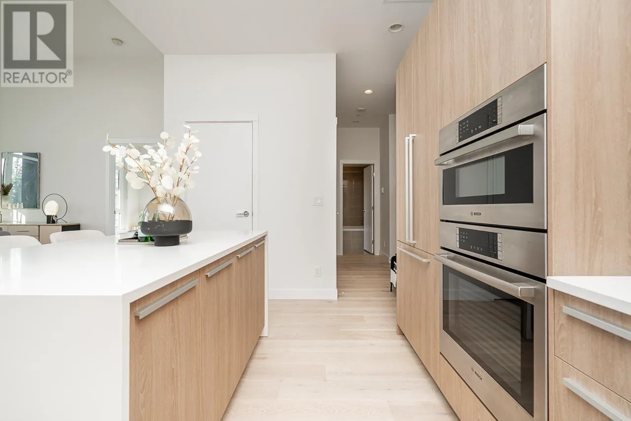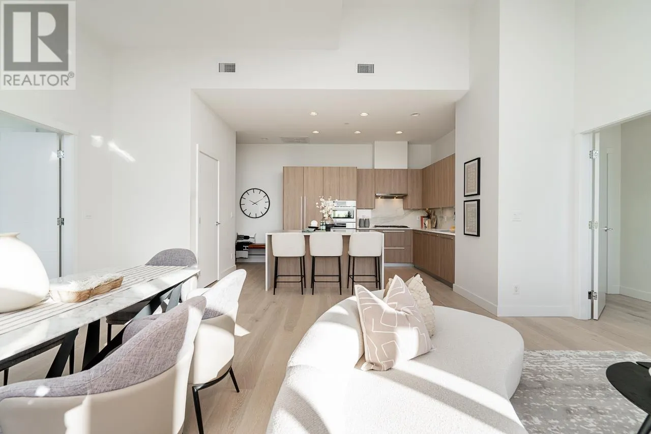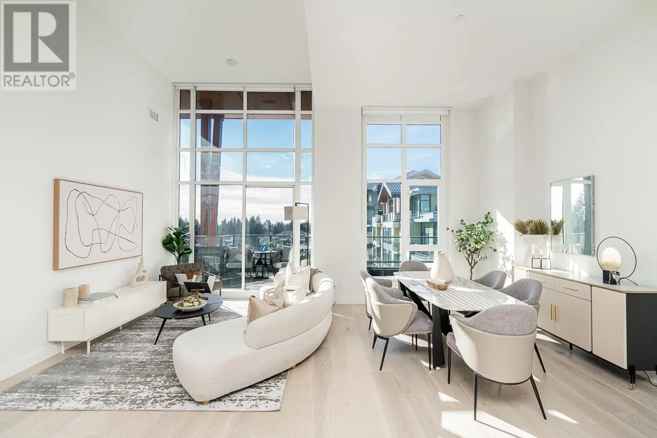 Discover your next chapter in this rare PENTHOUSE at Residences at Lynn Valley - offering the space, comfort, and ease perfect for downsizing. This bright, airy home features 2 spacious bedrooms with soaring ceilings, 2 full bathrooms (both en-suite) plus a powder room, and central A/C. The chef´s kitchen with premium BOSCH appliances opens to an expansive living area and large deck where you can relax and enjoy stunning sunsets (see photos). Ceilings up to 13'8" and south-facing windows flood the home with natural light, creating a sense of openness that´s hard to find in condo living. All in the heart of Lynn Valley Town Centre, steps to shops, services, and everything you need. A rare chance to enjoy penthouse living in a vibrant, walkable community. Comes with 2 parking + large locker. (id:27476)