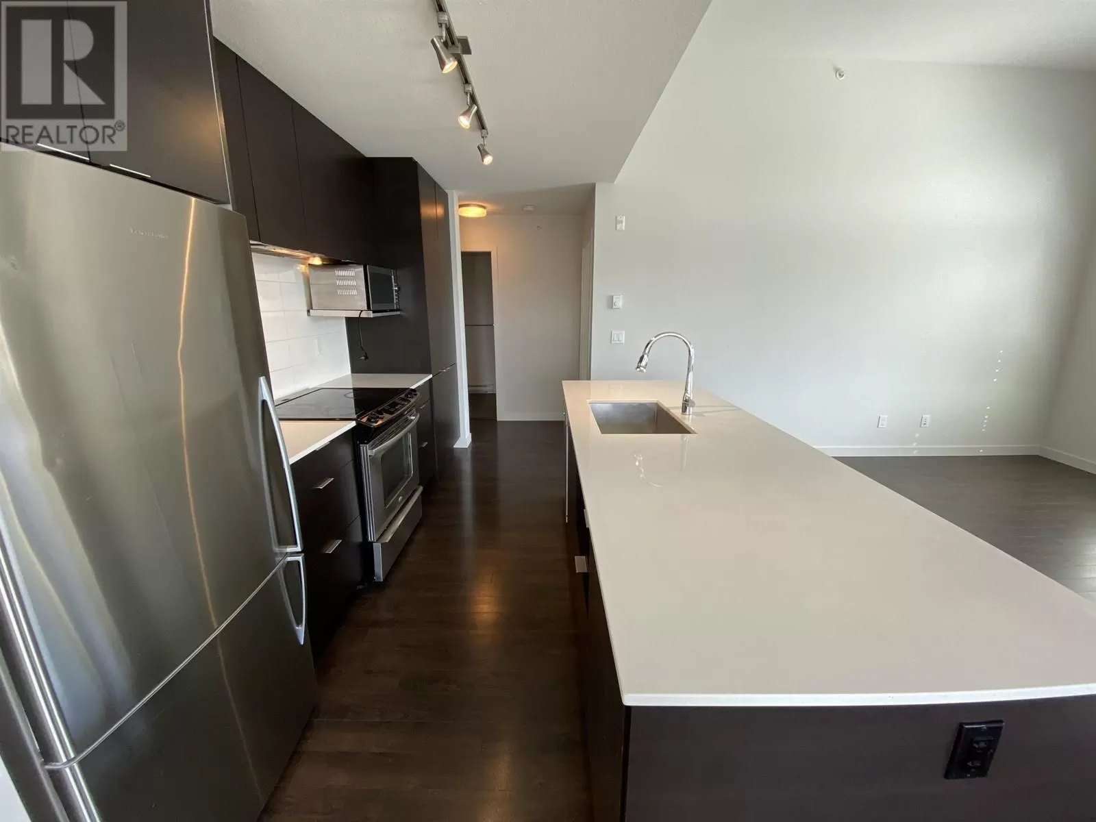 Corner Unit 2 Bed, 2 Bath Penthouse in Sought-After North Vancouver with the view of downtown Vancouver. Stunning southeast-facing corner unit with a spacious 107 sq.ft. balcony and a well-designed split-bedroom layout. This bright and airy home features an open floorplan with expansive living and dining areas, and a gourmet kitchen with quartz countertops, stainless steel appliances, a pantry, and a large island with breakfast bar. The primary bedroom includes a walk-in closet and a spa-like ensuite with a separate glass shower and soaker tub. The generous second bedroom is complemented by a second bathroom with a shower. Additional features include , large windows, one parking stall, and one storage locker. Walking distance to shops, restaurants ,trail, an public transportation. (id:27476)