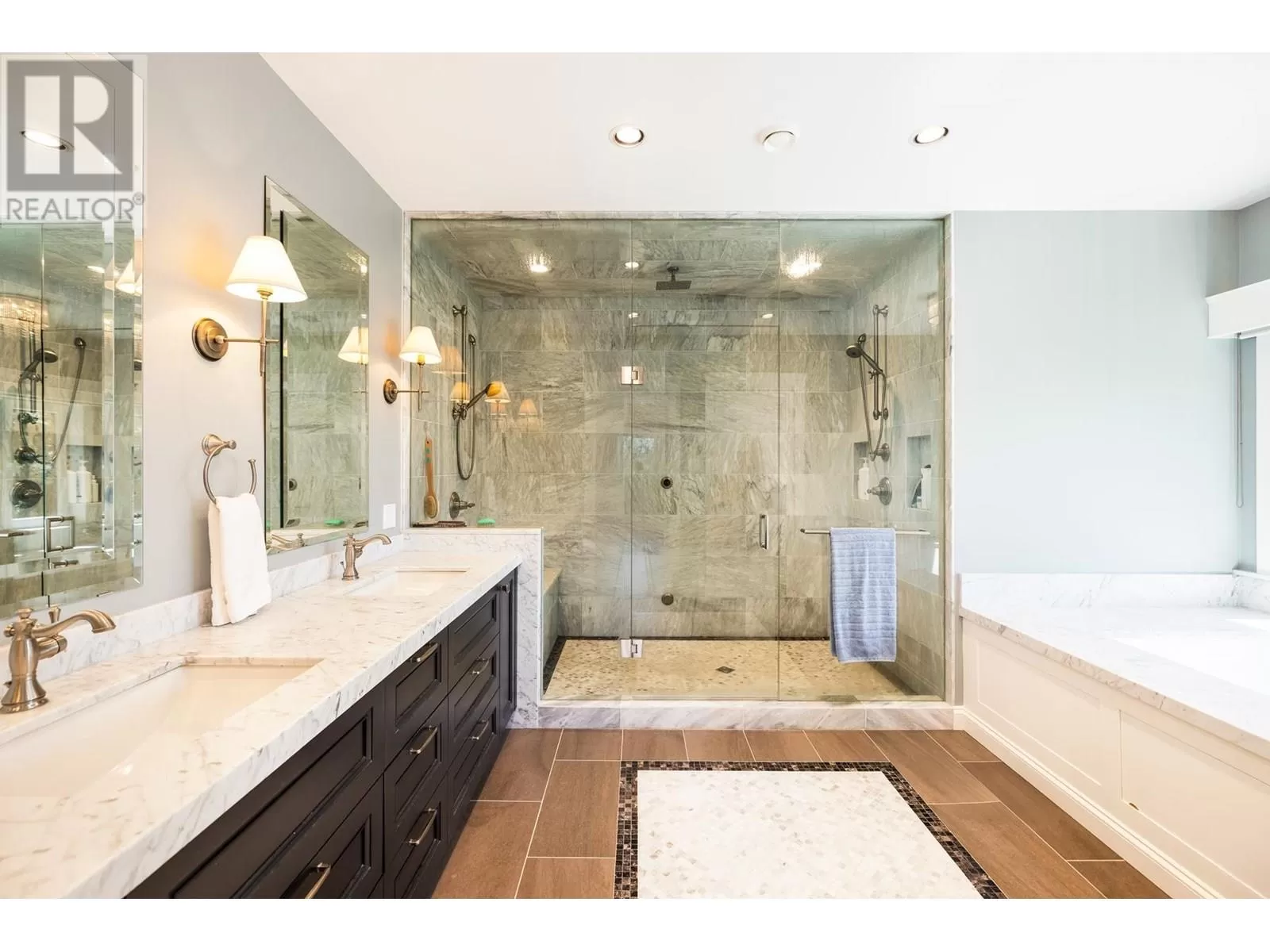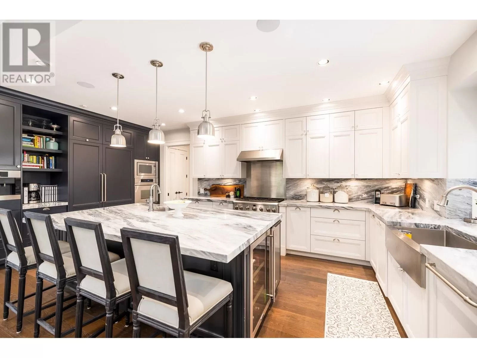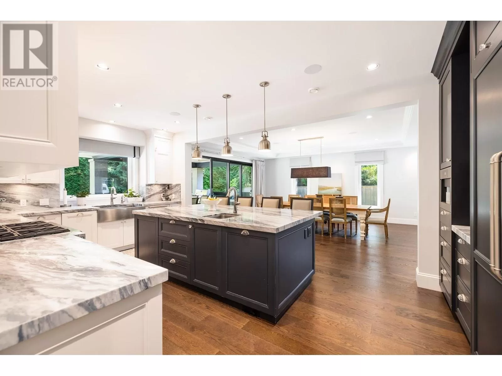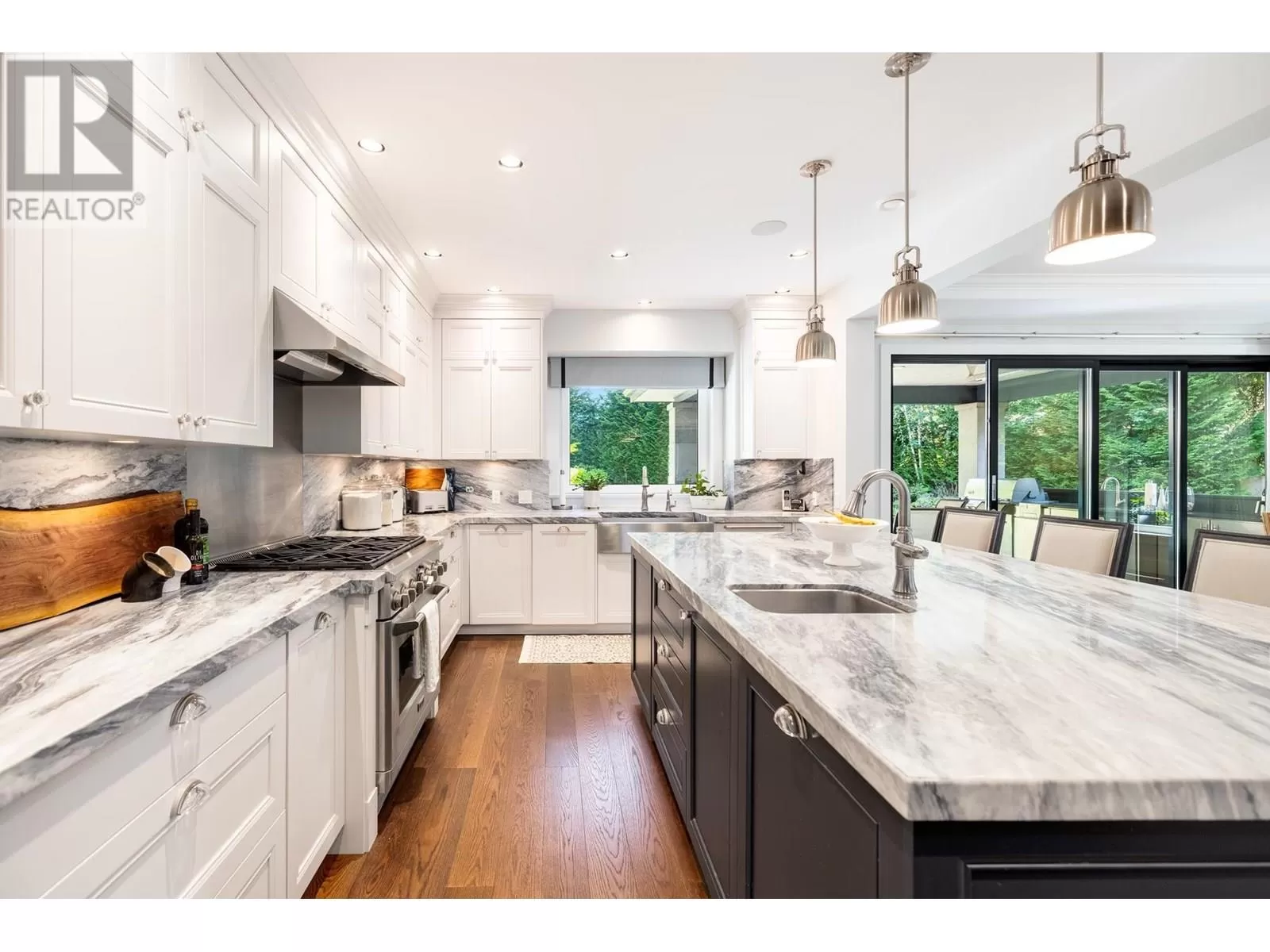 Exceptional custom-built home where every detail has been meticulously crafted. The sprawling main floor features a stunning chef´s kitchen with Italian marble countertops, custom cabinetry, and top-tier appliances. The open-concept living and dining areas flow seamlessly to an incredible backyard oasis-complete with a built-in BBQ, fully covered and heated patio, hot tub, and a flat, private yard-perfect for year-round entertaining and everyday enjoyment. A spacious bedroom with full ensuite, dedicated office, and an impressive mudroom/laundry room with a dog spa round out the main level. Upstairs offers three large bedrooms, including a luxurious primary suite with a dream ensuite. The lower level is built for lifestyle with a home theatre, full gym, expansive workshop, and a legal 2-bedroom suite. The 3-car garage provides ample space for all your toys. Located on a quiet street, nestled in nature yet minutes to both Lonsdale and Lynn Valley, this is truly one of the North Shore´s most exceptional homes. (id:27476)