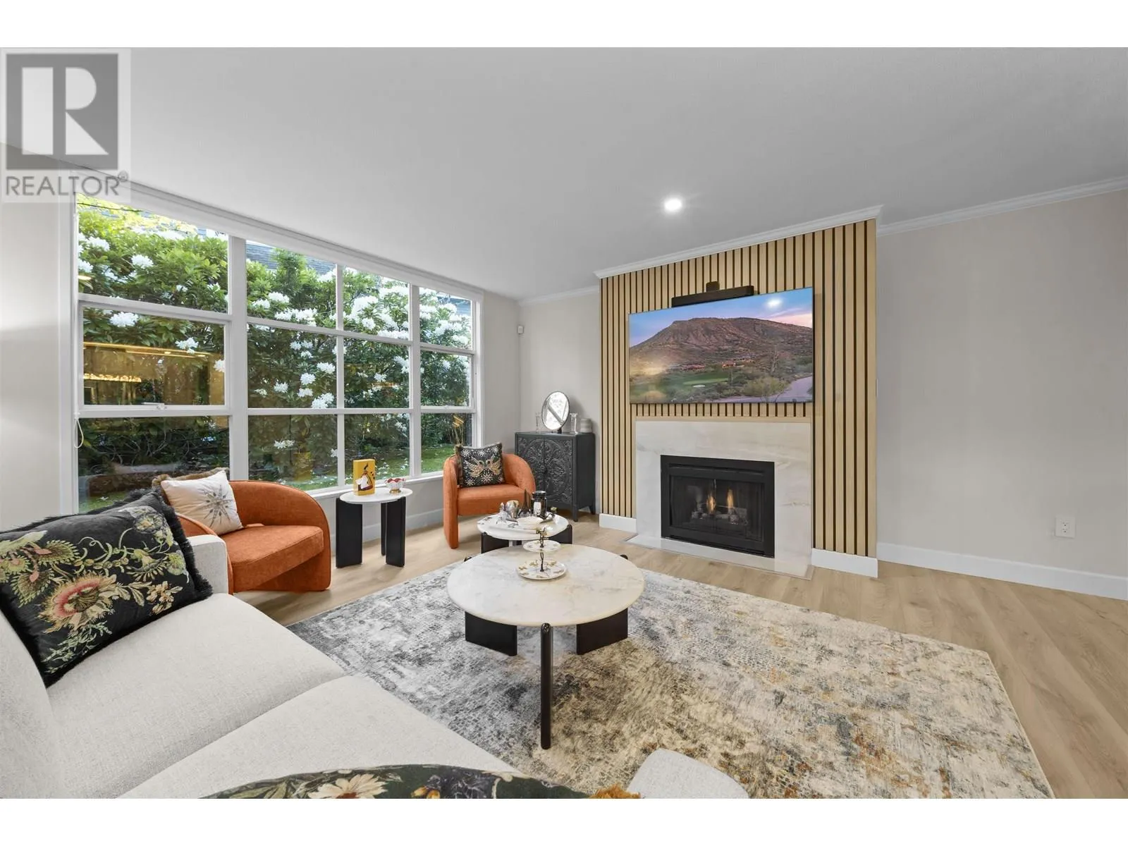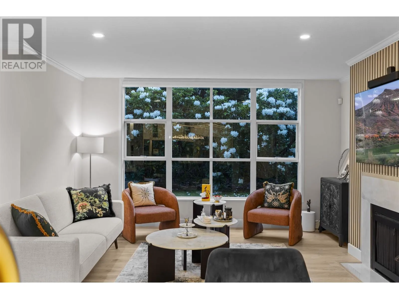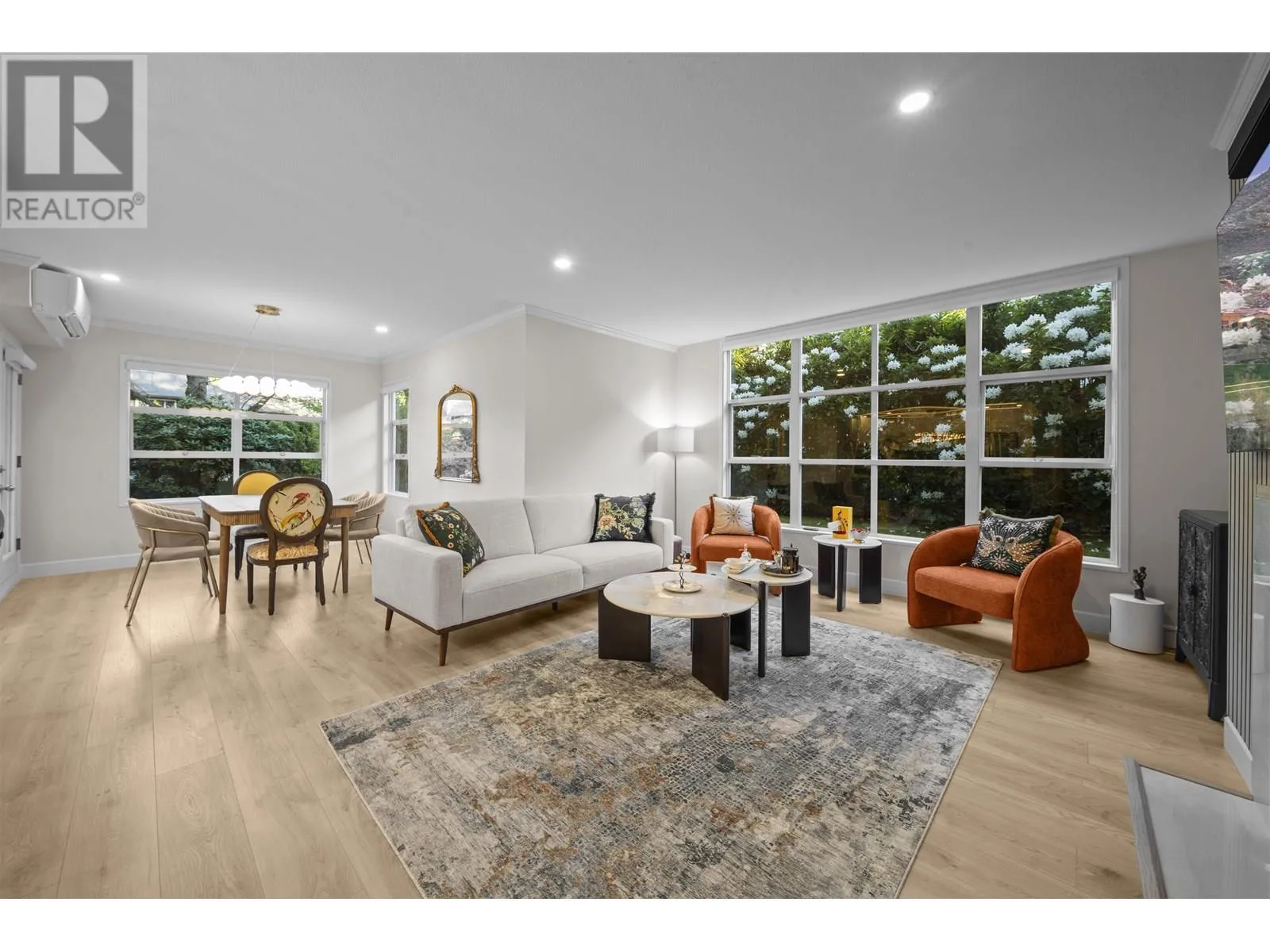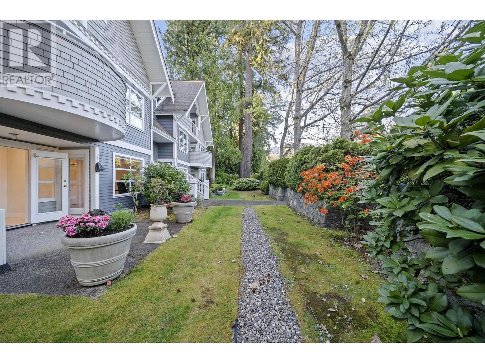 Welcome to this luxuriously renovated ground level 2 bed / 2 bath corner home in the prestigious Capilano Estate. Surrounded by lush greenery, this bright and private residence features a reconfigured open layout with a removed load bearing wall and a stunning custom kitchen with premium appliances, wine cooler, full size washer/dryer, and much more! Both bathrooms are elegantly updated with high end finishes. Upgrades include wide plank flooring, designer lighting, roller shades, custom walk in closet, fireplace accents, and smart heat pumps in every room. Includes 2 side by side parking stalls and large storage. Only steps to Edgemont Village, Capilano Park, and the Suspension Bridge! This fully renovated home is move in ready, and is owner occupied. (id:27476)