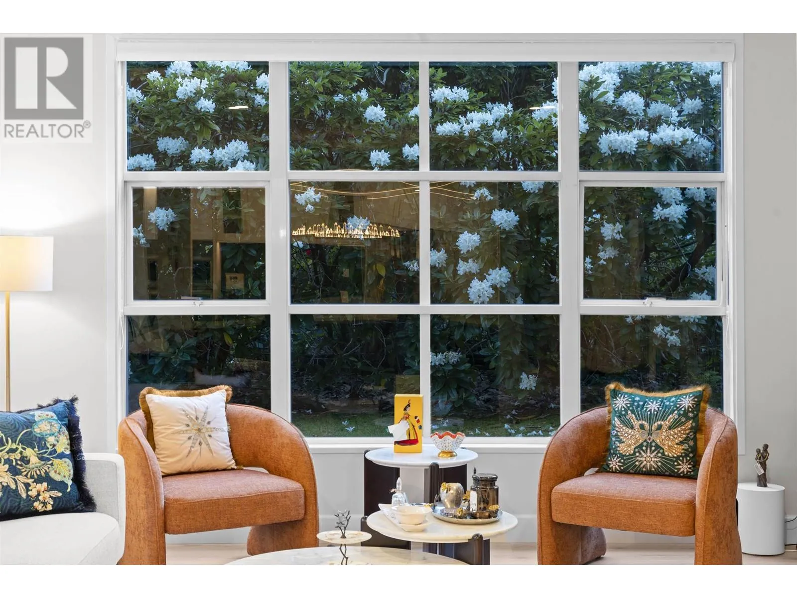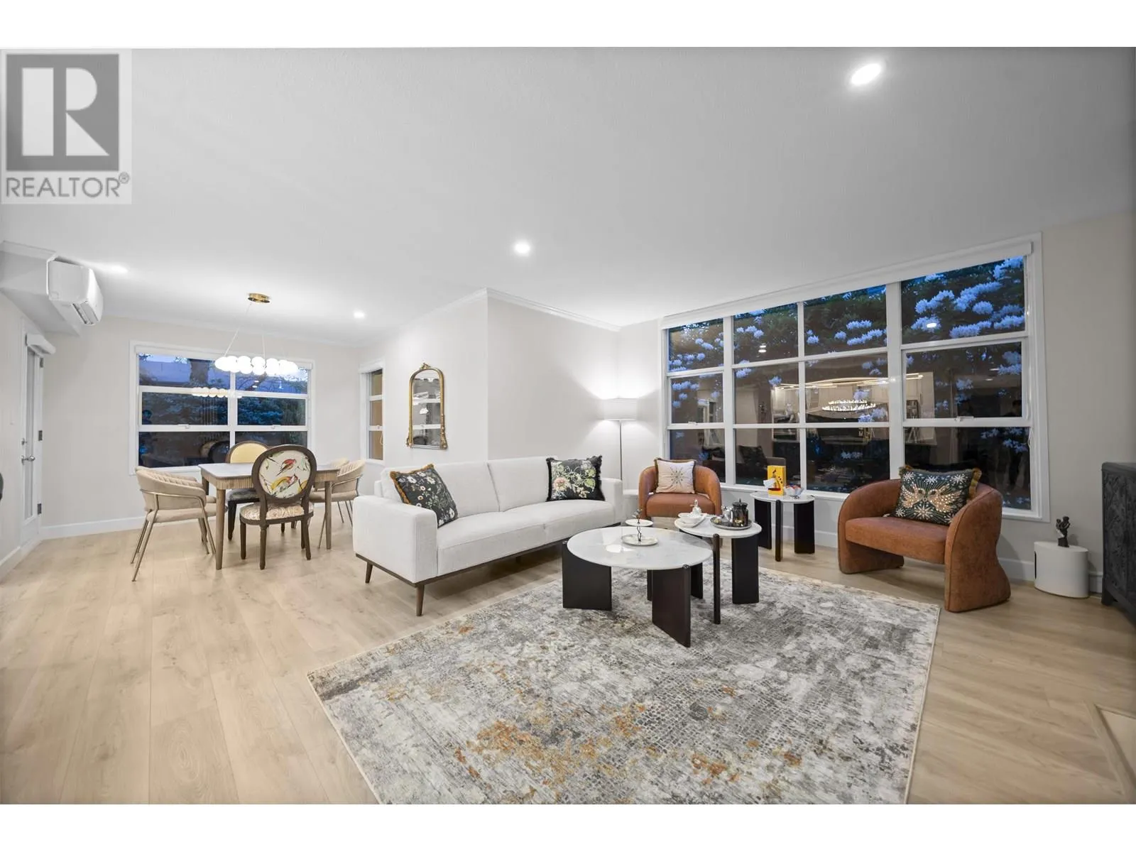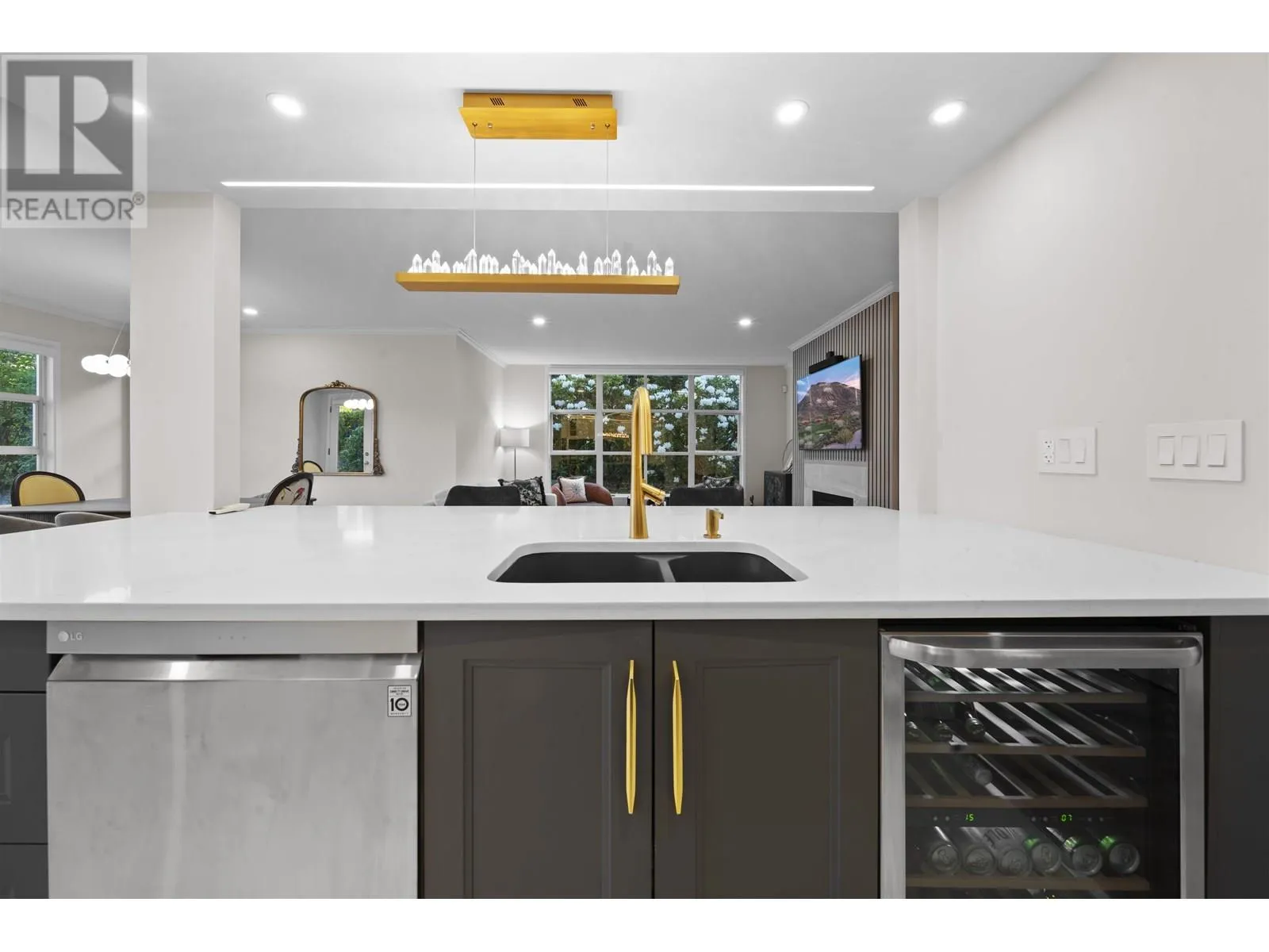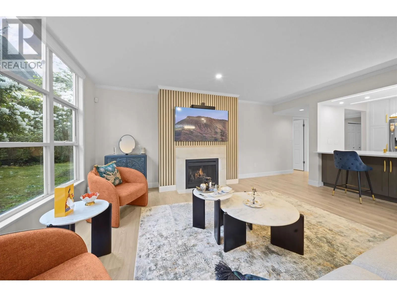 Welcome to this luxuriously renovated ground level 2 bed / 2 bath corner home in the prestigious Capilano Estate. Surrounded by lush greenery, this bright and private residence features a reconfigured open layout with a removed load bearing wall and a stunning custom kitchen with premium appliances, wine cooler, full size washer/dryer, and much more! Both bathrooms are elegantly updated with high end finishes. Upgrades include wide plank flooring, designer lighting, roller shades, custom walk in closet, fireplace accents, and smart heat pumps in every room. Includes 2 side by side parking stalls and large storage. Only steps to Edgemont Village, Capilano Park, and the Suspension Bridge! This fully renovated home is move in ready, and is owner occupied. (id:27476)