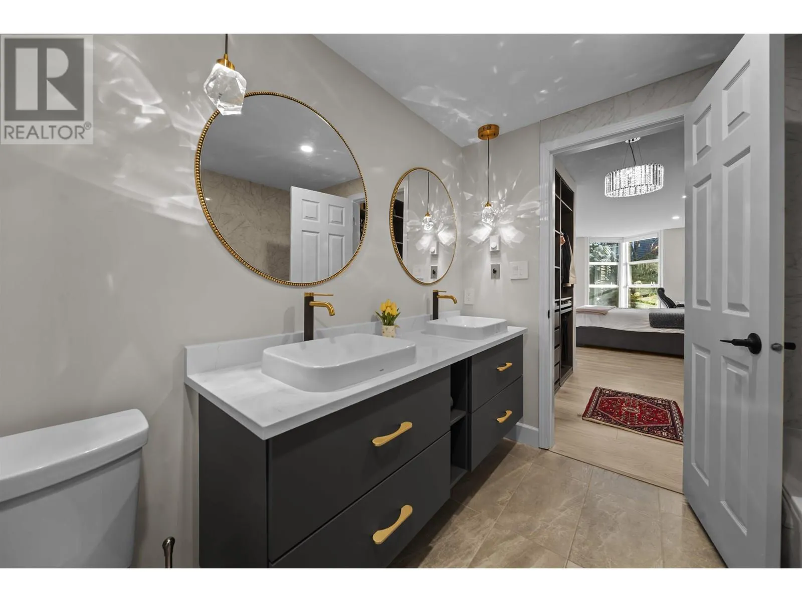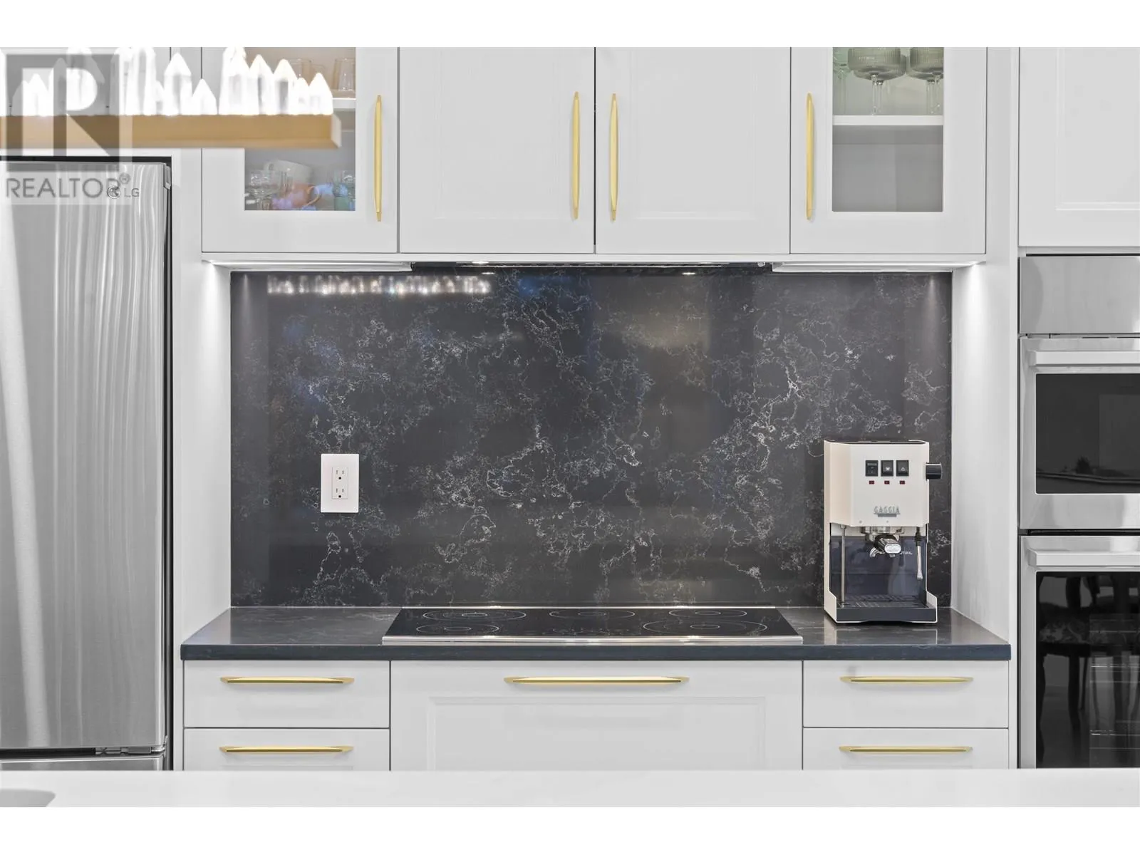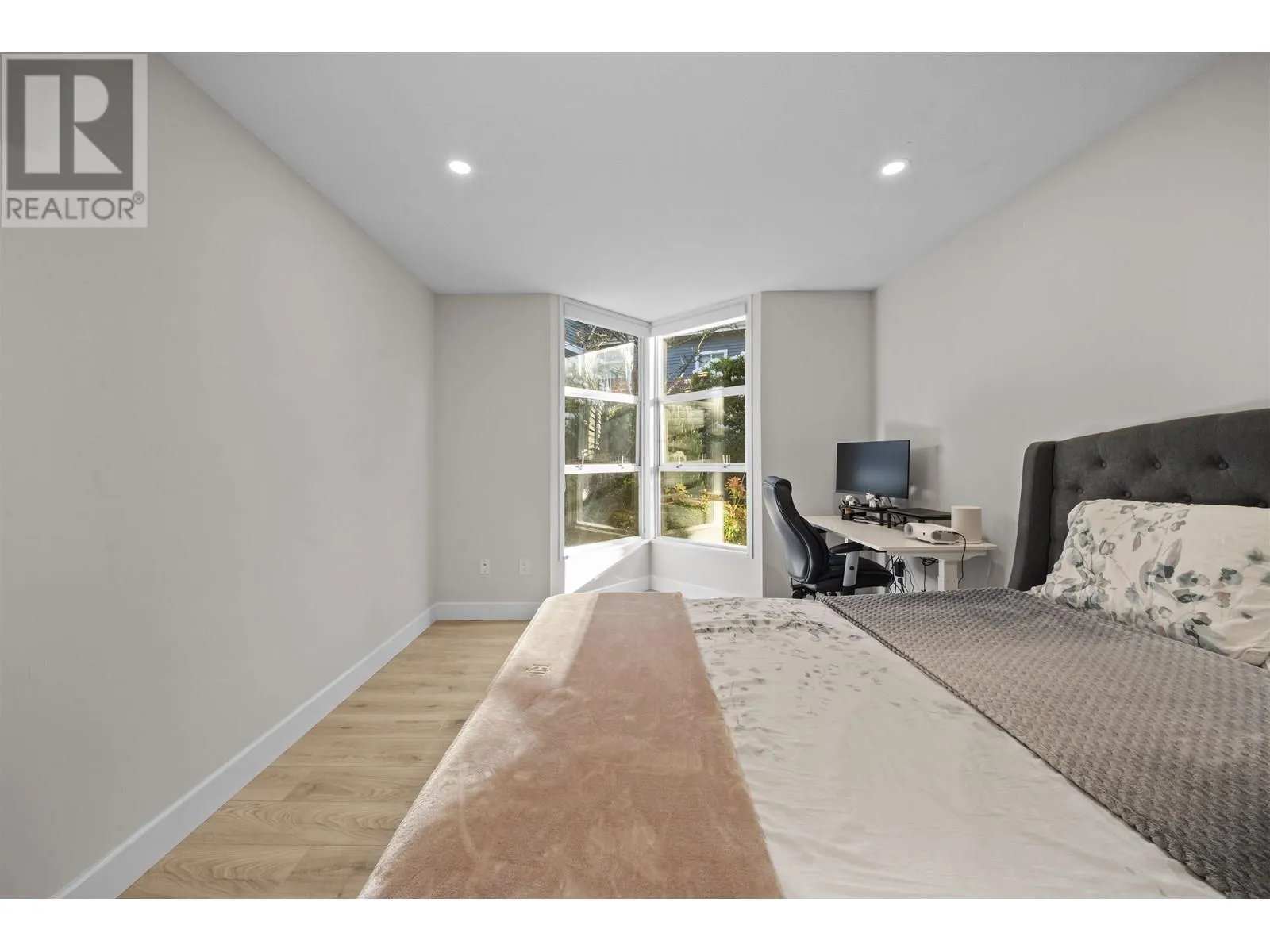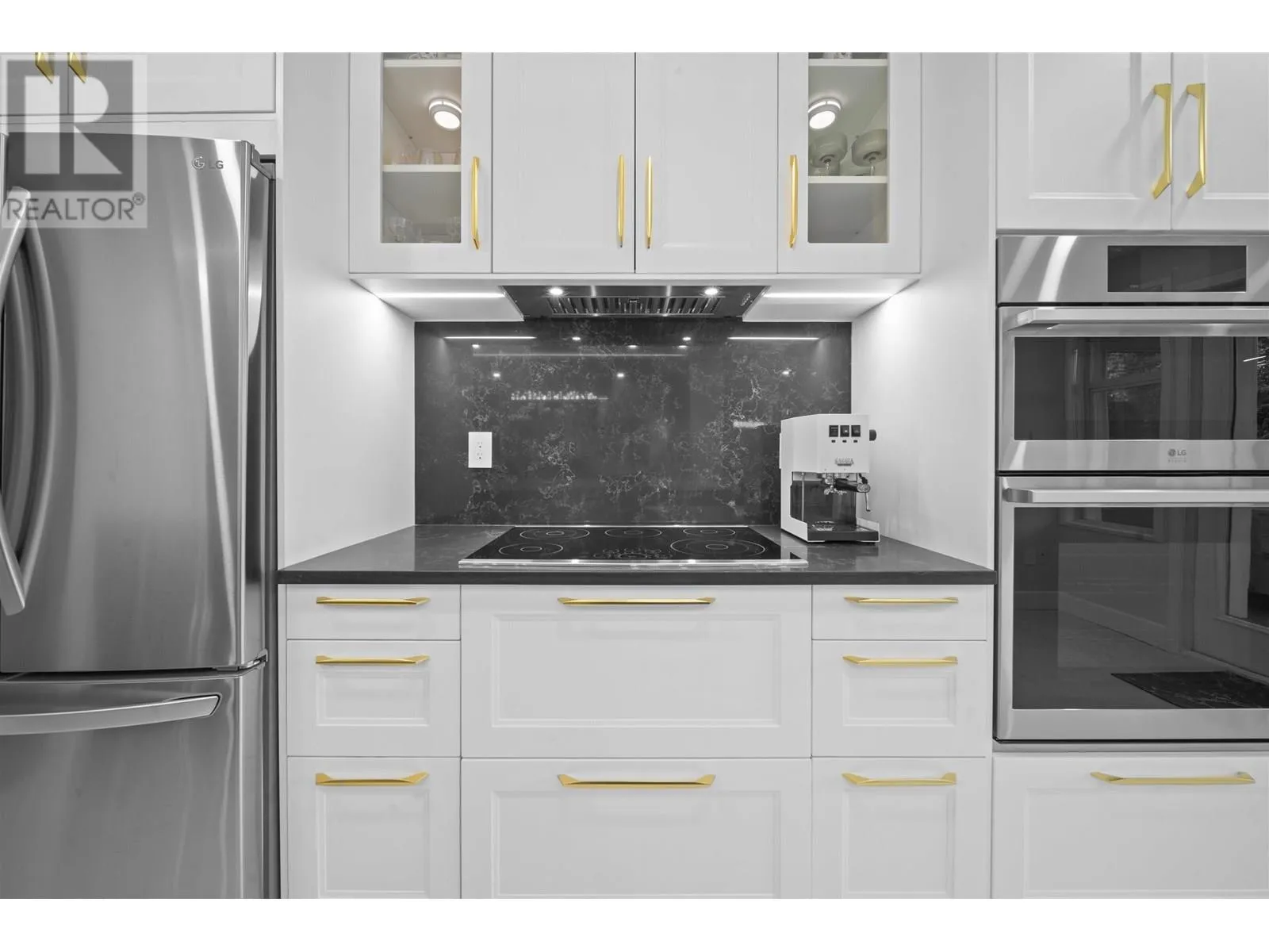 Welcome to this luxuriously renovated ground level 2 bed / 2 bath corner home in the prestigious Capilano Estate. Surrounded by lush greenery, this bright and private residence features a reconfigured open layout with a removed load bearing wall and a stunning custom kitchen with premium appliances, wine cooler, full size washer/dryer, and much more! Both bathrooms are elegantly updated with high end finishes. Upgrades include wide plank flooring, designer lighting, roller shades, custom walk in closet, fireplace accents, and smart heat pumps in every room. Includes 2 side by side parking stalls and large storage. Only steps to Edgemont Village, Capilano Park, and the Suspension Bridge! This fully renovated home is move in ready, and is owner occupied. (id:27476)