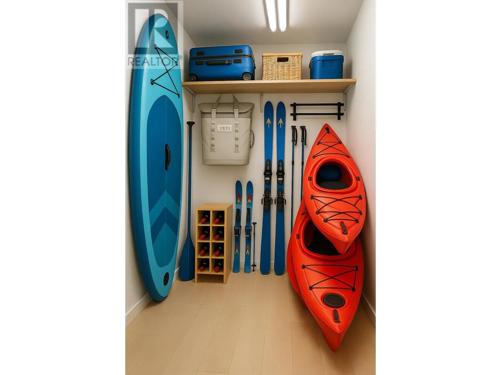 APEX Denna Collection home with ALL of the GOODIES! Multiple parking stalls (1 with EV), motorcycle stall, HUGE storage ROOM, storage locker & 2 bike lockers! Room for ALL of your TOYS! These homes are the pinnacle of luxury with an upgraded offering including: elevated ceiling heights, upgraded gaggenau appliance package, heated tile bathroom floors & more privacy with only 6 homes per floor. Private split bedrooms each have their own walk-in closet. The West exposure boasts loads of natural light with floor-to-ceiling (triple glaze!) windows. Enjoy gorgeous SUNSET views & Ocean/Mountain gazing from either of your 2 PRIVATE decks complete with gas bib! The luxurious amenities at Denna Club include: 25-meter infinity edge pool, hot tub, steam room, sauna, gym & party room.*Digitally staged photos* (id:27476)