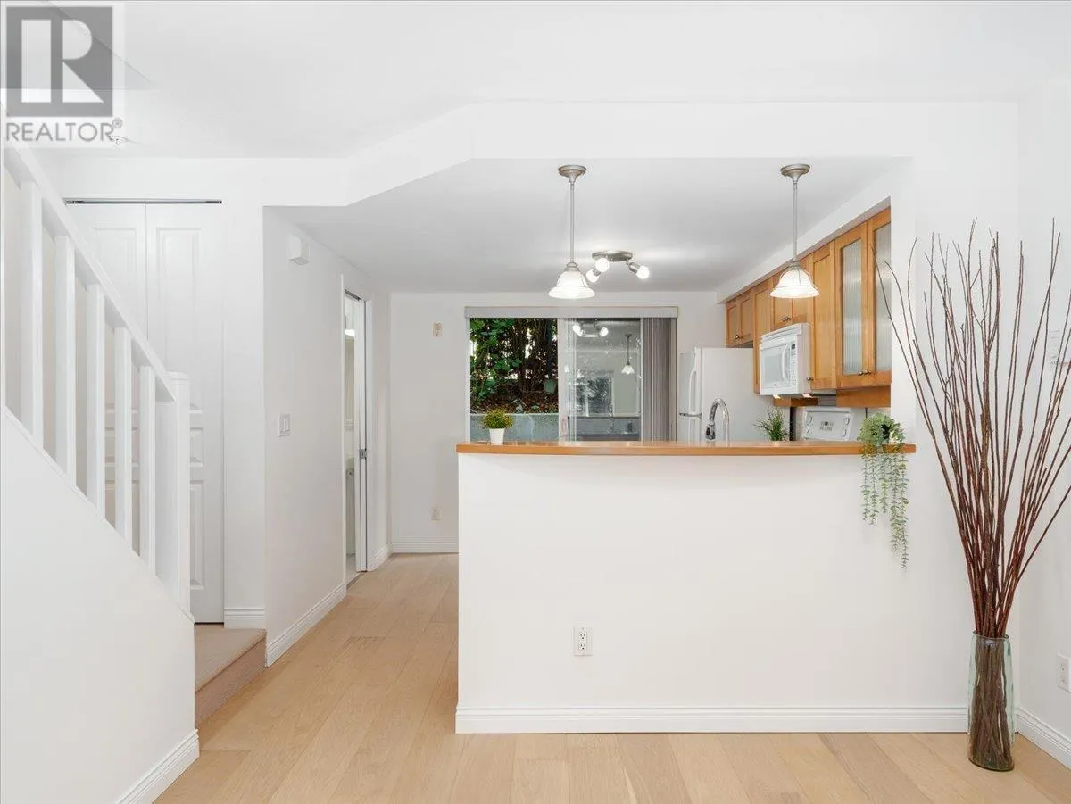 Sought after St. David´s Landing in vibrant & popular Lower Lonsdale neighbourhood! This Cozy & Chic 2 bed, 2 bath Townhouse provides a smart open-concept, well-designed floorplan with an abundance of natural light featuring a cozy gas fireplace. Enjoy ample room for cooking in the well-equipped kitchen, which flows effortlessly to one of the two patios for BBQing and entertaining! Upstairs, has a spacious primary bedroom with private Juliet balcony surrounded by privacy trees and Mtn views. Just down the hall, the 2nd bedroom for a cozy children's room, guest room or a functional home office. Recently updated flooring, paint, and blinds. Well-maintained building includes 1 parking, 1 storage, & pets allowed. Open Nov 22 Saturday 2-4 p.m. (id:27476)