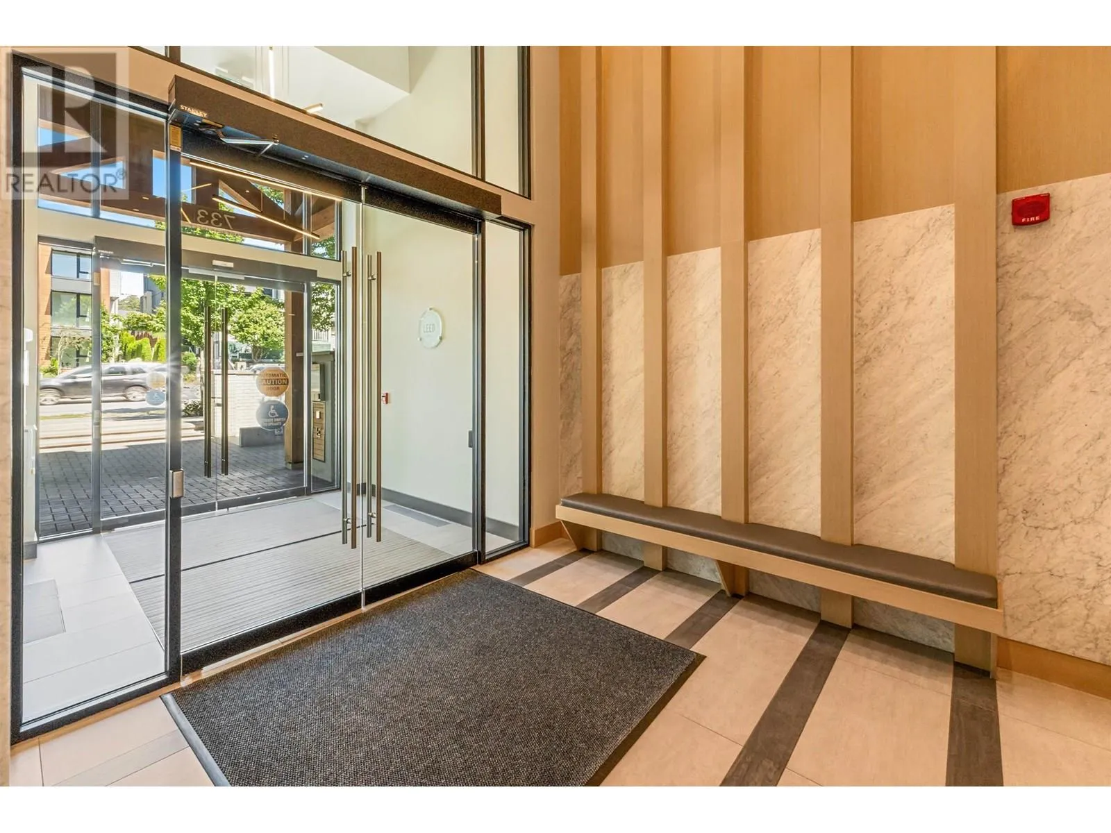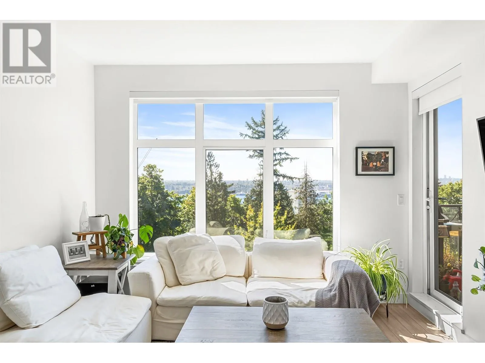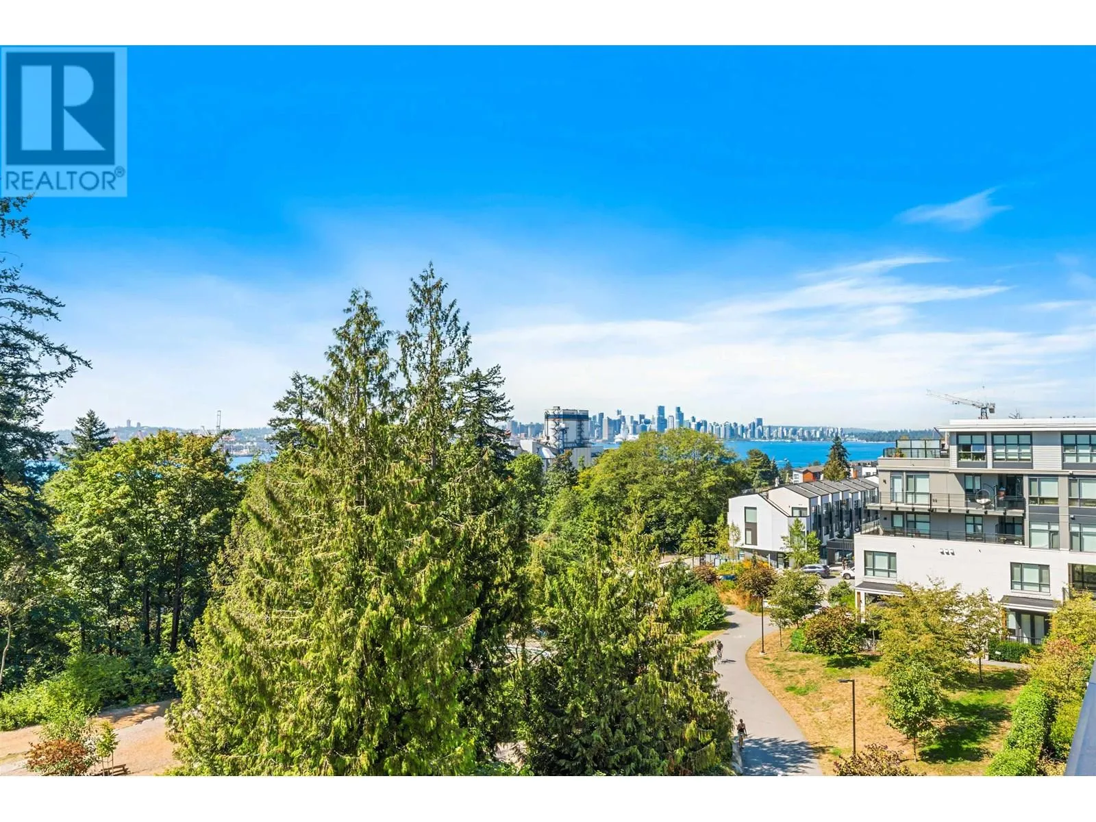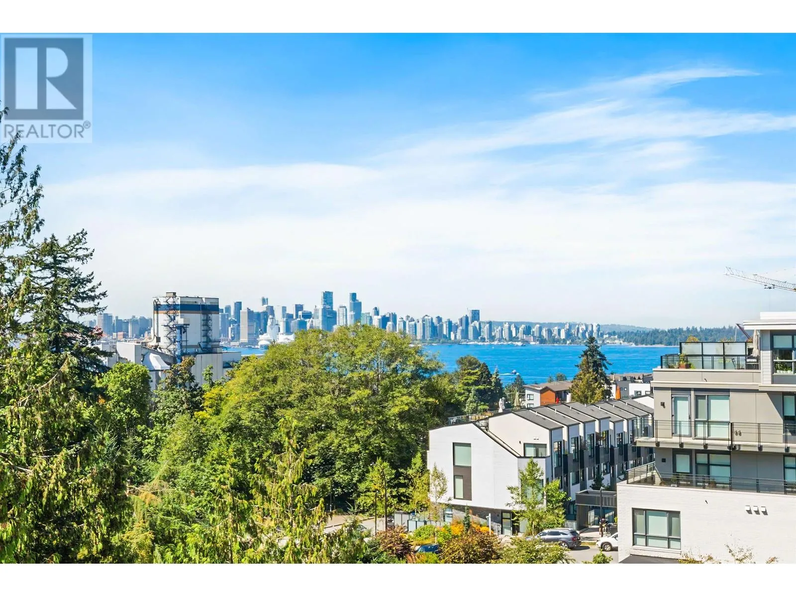 VIEWS · STYLE · COMFORT - Top-floor living with sweeping water views to the Vancouver skyline. Features two spacious bedrooms, two spa-inspired bathrooms, and two generously sized walk in closets. Soaring 9-ft ceilings and large windows fill the home with light, showcasing interiors by award-winning Cristina Oberti. Enjoy a gourmet kitchen with gas stove, plus year-round comfort with heating and A/C. Live comfortably with access to a modern lounge, fitness centre, and a professional workspace designed for productivity. Step outside to Moodyville Park and scenic trails just steps away. Top-floor living with unbeatable views and design. (id:27476)