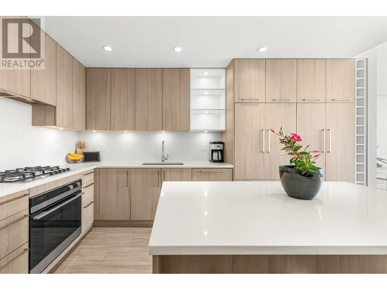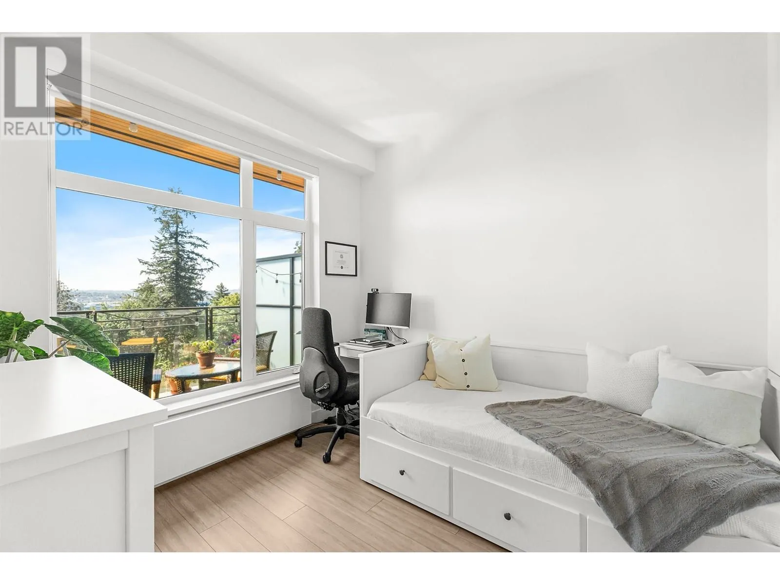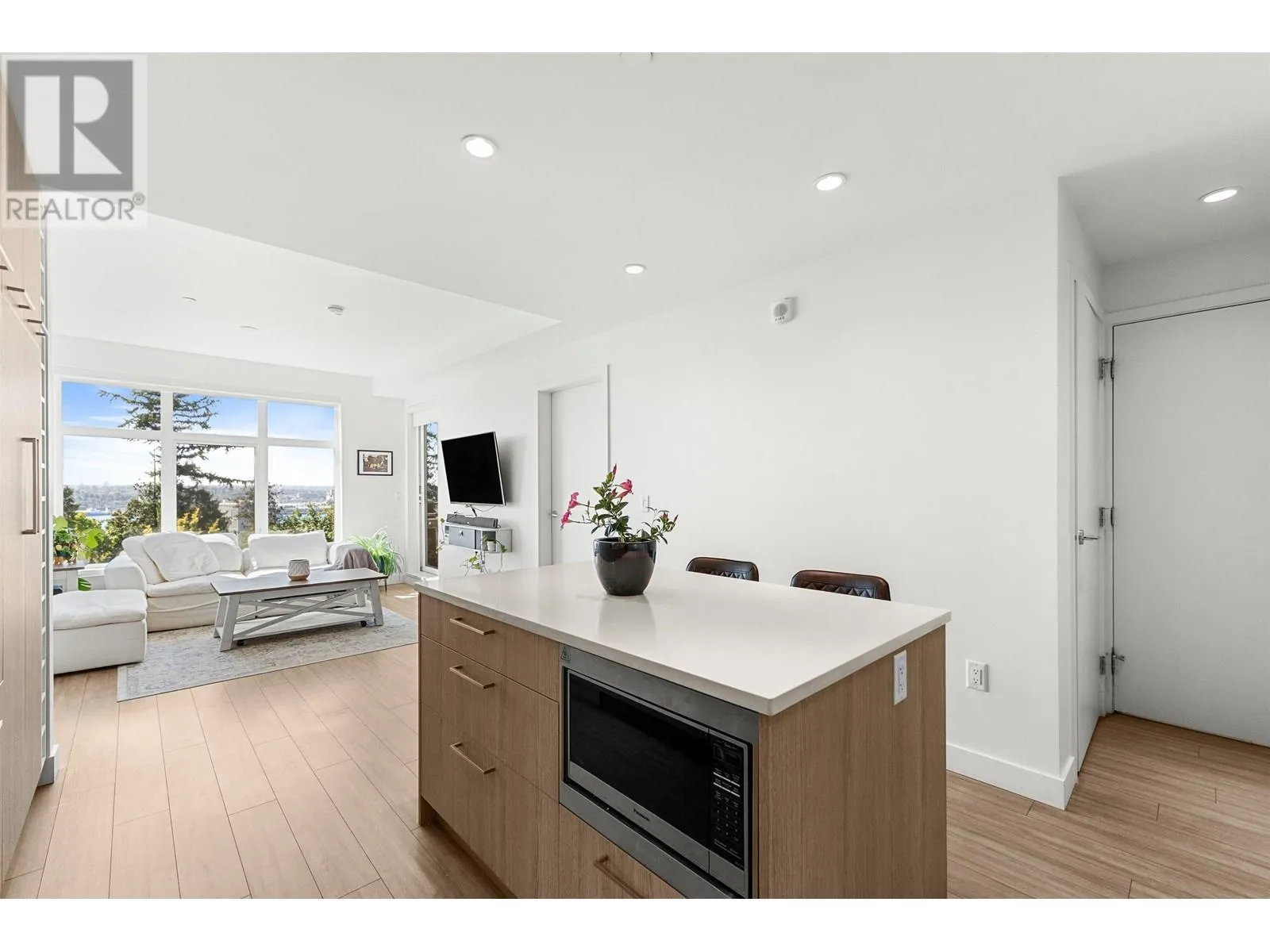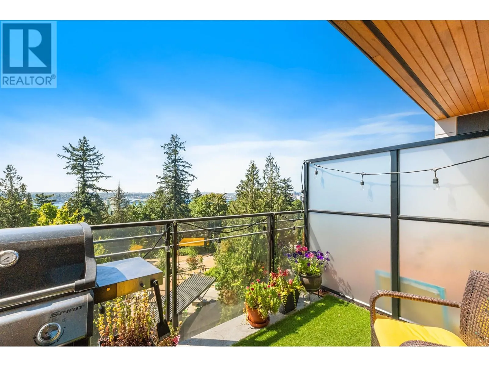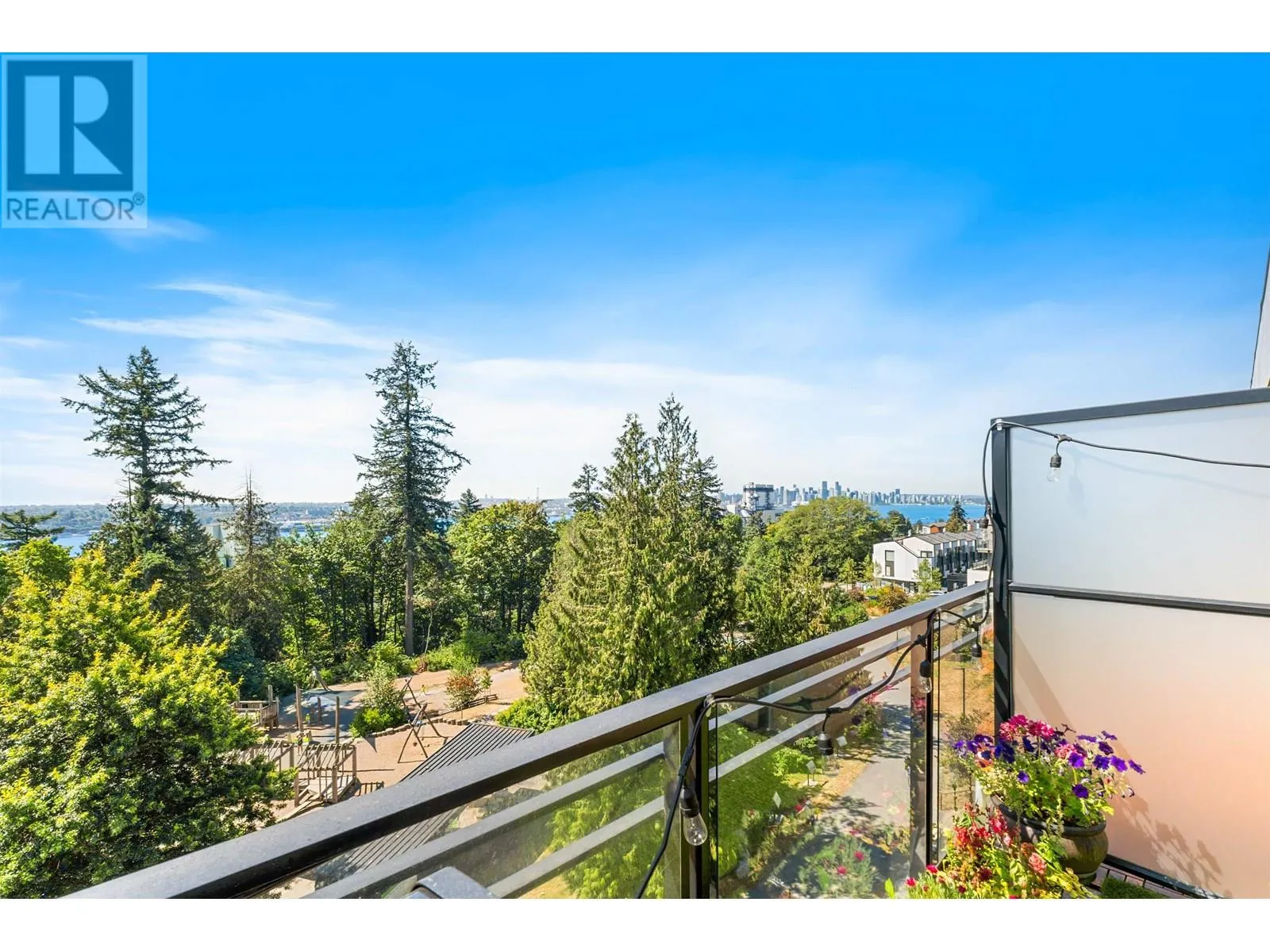 VIEWS · STYLE · COMFORT - Top-floor living with sweeping water views to the Vancouver skyline. Features two spacious bedrooms, two spa-inspired bathrooms, and two generously sized walk in closets. Soaring 9-ft ceilings and large windows fill the home with light, showcasing interiors by award-winning Cristina Oberti. Enjoy a gourmet kitchen with gas stove, plus year-round comfort with heating and A/C. Live comfortably with access to a modern lounge, fitness centre, and a professional workspace designed for productivity. Step outside to Moodyville Park and scenic trails just steps away. Top-floor living with unbeatable views and design. (id:27476)