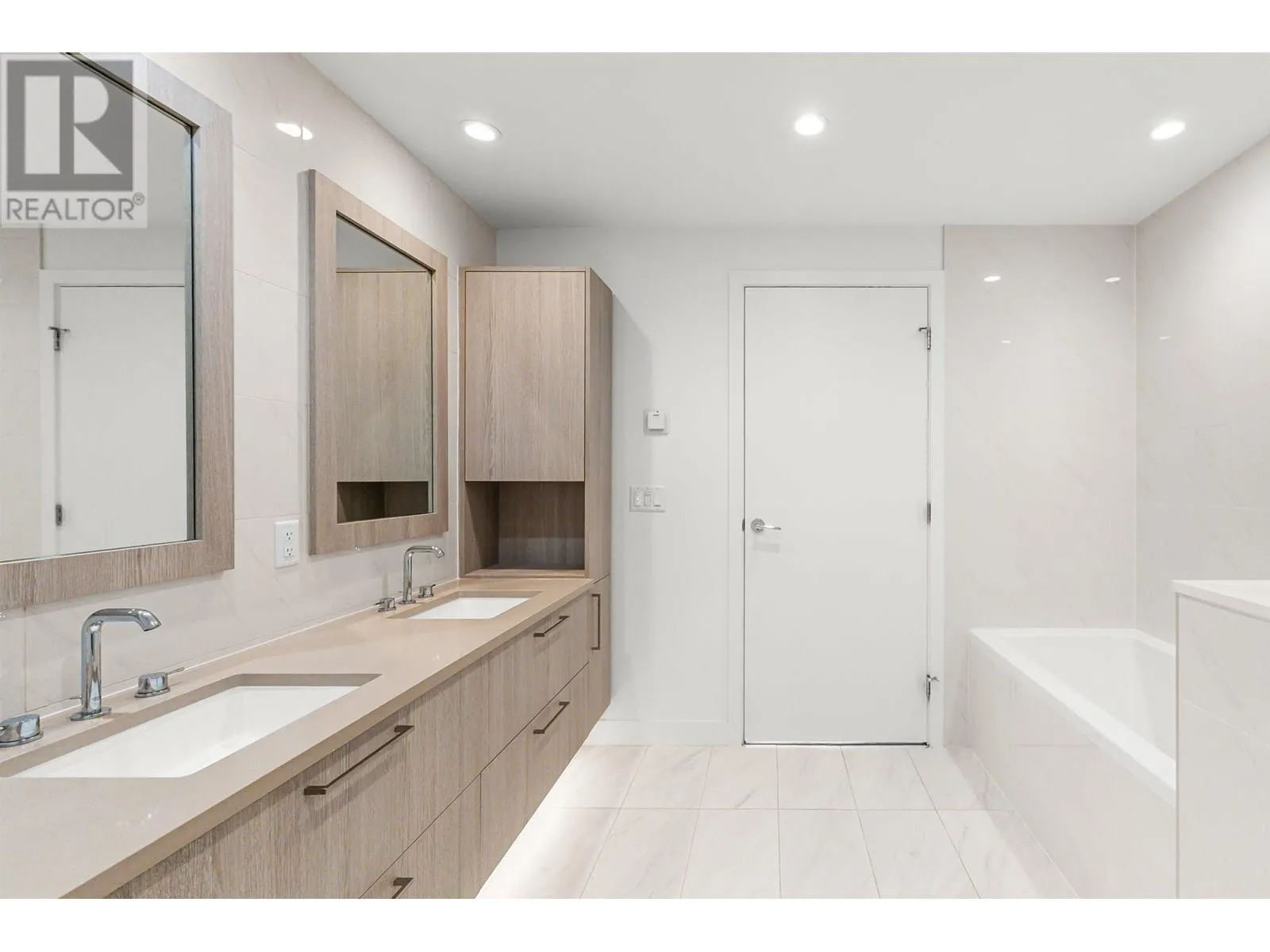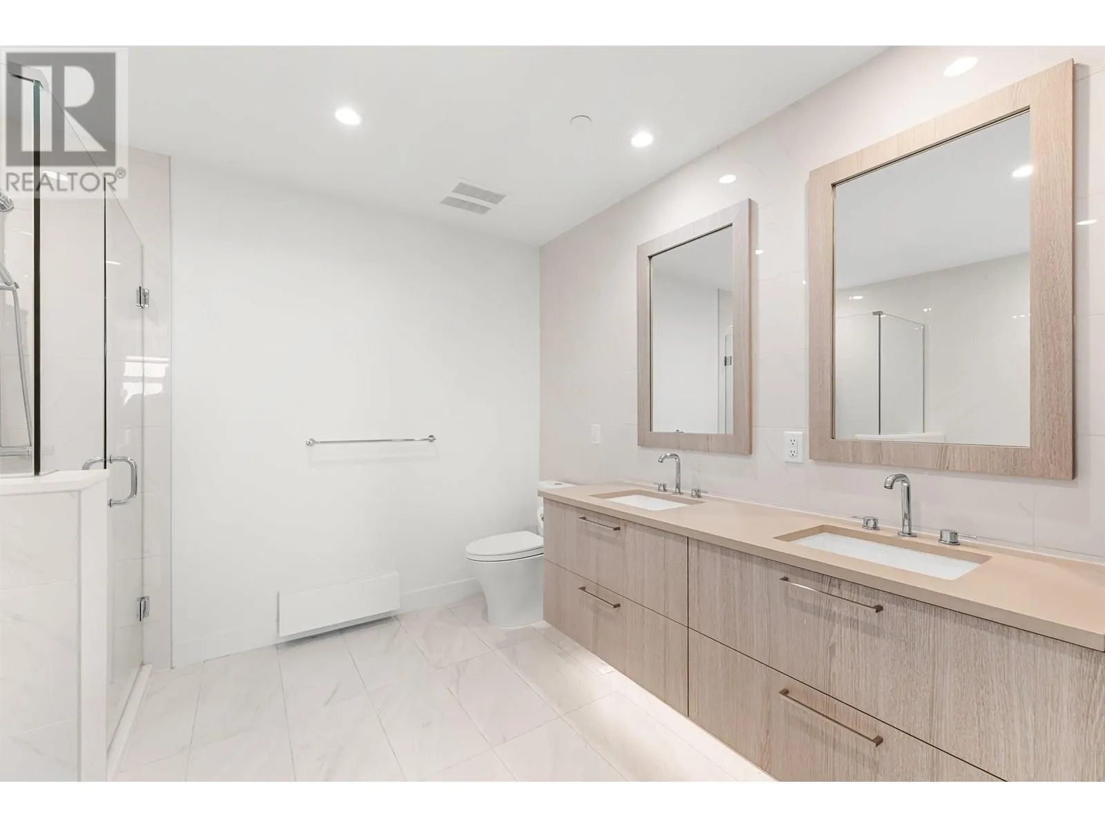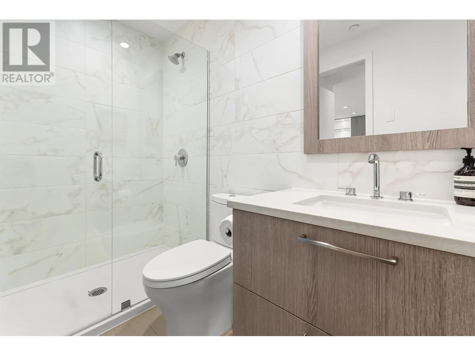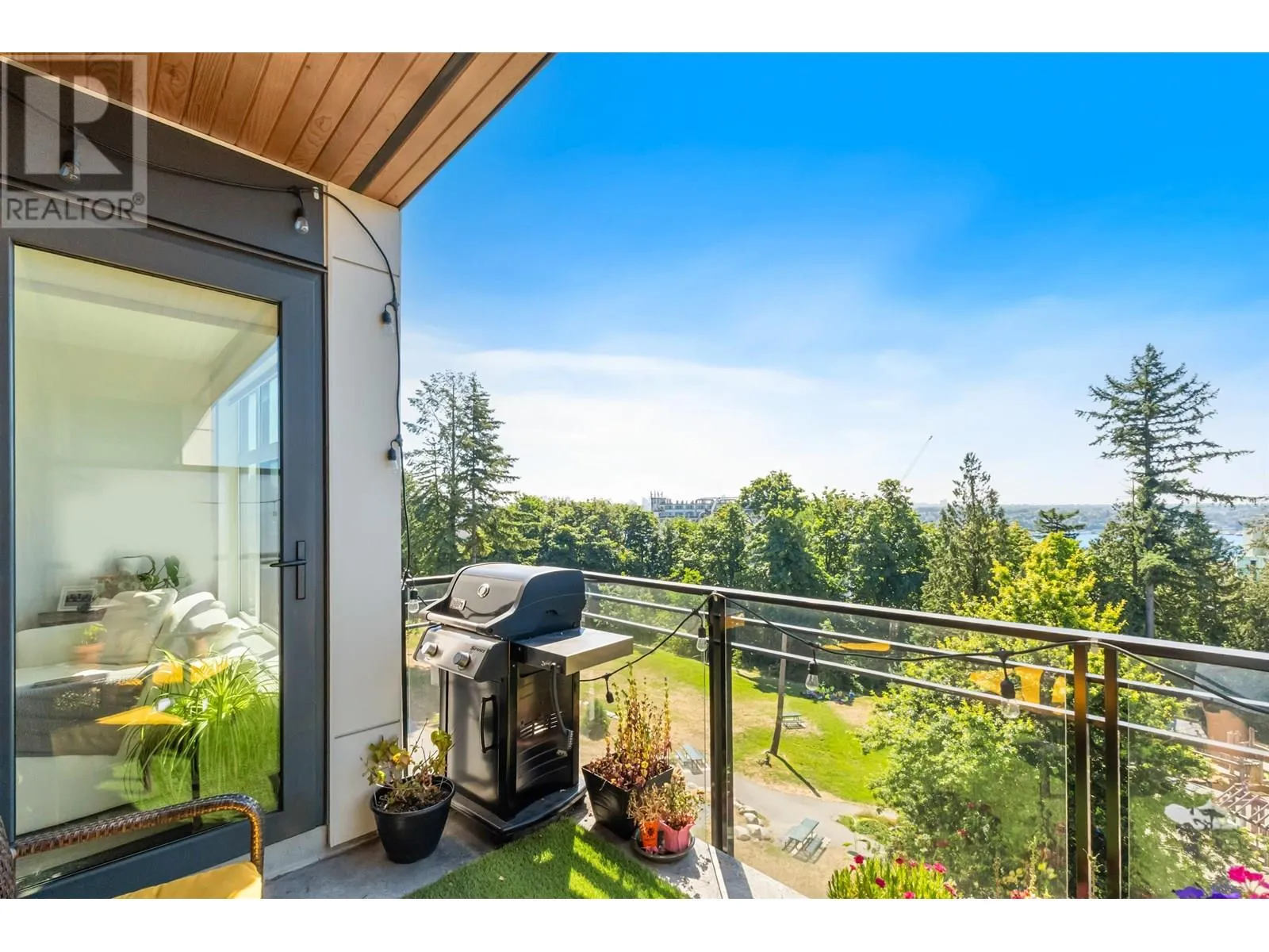 VIEWS · STYLE · COMFORT - Top-floor living with sweeping water views to the Vancouver skyline. Features two spacious bedrooms, two spa-inspired bathrooms, and two generously sized walk in closets. Soaring 9-ft ceilings and large windows fill the home with light, showcasing interiors by award-winning Cristina Oberti. Enjoy a gourmet kitchen with gas stove, plus year-round comfort with heating and A/C. Live comfortably with access to a modern lounge, fitness centre, and a professional workspace designed for productivity. Step outside to Moodyville Park and scenic trails just steps away. Top-floor living with unbeatable views and design. (id:27476)