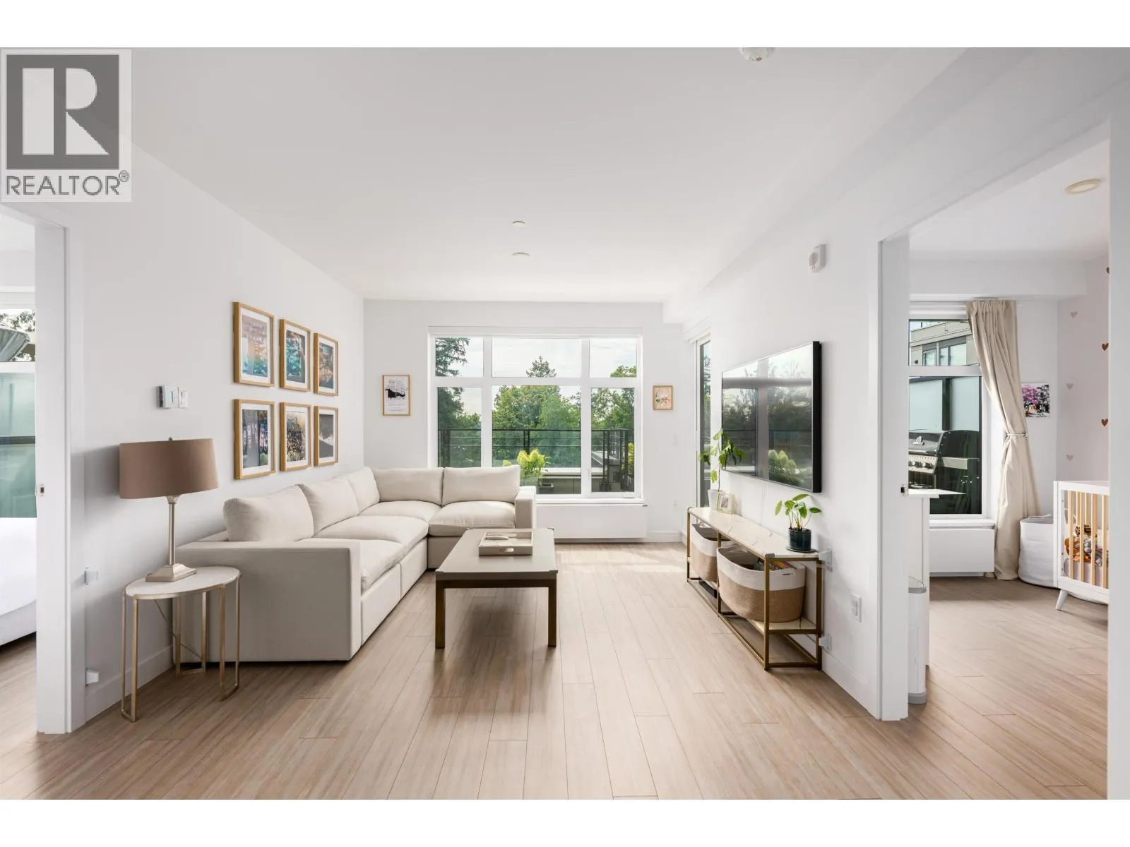 A rare find! This 2 bed + den, 2 bath home offers 939 sq.ft. of bright, open interior living plus an exceptional 312 sq.ft. south-facing patio-perfect for summer BBQs, dinner parties, or soaking up the sun. Overlooking the beautiful and lively Moodyville Park with its popular playground, this home is ideal for families and entertainers alike, offering a seamless blend of indoor-outdoor living rarely found in a condo. Located in The Green on Queensbury, a newer, high-quality building featuring upscale finishings and premium Fisher & Paykel appliances. Enjoy fantastic amenities including a gym, clubhouse, and guest suite for visiting friends and family. Just a short walk to the Shipyards, Seabus, and all the shops and restaurants in vibrant Lower Lonsdale. Easy access to Hwy 1. Includes 1 parking. Pets welcome. (id:27476)