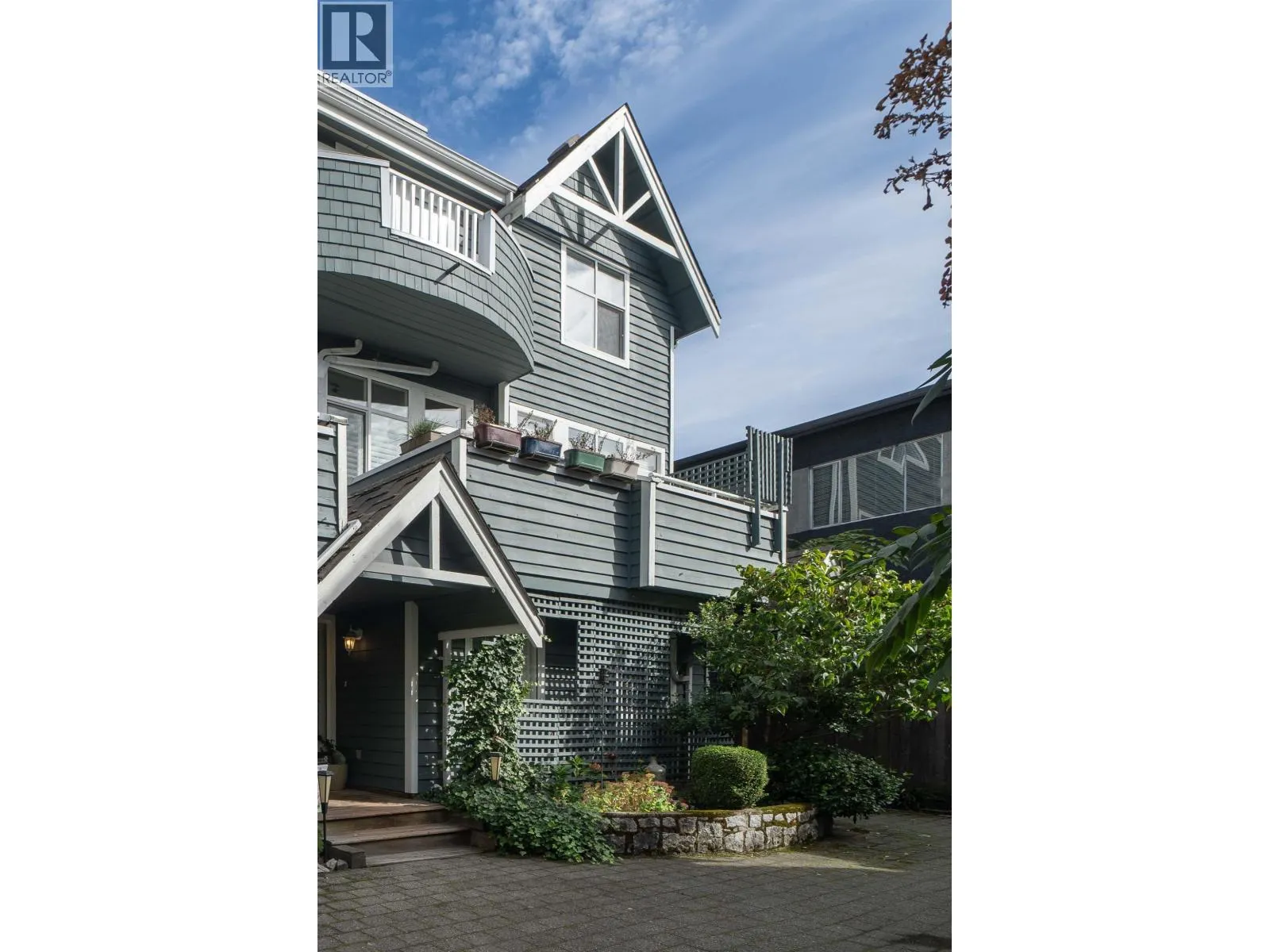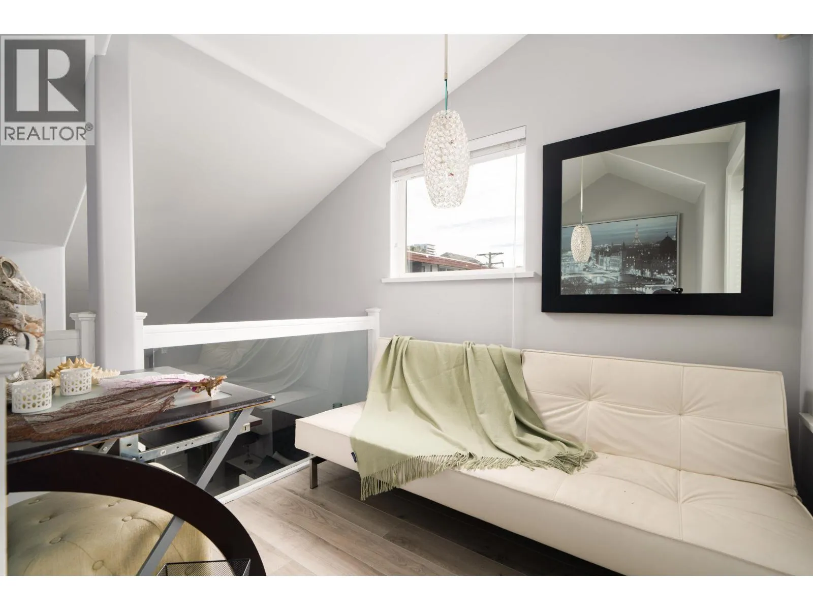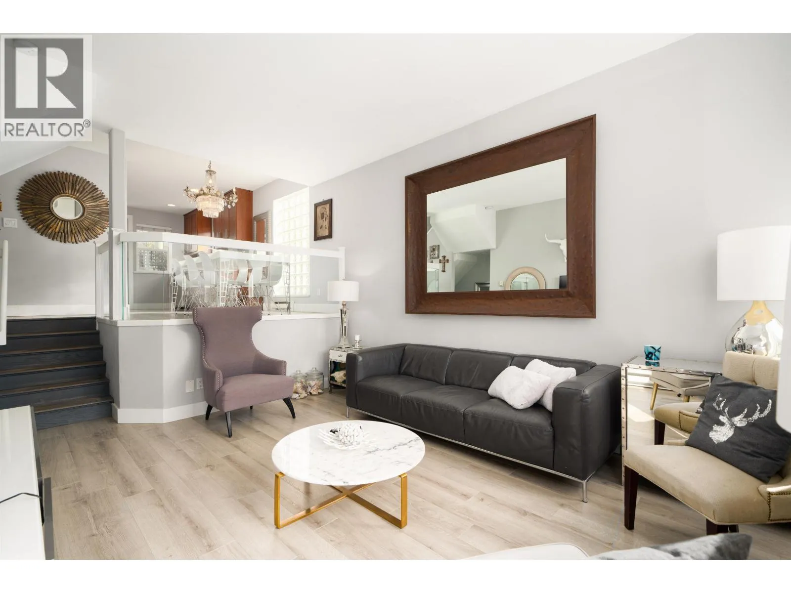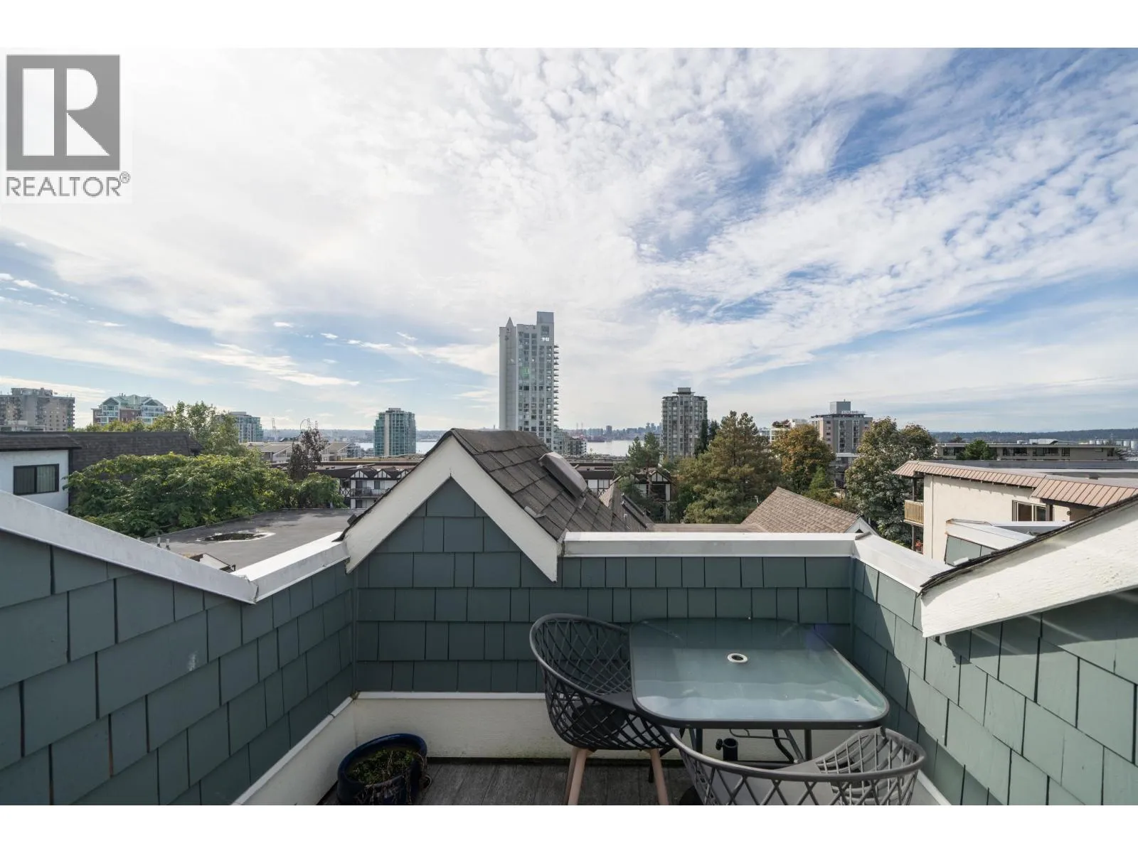 Located in the heart of Lower Lonsdale, this updated 3-bedroom, 2-bath townhome blends timeless elegance with modern comfort. Owned by the same person since 1999, it´s part of an exclusive six-home development that rarely comes to market. Thoughtfully and fully renovated, it features a spacious primary bedroom with vaulted ceilings and a walk-in closet, a cozy loft with its own balcony offering lovely city, water, and bridge views. Main floor features a sunken living room with a warm gas fireplace, and opens to another balcony. The beautifully updated kitchen showcases stone countertops, stainless steel appliances, and flows seamlessly to an outdoor deck-ideal for dining under the stars. Hardwood floors, stylish modern bathrooms, a private garage, and three balconies offer both comfort and lifestyle. Located on a quiet street, just steps away from shops, restaurants, the Seabus, Shipyards, and the vibrant night market, this rare home captures the best of Lower Lonsdale living. (id:27476)
