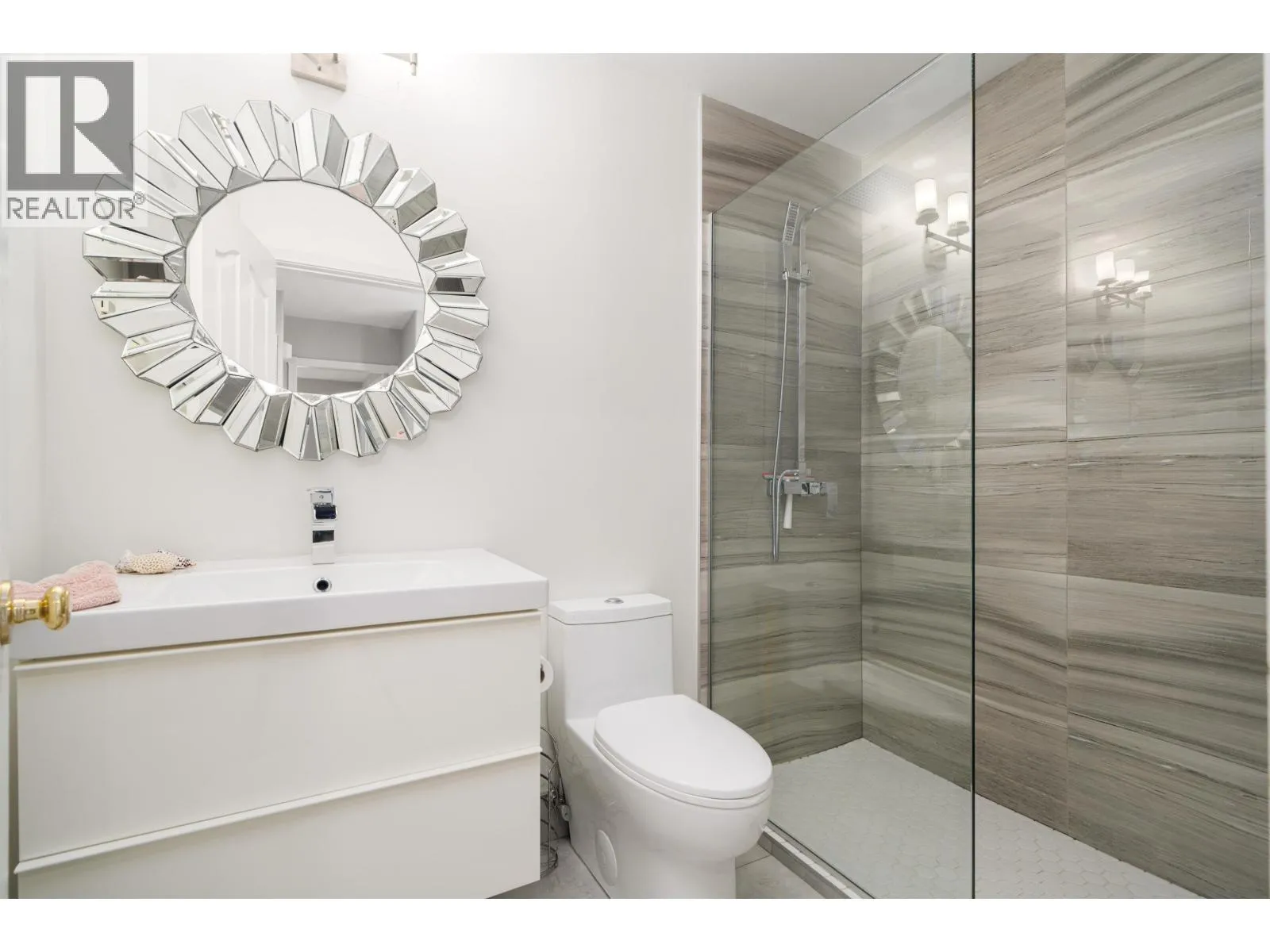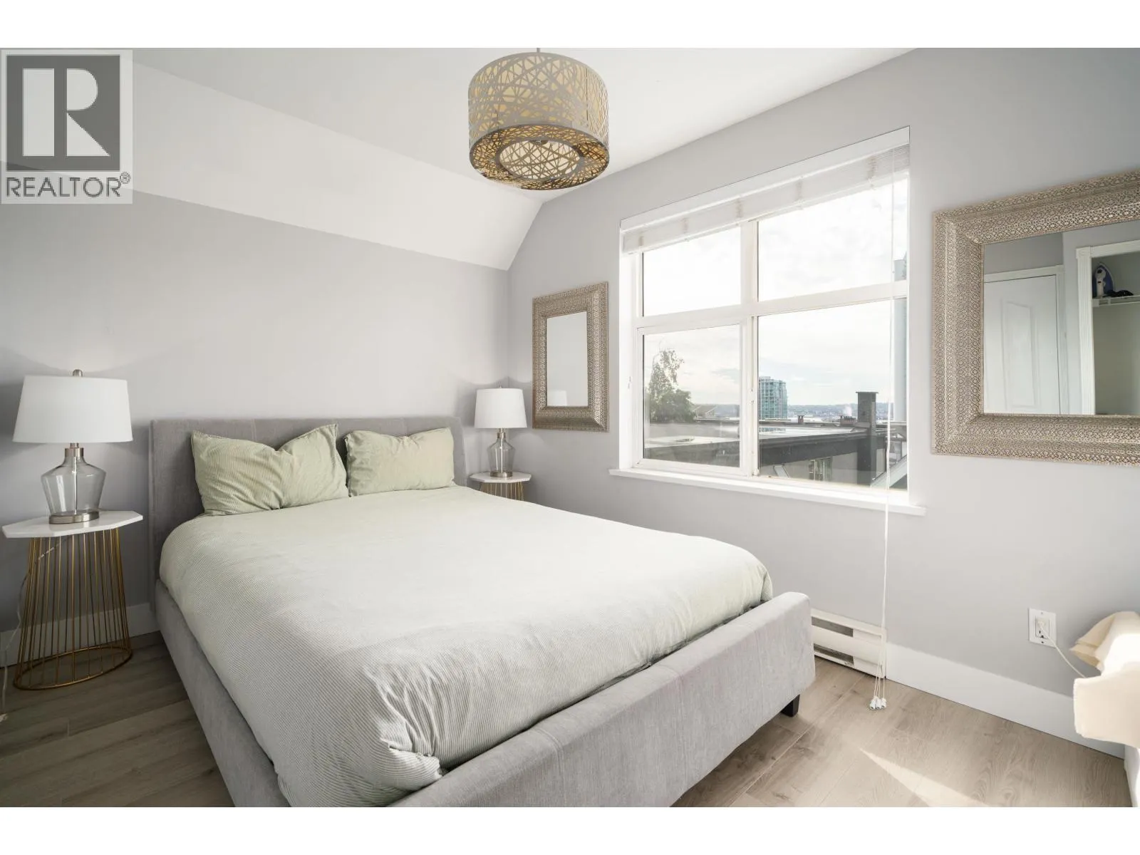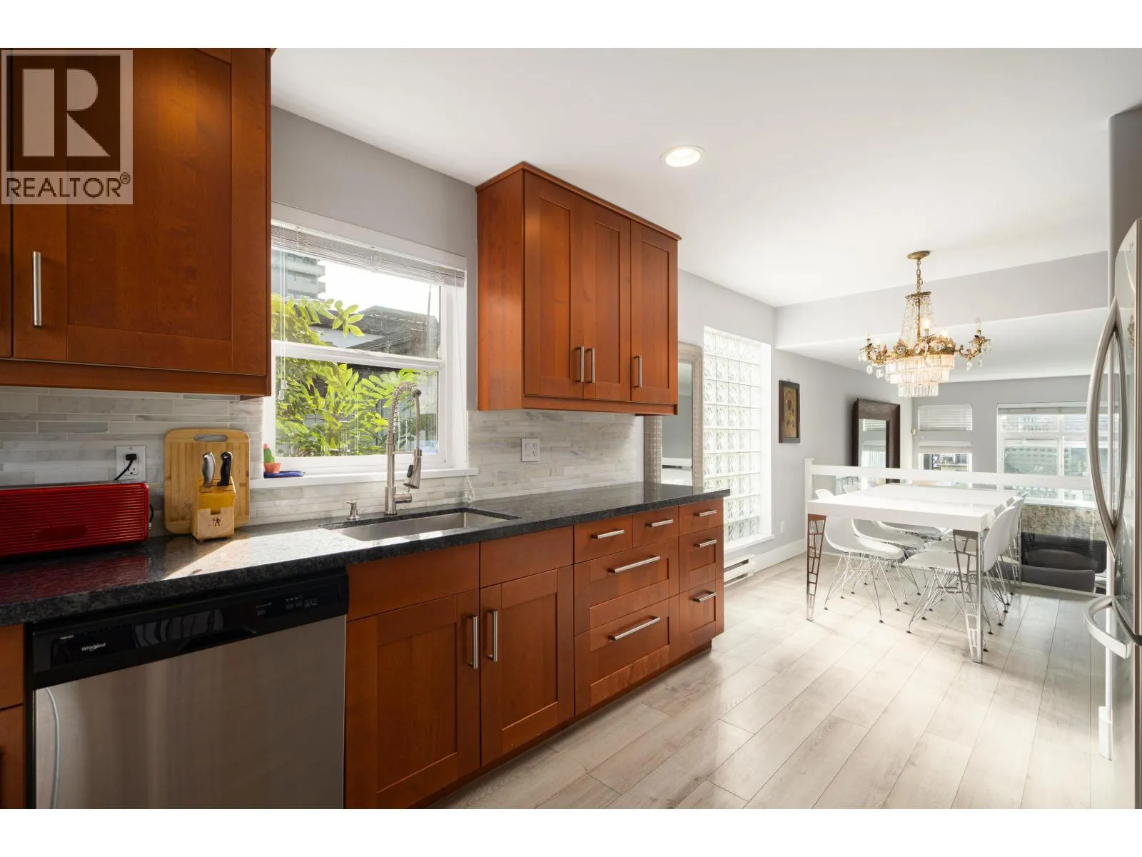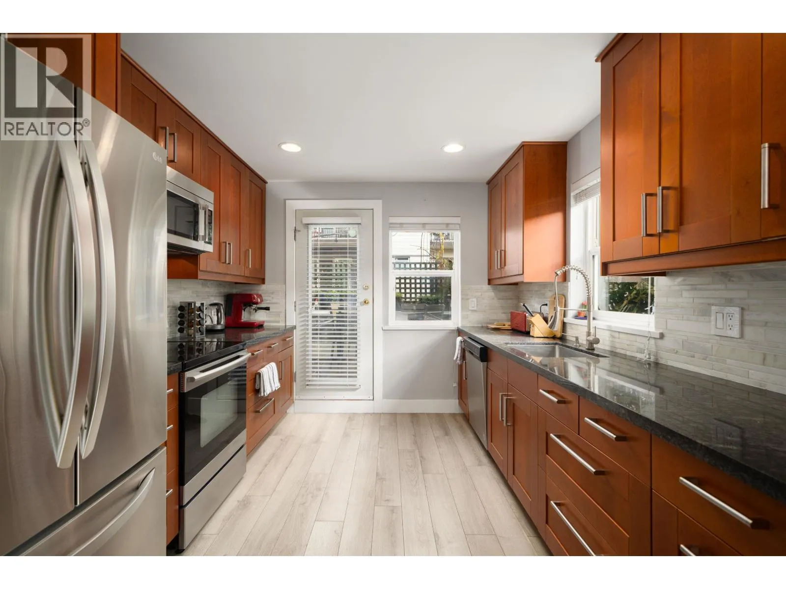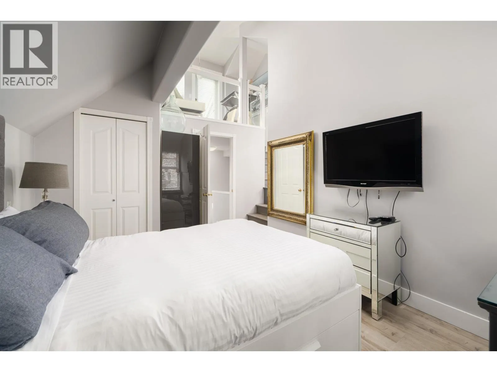 Located in the heart of Lower Lonsdale, this updated 3-bedroom, 2-bath townhome blends timeless elegance with modern comfort. Owned by the same person since 1999, it´s part of an exclusive six-home development that rarely comes to market. Thoughtfully and fully renovated, it features a spacious primary bedroom with vaulted ceilings and a walk-in closet, a cozy loft with its own balcony offering lovely city, water, and bridge views. Main floor features a sunken living room with a warm gas fireplace, and opens to another balcony. The beautifully updated kitchen showcases stone countertops, stainless steel appliances, and flows seamlessly to an outdoor deck-ideal for dining under the stars. Hardwood floors, stylish modern bathrooms, a private garage, and three balconies offer both comfort and lifestyle. Located on a quiet street, just steps away from shops, restaurants, the Seabus, Shipyards, and the vibrant night market, this rare home captures the best of Lower Lonsdale living. (id:27476)