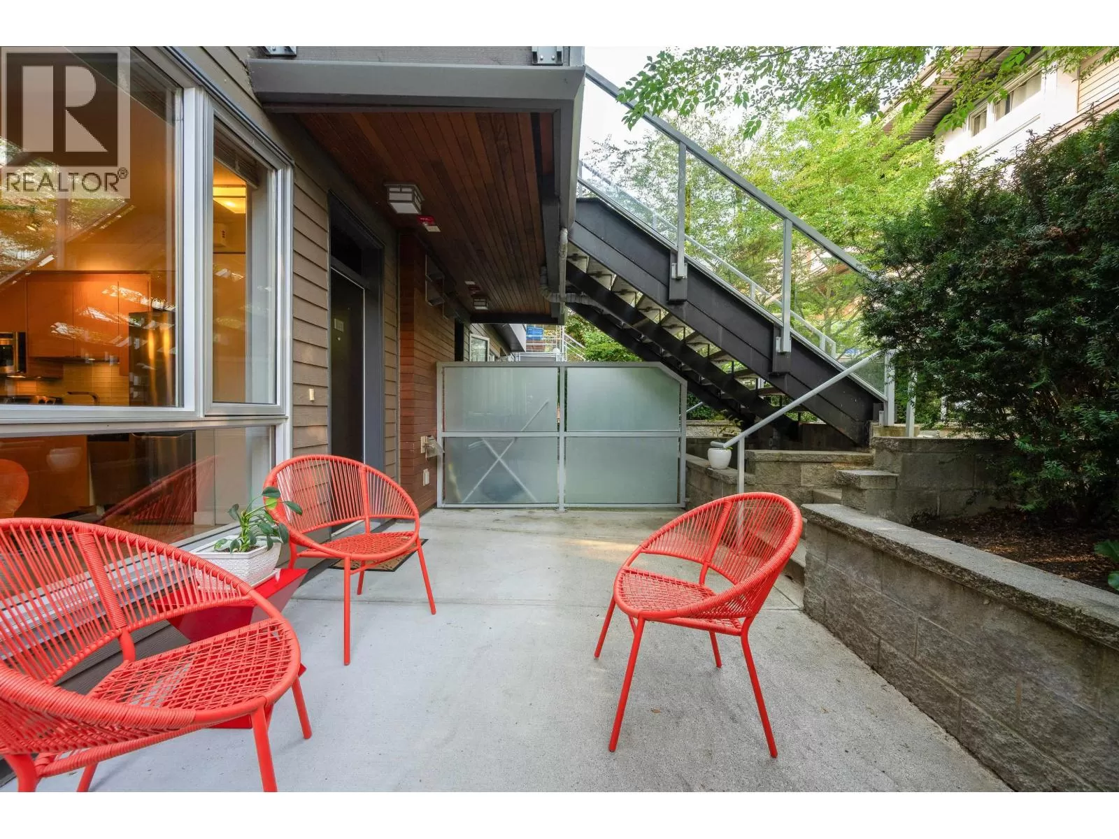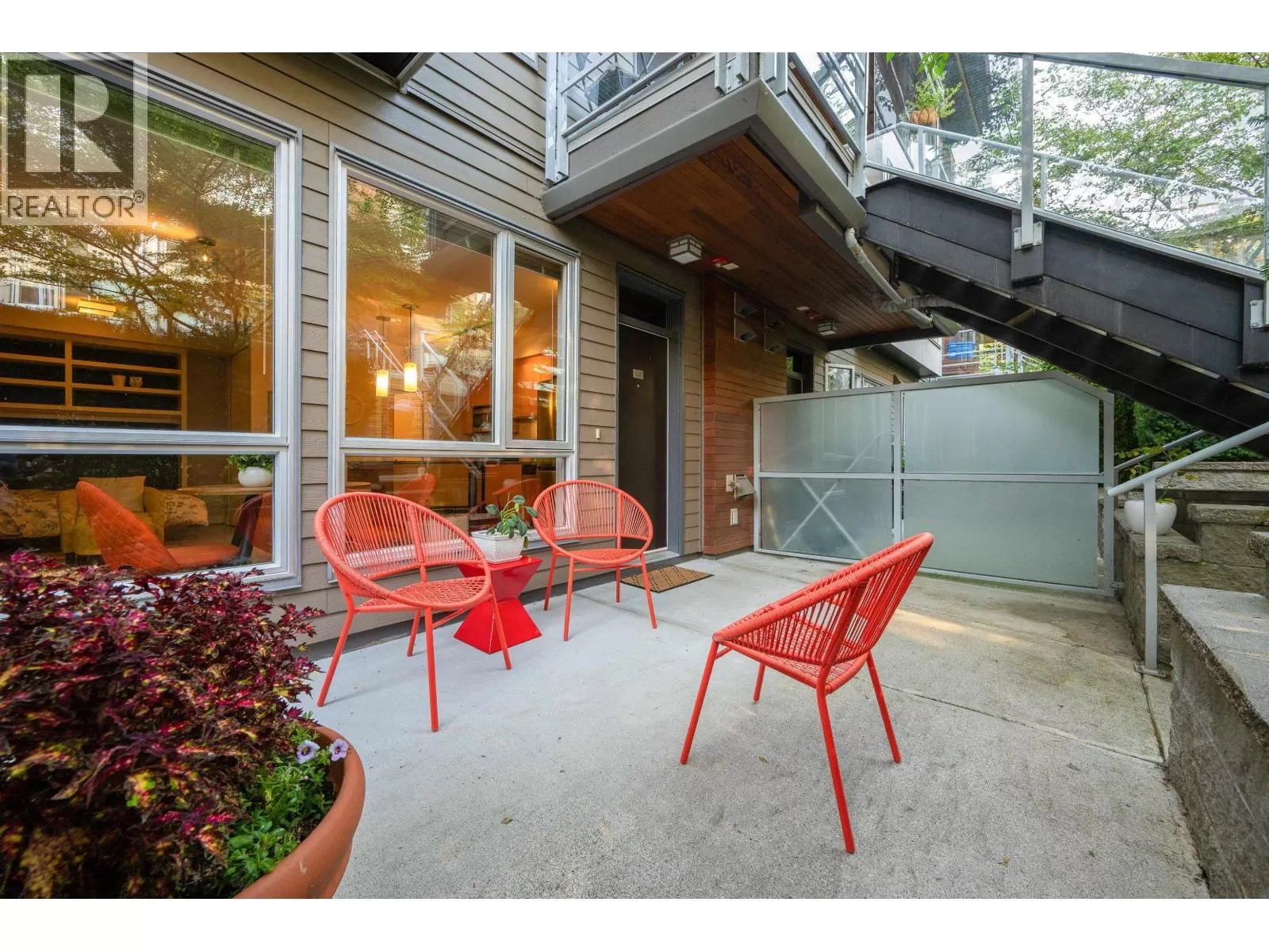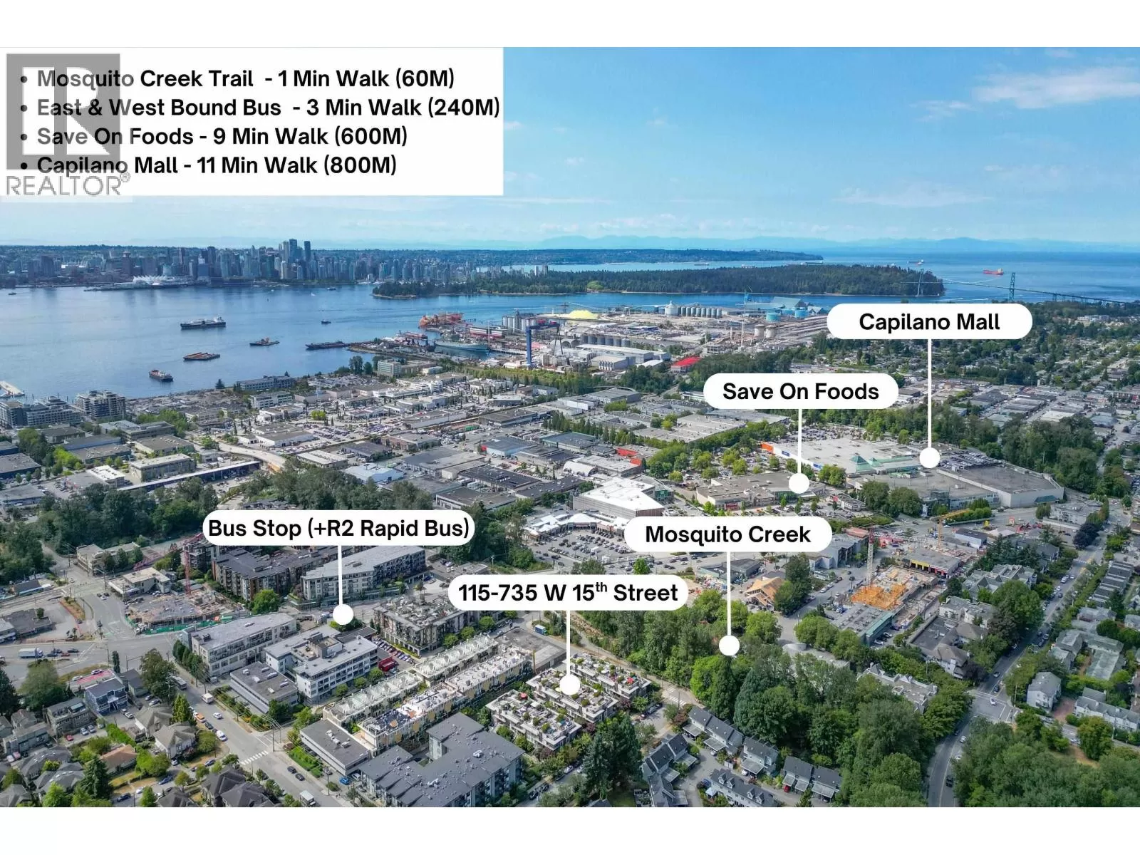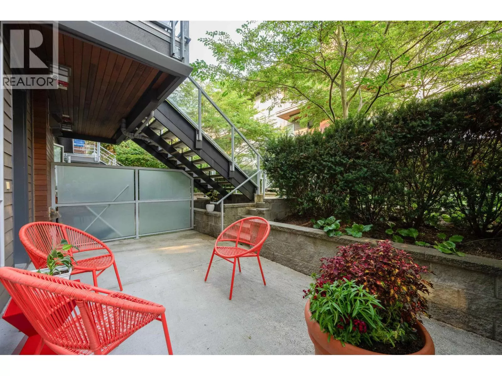 Enjoy urban living with this townhome style studio steps to everything you need by foot! Situated in the 2011 built Seven35 complex, this home provides a unique offering - a modern, well-designed studio enjoying 457 square ft of interior space, that almost doubles in size with a 180 square ft walk-out patio - perfect for hosting, bbqs, as well as ideal for dog owners & nature lovers. The home features an open-concept layout with gourmet kitchen, cozy living space with electric FP, 4 pc bath with soaker tub & bed/office with a murphy bed & flip down desk set up. The home also enjoys in-suite laundry, 1 parking with bike rack, storage locker, low maint. fee, allows 2 dogs or cats (or 1 of each), & includes bldg amenities of a gym, bike maint rm, garden, & playground. With an 88 walk-score, this home has everything you need by foot - east & west bound transit, Save-on Foods & Capilano Mall, & Mosquito Creek trails right outside - don´t miss it! (id:27476)